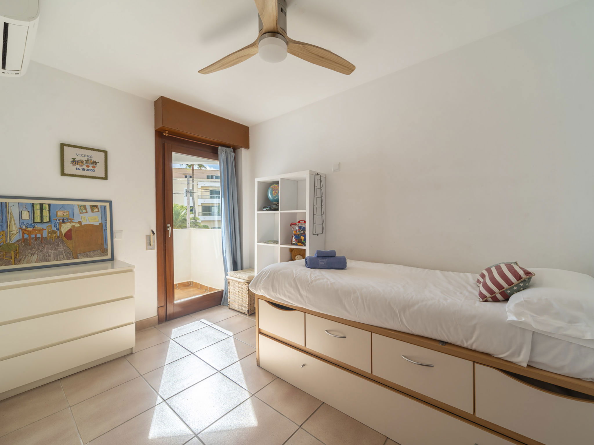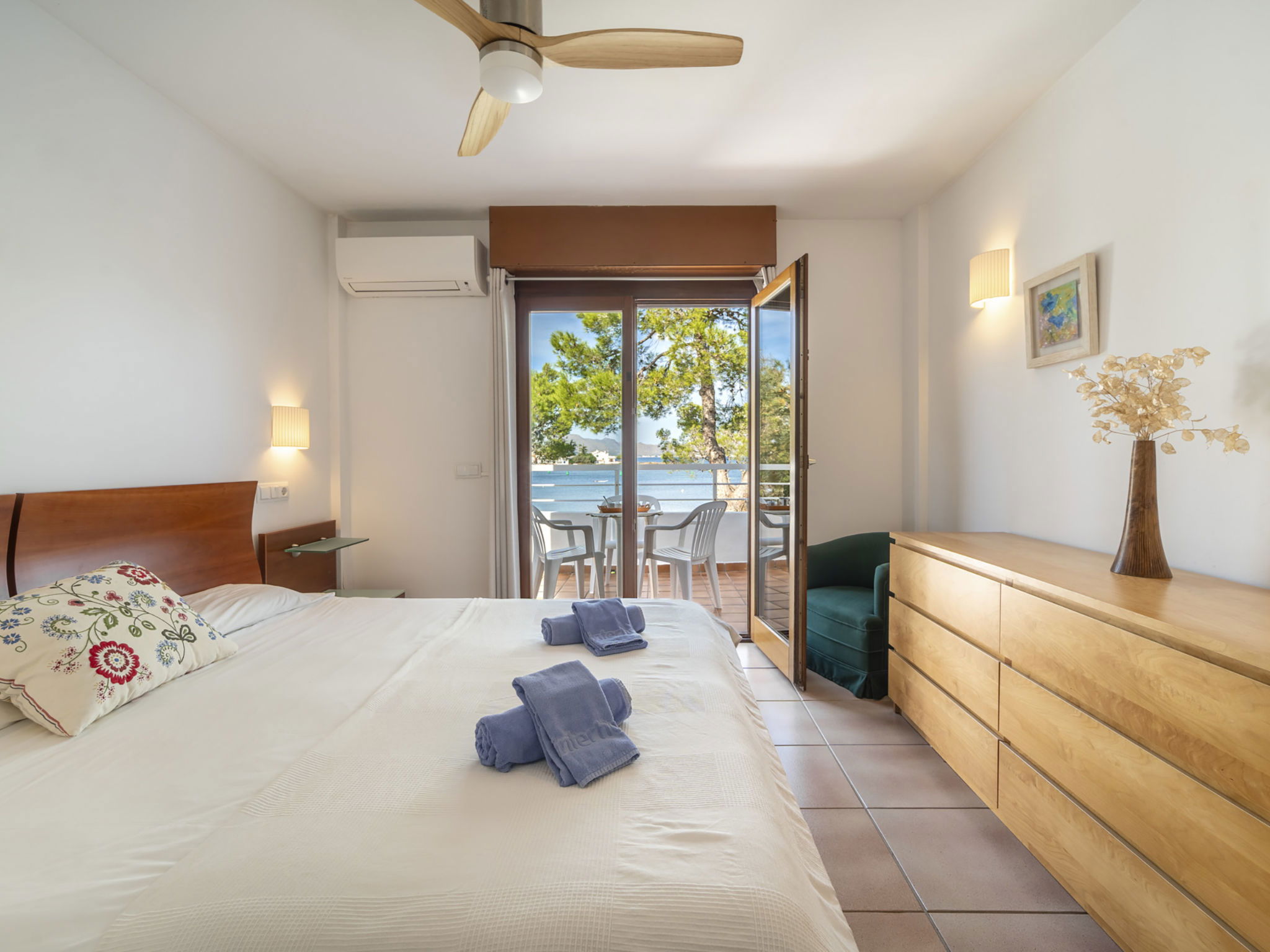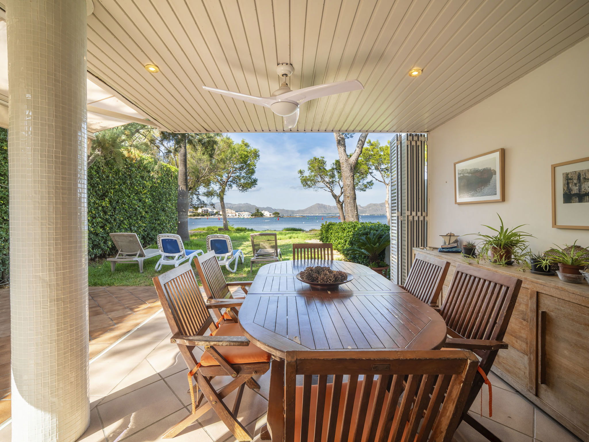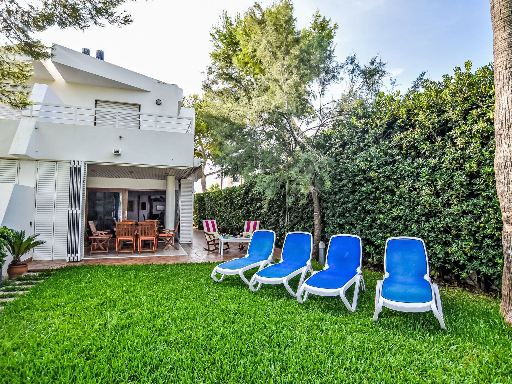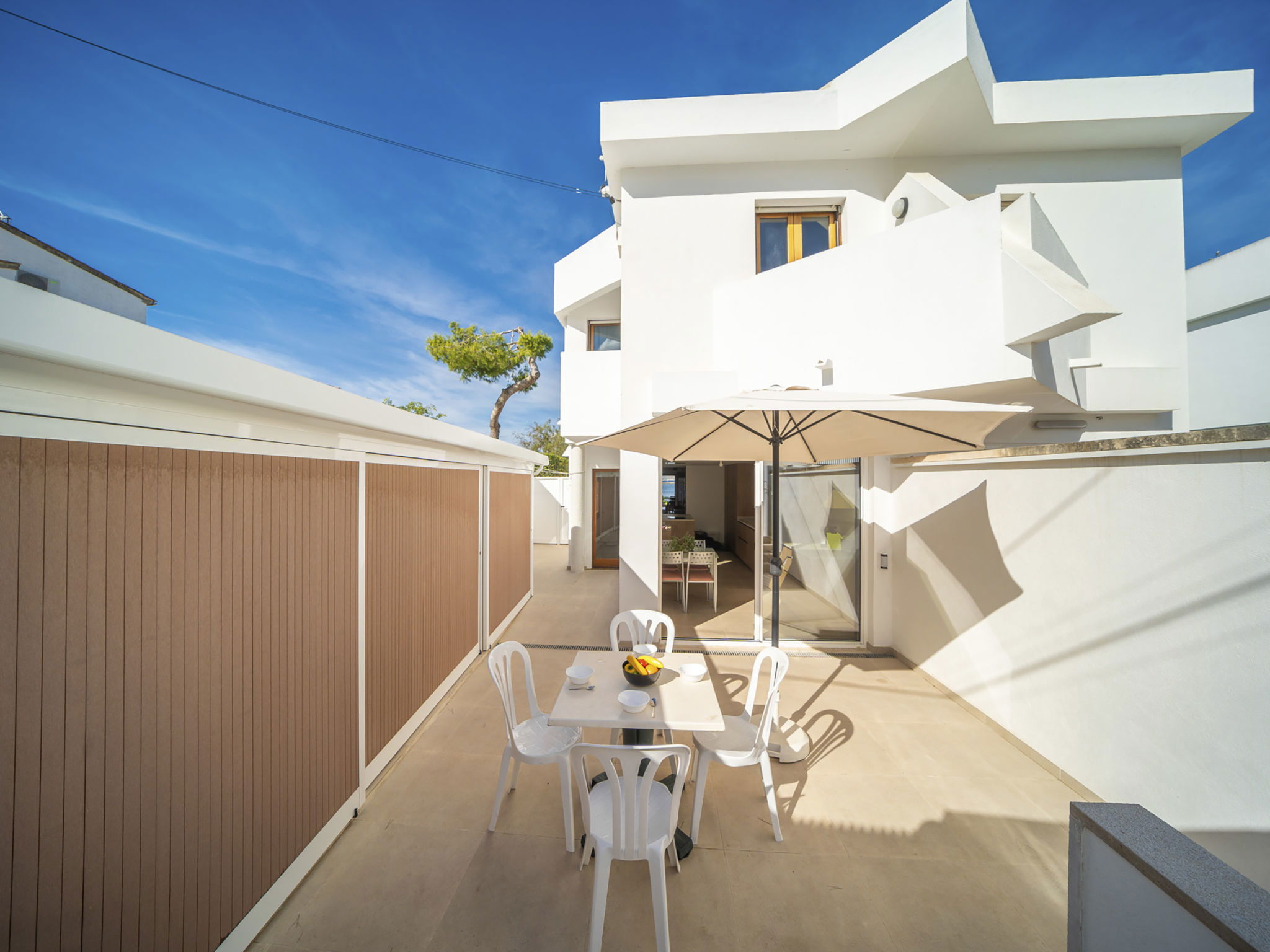 Barcarés 1 km von Alcudia: Sehr schönes, gemütliches Doppelhaus "Es clot", auf 2 Stockwerken, einseitig angebaut. Im Ortsteil Es Barcarés, sonnige Lage im Villenviertel, 2 km vom Waldrand, 5 m vom Meer, 100 m vom Strand, direkter Zugang zum Strand. Zur Alleinbenutzung: Garten (nicht eingezäunt) mit Rasen. Aussendusche, Sitzplatz, Pergola, Gartenmöbel, Grill. Im Hause: Wireless LAN, Einstellraum für Fahrräder, Klimaanlage, Waschmaschine. Parkplatz beim Haus auf dem Grundstück. Einkaufsgeschäft 1.5 km, Lebensmittelgeschäft 1.5 km, Supermarkt 300 m, Restaurant 50 m, Bar, Bäckerei 1.5 km, Fahrradverleih 1 km, Biergarten 50 m, Zentrum zu Fuss in 15 Minuten erreichbar, Bushaltestelle 1 km, Sandstrand "Es Morer Vermell" 300 m, Felsstrand 5 m. Sporthafen 200 m, Jacht-Hafen 3 km, Golfplatz (18 Loch) 5.3 km, Tennis 3 km, Reitstall 3.5 km. Bitte beachten: geeignet für Familien, geeignet für Senioren. Objekt geeignet für 8 Erwachsene Jugendgruppen nur auf Anfrage. Be- und Entladen am Ferienhaus möglich. Flugplatz 62 km vom Haus.