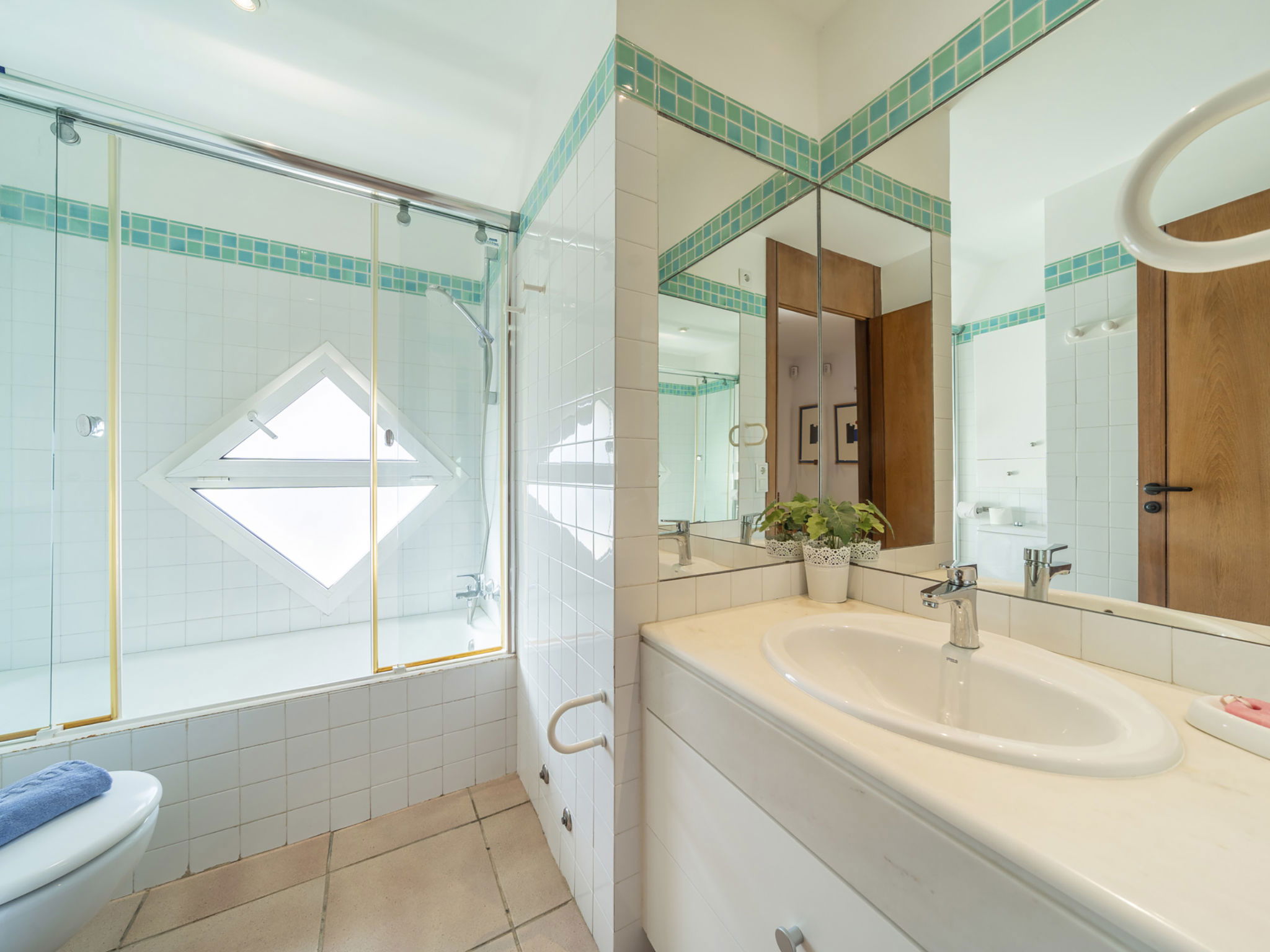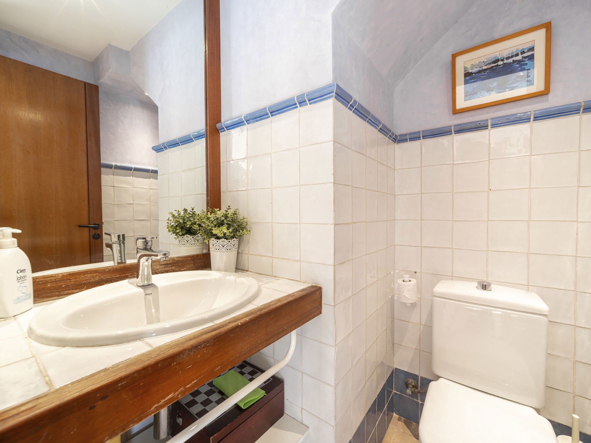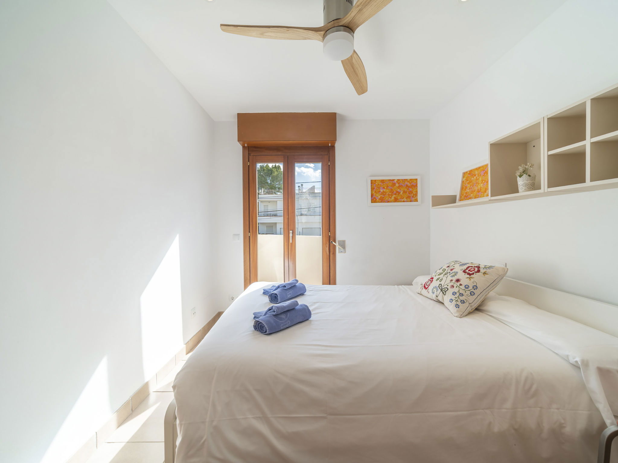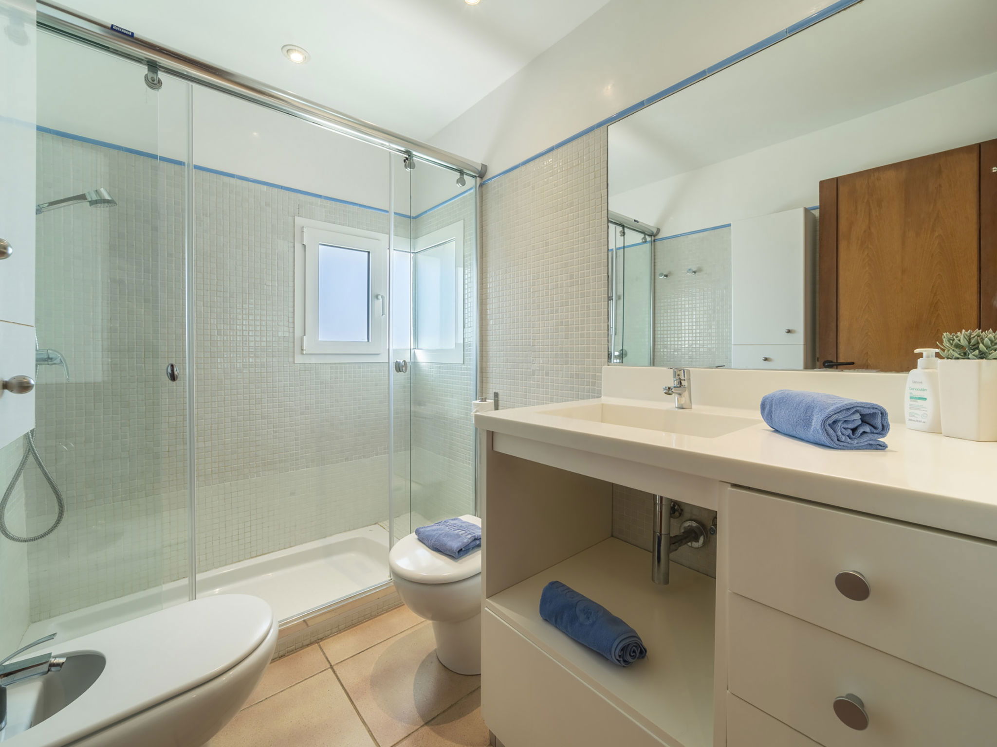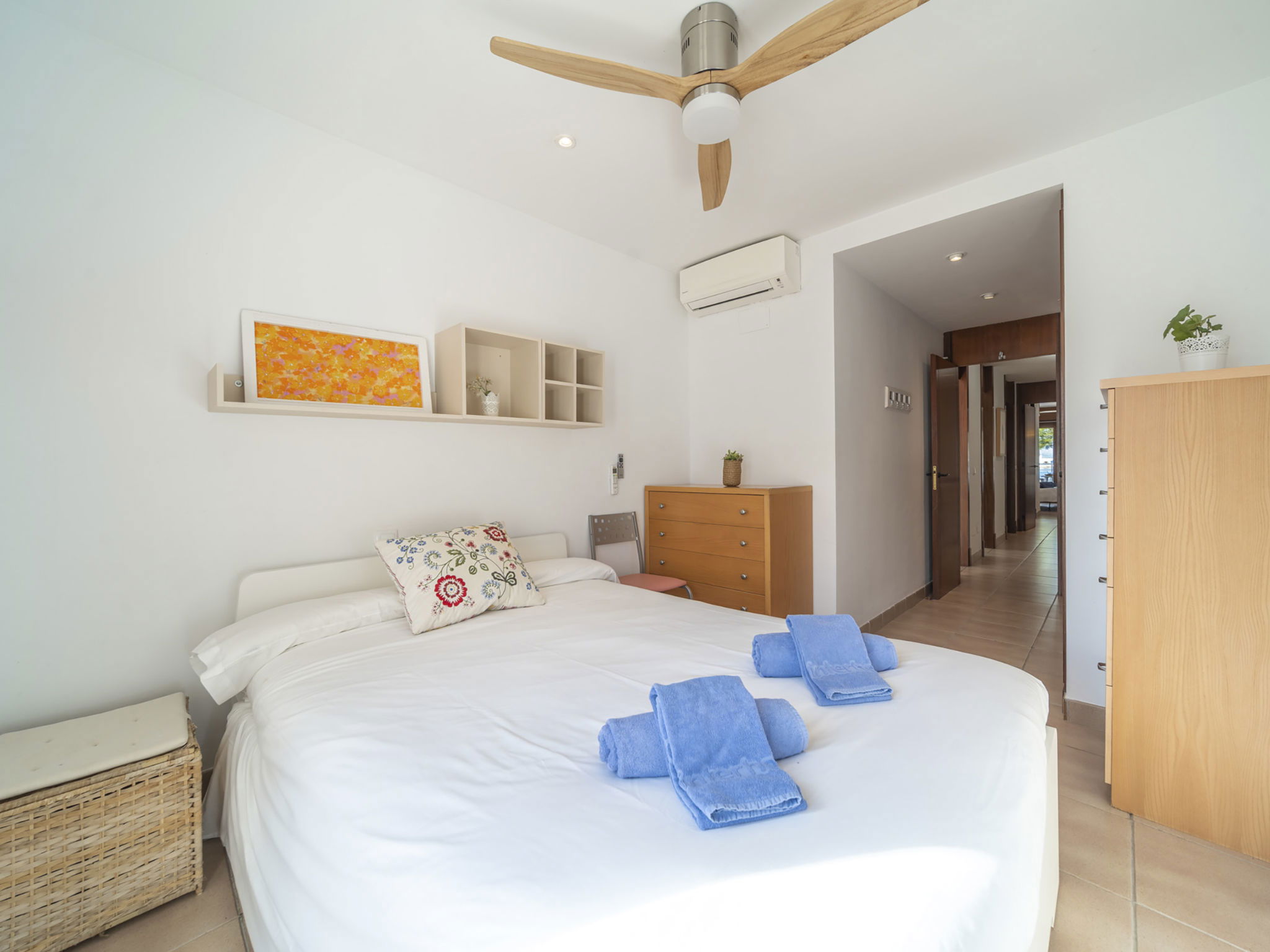 "Es Clot", 5-Zimmer-Doppelhaushälfte 125 m2 auf 2 Stockwerken. Objekt geeignet für 8 Erwachsene. Geräumig und hell, sehr komfortabel und geschmackvoll eingerichtet: grosses Wohn-/Esszimmer mit Schiebetür, Panoramafenster mit Esstisch, Sat-TV, Klimaanlage und Warmluftheizung. Ausgang zum Gartensitzplatz. Küche (Backofen, Geschirrspüler, 3 Glaskeramikplatten, Toaster, Wasserkocher, Mikrowelle, Tiefkühler, elektrische Kaffeemaschine) mit Esstisch. Bad/WC. Obergeschoss: 1 grosses Doppelzimmer mit Schiebetür, Panoramafenster mit 1 franz. Bett, Bad/Dusche/WC, Klimaanlage, Ventilator und Warmluftheizung. Ausgang zum Balkon. 1 Doppelzimmer mit Panoramafenster mit 1 Ausziehbett (2 Pers. 2 x 90 cm, Länge 190 cm), Klimaanlage, Ventilator und Warmluftheizung. 2 Zimmer mit Panoramafenster, jedes Zimmer mit 1 Ausziehbett (2 Pers. 2 x 90 cm), Klimaanlage, Ventilator und Warmluftheizung. Bad/WC mit Eckbadewanne. Gartensitzplatz, Rasen. Terrassenmöbel, Gartengrill, Liegestühle, Loggia. Herrliche Sicht auf das Meer und die Berge. Zur Verfügung: Waschmaschine, Bügeleisen, Kinderhochstuhl, Babybett, Haartrockner. Internet (WLAN, gratis). Parkplatz (eingezäunt), Garage. Geeignet für Familien. ETV/8238