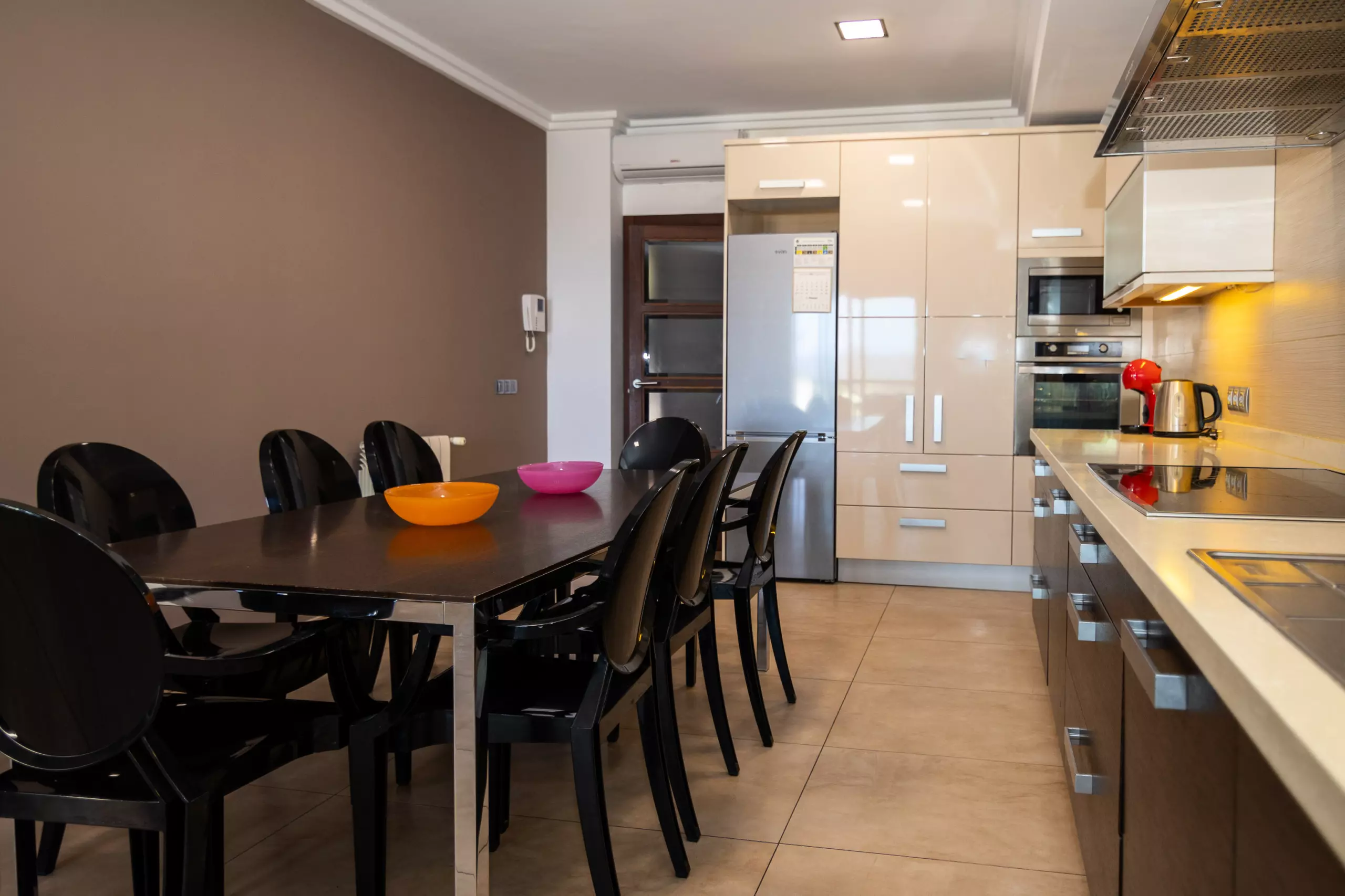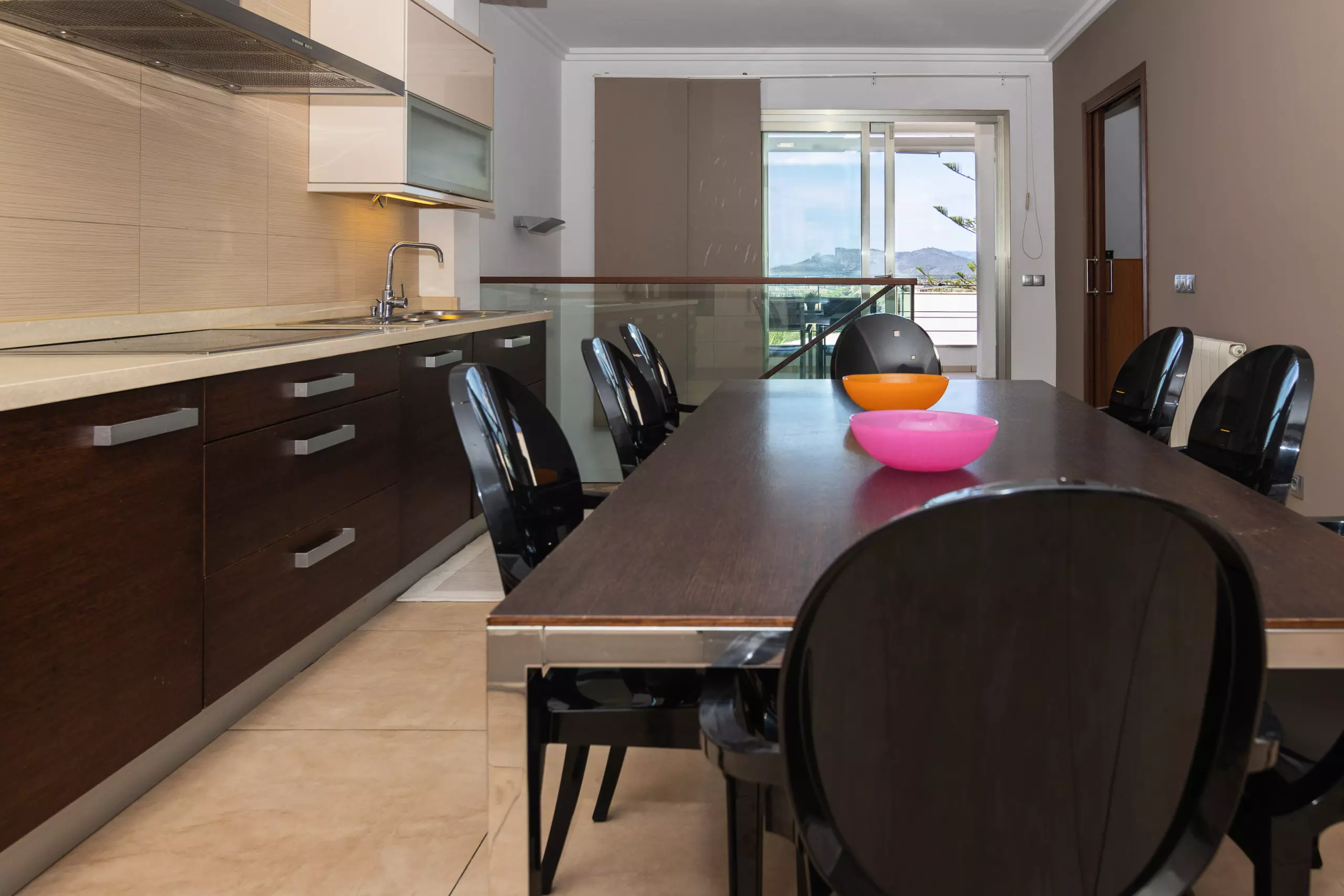 Im ersten Stock finden Sie ein einladendes Esszimmer, eine hochwertige, komplett ausgestattete Küche, in der Sie sich wie zu Hause fühlen, ein Badezimmer mit Dusche, ein Schlafzimmer mit Doppelbett und eine große Terrasse, auf der Sie warme Abende genießen können.