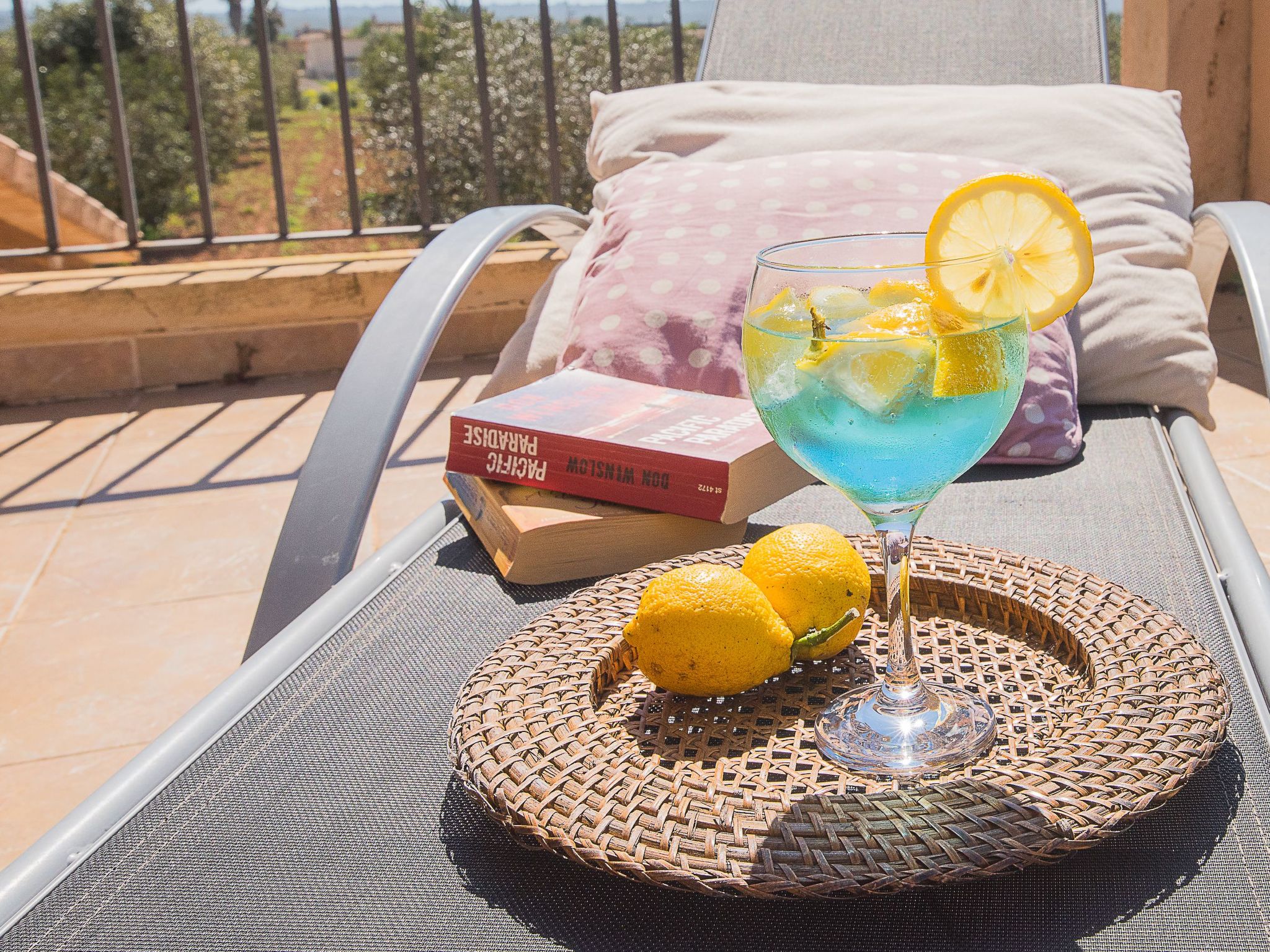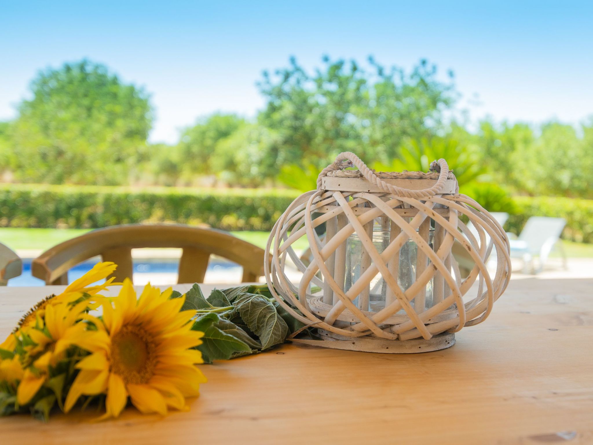 Draußen umarmt Sie die Natur auf einem 14.100 m2 großen, vollständig umzäunten Grundstück, wo Privatsphäre und Entspannung an erster Stelle stehen. Die überdachten und offenen Terrassen sowie der 4x8 m große Swimmingpool bieten den perfekten Rahmen für sonnige Tage. Sechs Liegestühle laden zum Entspannen im Schatten eines typisch mallorquinischen Hains mit Johannisbrot- und Feigenbäumen ein, während der Rasen ein idealer Ort für Kinder zum Spielen ist.