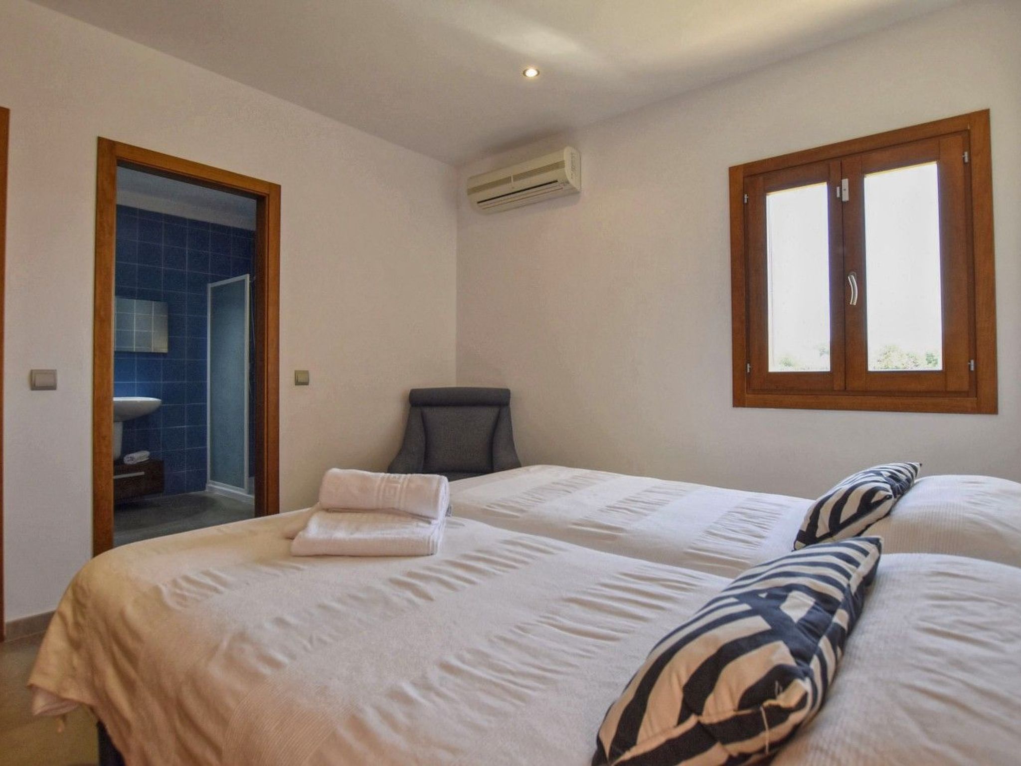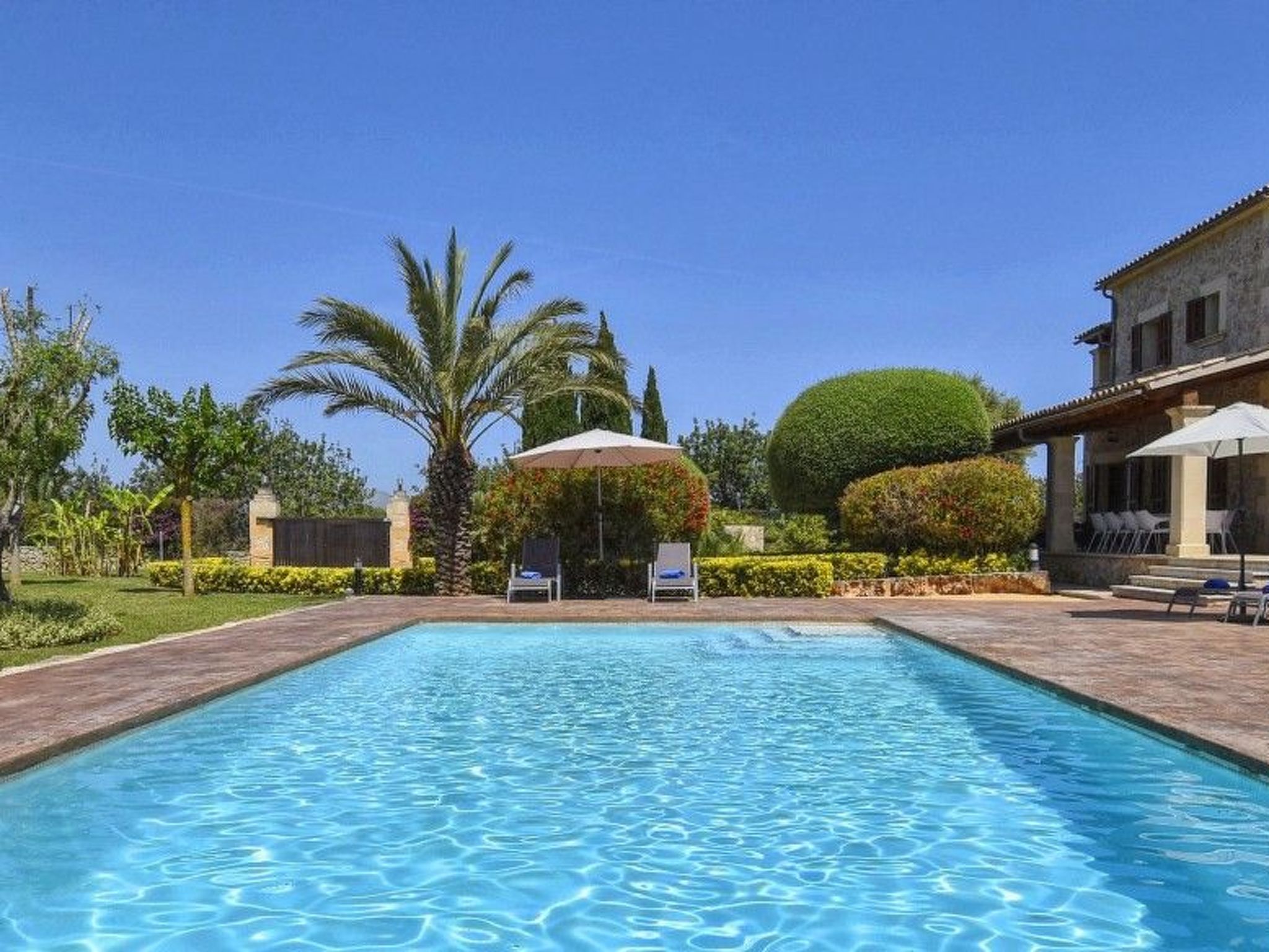 Modernes Landhaus aus Stein mit einem wunderschönen privaten Swimmingpool, ganz in der Nähe der Stadt Alcudia im Norden der Insel, mit herrlichem Panoramablick auf die Landschaft und die Berge und nur wenige Kilometer von den schönen Stränden entfernt. Erbaut auf 2 Etagen, mit exzellenter Ausstattung und gepflegter Inneneinrichtung. Das Haus ist sowohl im Winter als auch im Sommer voll klimatisiert und auch für kleine Kinder geeignet. Es hat 4 Schlafzimmer (3 Doppel- und 1 Zweibettzimmer), 4 komplette Badezimmer (alle en suite und eines mit Hydromassage-Badewanne). Die Küche ist voll ausgestattet und unabhängig vom Wohn-Esszimmer mit Zugang zur Veranda und zum Schwimmbad. Das Haus verfügt über mehrere Terrassen und eine möblierte Veranda sowie eine wunderschöne Sonnenterrasse mit Holzterrasse rund um den Swimmingpool und Terrassenmöbeln und Sonnenliegen. In einer ruhigen Gegend gelegen, aber in der Nähe des Dorfes und aller Annehmlichkeiten, ist es die ideale Immobilie, um einen tollen Urlaub mit absoluter Privatsphäre und allen Annehmlichkeiten zu genießen.