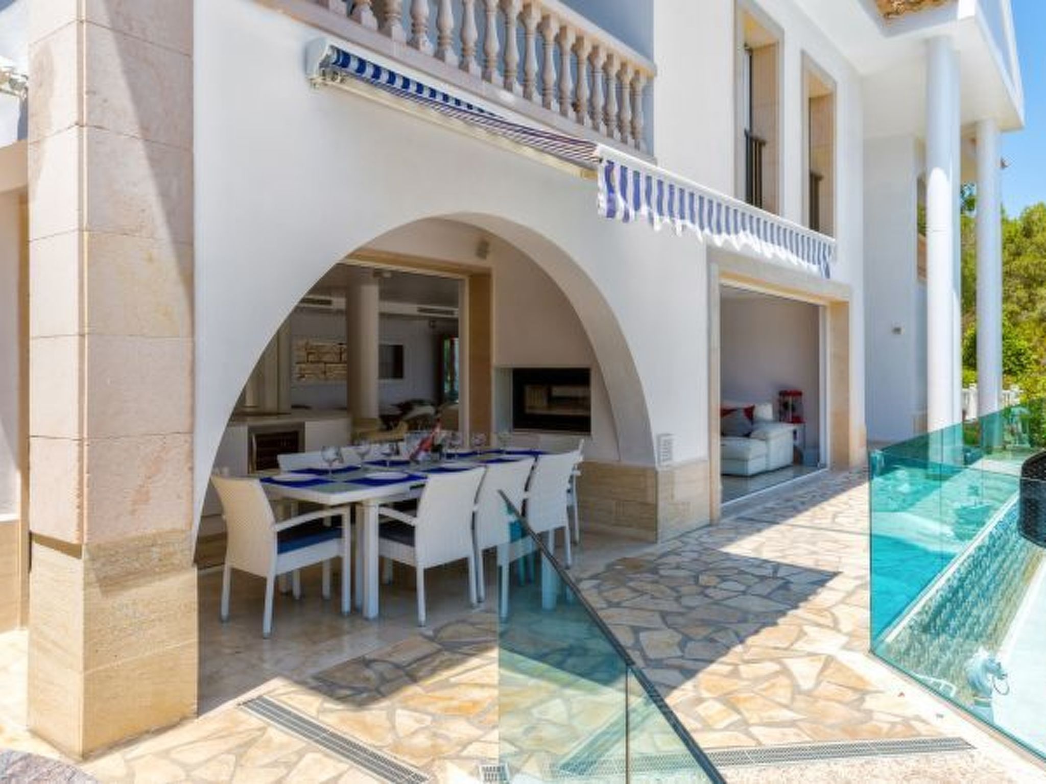 Lassen Sie sich von der großzügigen Innenausstattung der Villa verwöhnen, die für höchsten Komfort mit einer Klimaanlage in allen Räumen ausgestattet ist. Mit fünf luxuriösen Schlafzimmern, die mit luxuriöser Bettwäsche ausgestattet sind, und 3,5 makellosen Badezimmern bietet die Villa alles, was Sie zum Entspannen brauchen. Eine hochmoderne italienische Küche und ein offener Wohnbereich gehen nahtlos in einen Essbereich im Freien über, der zu Zusammenkünften unter freiem Himmel einlädt. Das Internet-Streaming-TV auf allen Fernsehern, ergänzt durch ein mehrsprachiges Alexa für Musik, sorgt für nahtlose Unterhaltung und Konnektivität in Hülle und Fülle. Darüber hinaus warten eine thematische Musiksammlung und eine Reihe von Musikinstrumenten darauf, von Ihnen entdeckt und genossen zu werden.