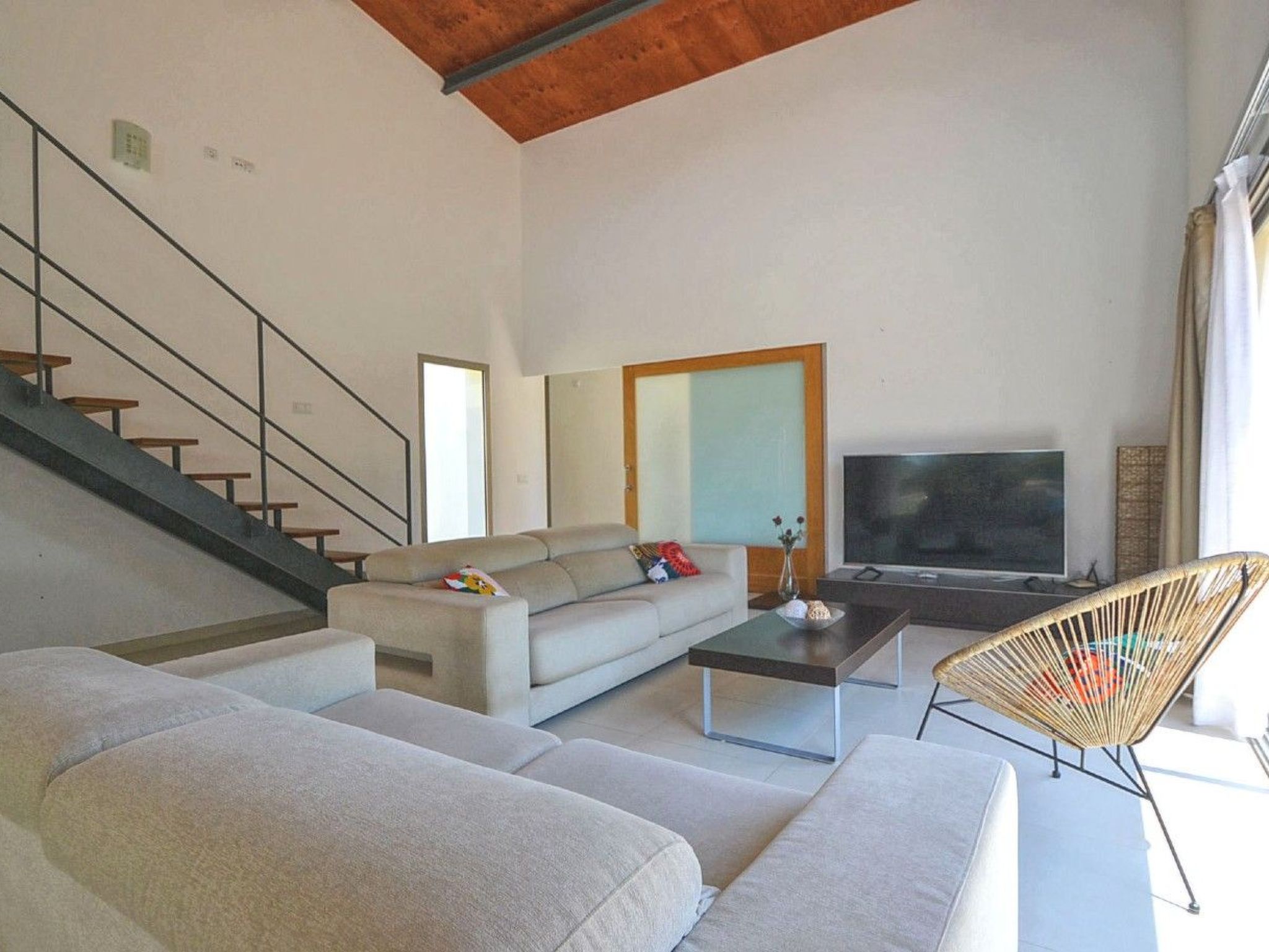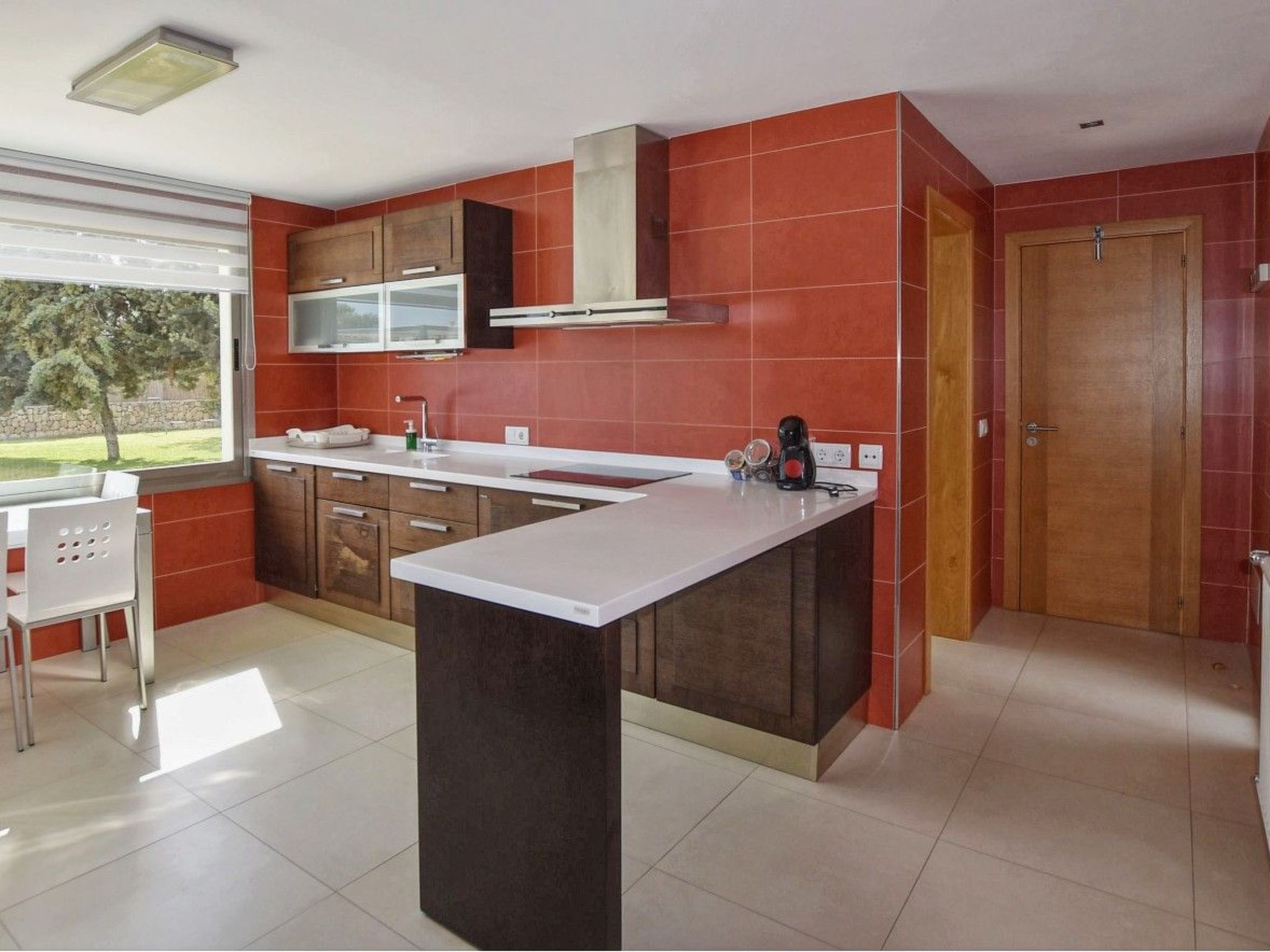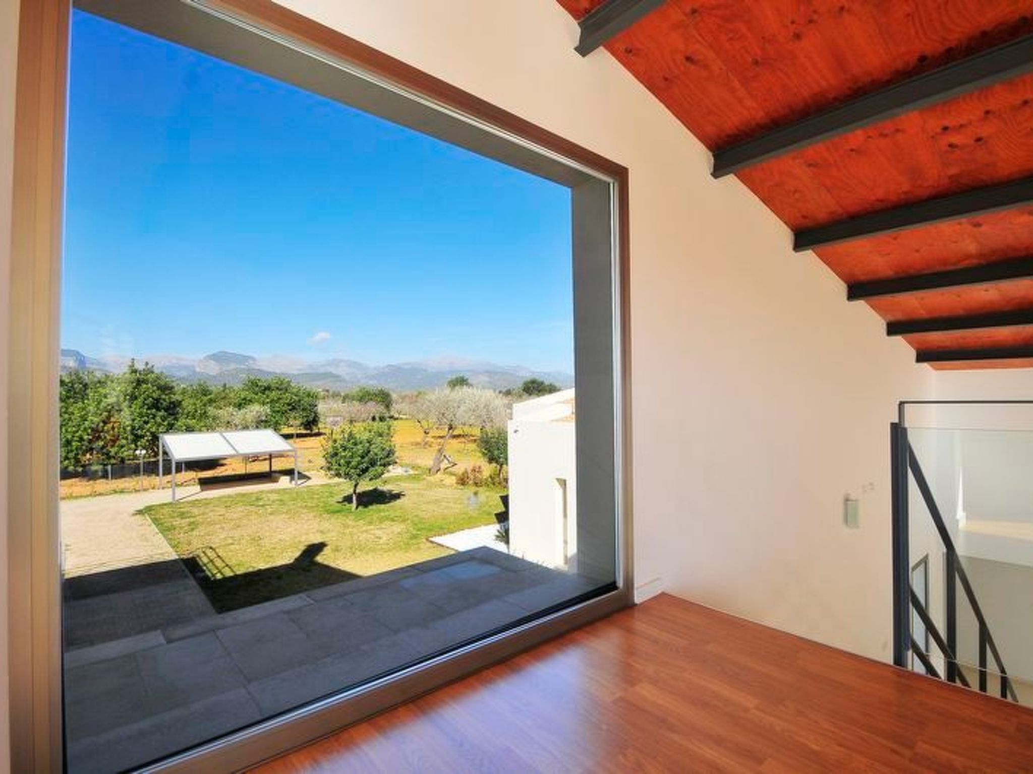 Von der Finca aus hat man einen traumhaften Ausblick auf das Tramuntana-Gebirge. Das Haus bietet auf etwa 325 m² ausreichend Platz für 10 Gäste. Komfortabel und modern eingerichtet gibt es insgesamt 5 Schlafzimmer ( 3x Doppelbet, 2x Einzelbetten ) alle mit Klimaanlage und 3 Badezimmer davon zwei EnSuite und ein Außen-WC. Das große offene lichtdurchflutete verglaste Wohn-Esszimmer mit Sat-TV und Internet WLAN hat einen schönen Blick auf die Poolterrasse. Hier liegt die hochmoderne Wohnküche mit 4 - Platten Herd, Mikrowelle, Backofen, Grill, Geschirrspüler gleich nebenan.