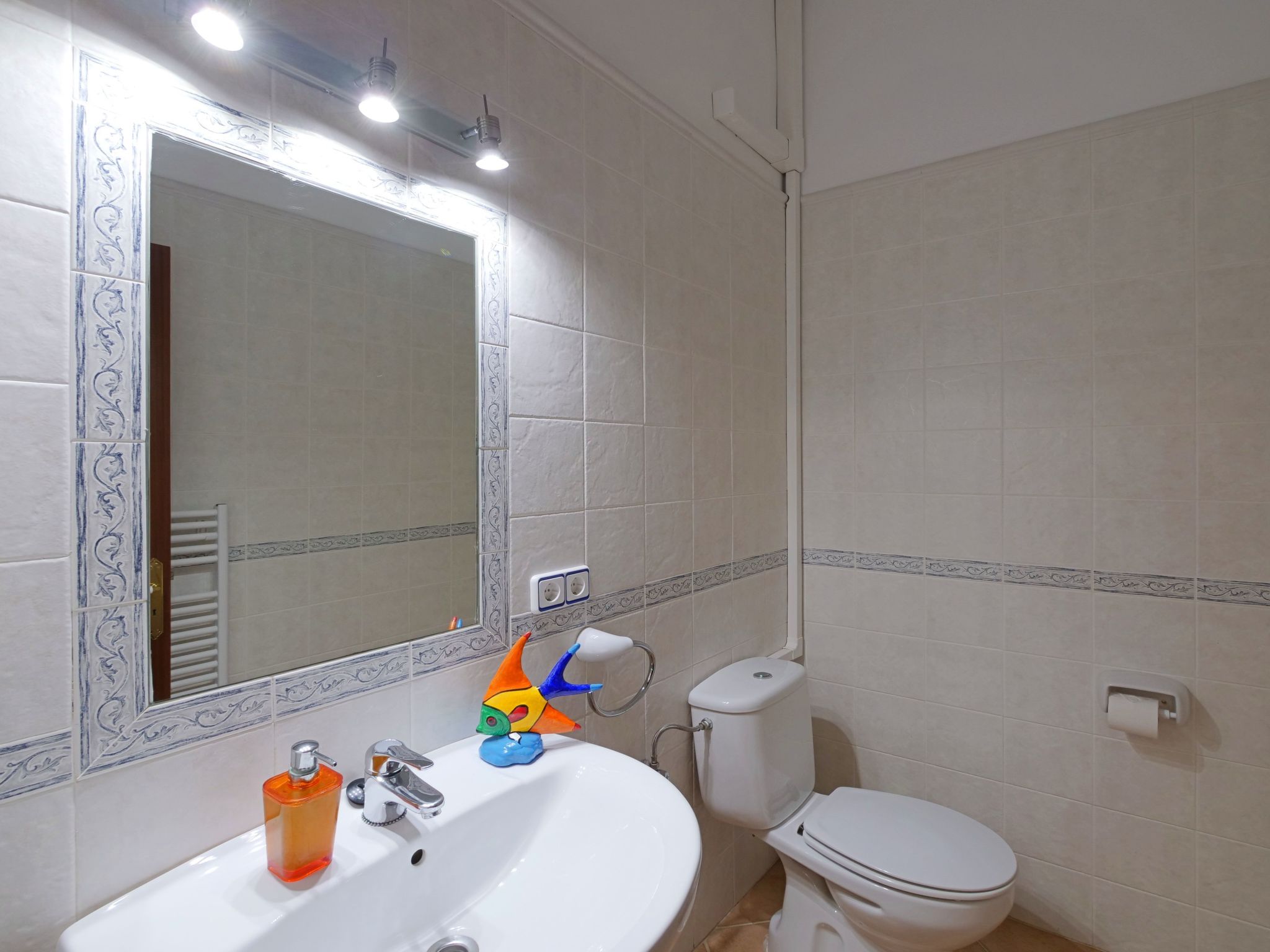 Die geräumige, einstöckige Finca wurde renoviert und auf einen modernen Standard gebracht. Das gemütliche Wohn-/Esszimmer hat Sat-TV/DVD und verfügt über einen Zugang zur Terasse - ein ruhiges Plätzchen, das zum Entspannen einlädt. Die rustikale Küche ist hervorragend ausgestattet. Das Hauptschlafzimmer mit grossem Doppelbett verfügt über einen eigenen Ankleidebereich und en-suite Badezimmer. Die anderen beiden Schlafzimmer mit je zwei Einzelbetten und eines davon mit Ankleideraum haben ebenfalls en-suite Badezimmer. Die Schlafzimmer sind sehr individuell und liebevoll eingerichtet. In einem separaten Serviceraum befindet sich die Waschmaschine und es gibt ausserdem noch ein eigenes Gäste WC.Klimaanlage mit festem und begrenzten Zeitplan.