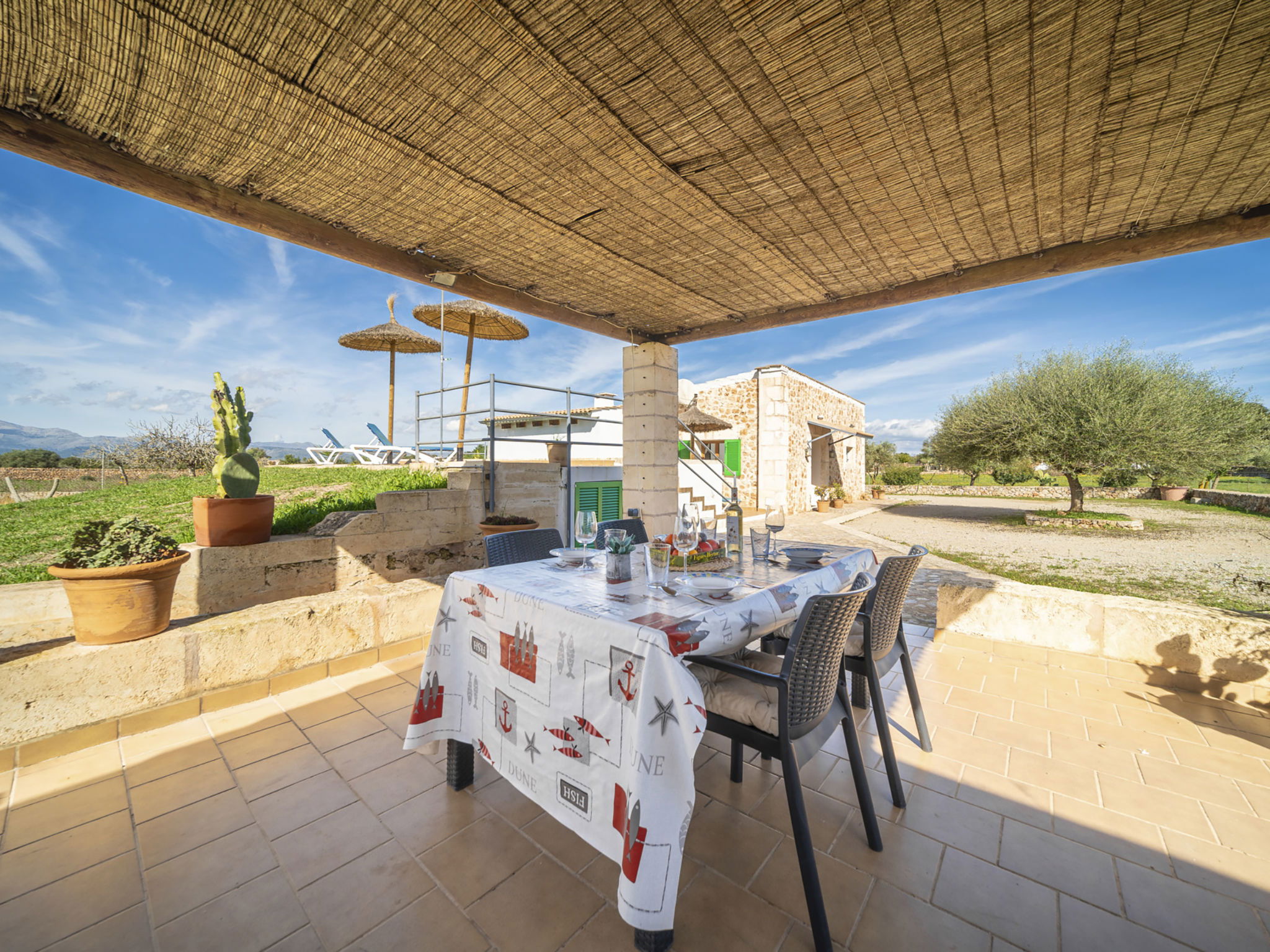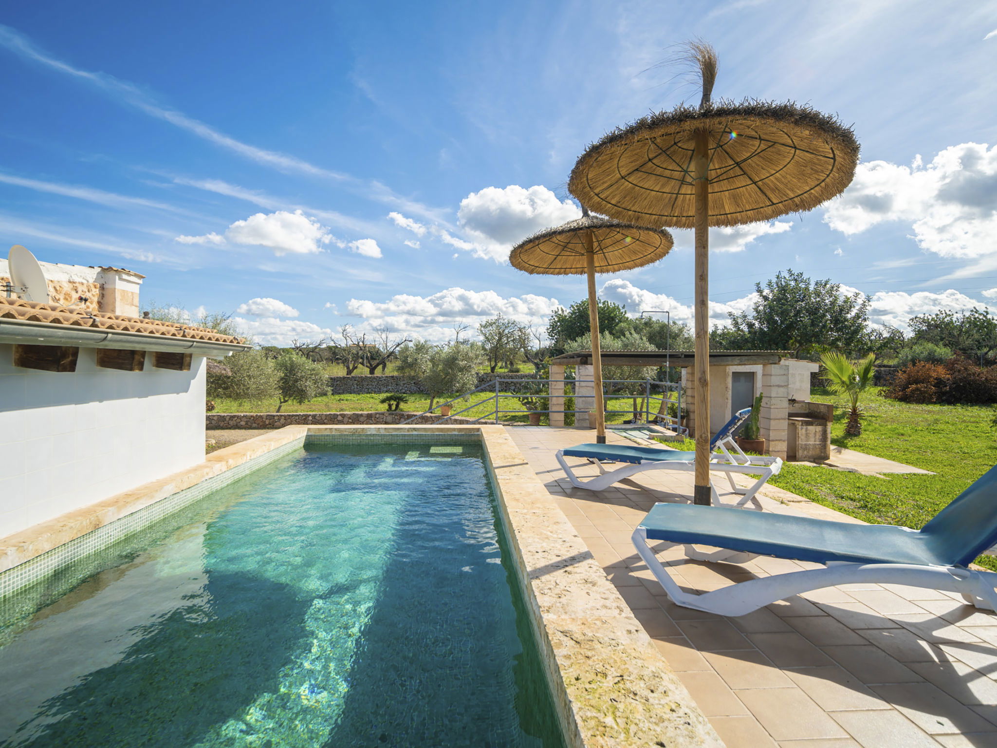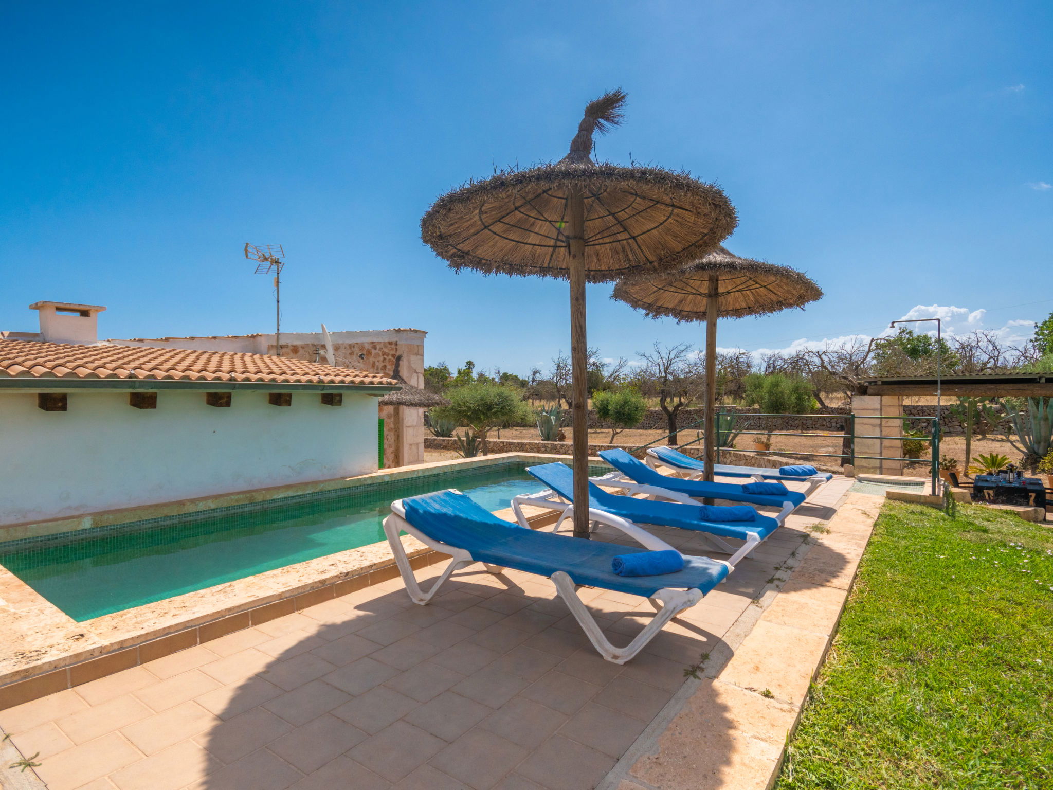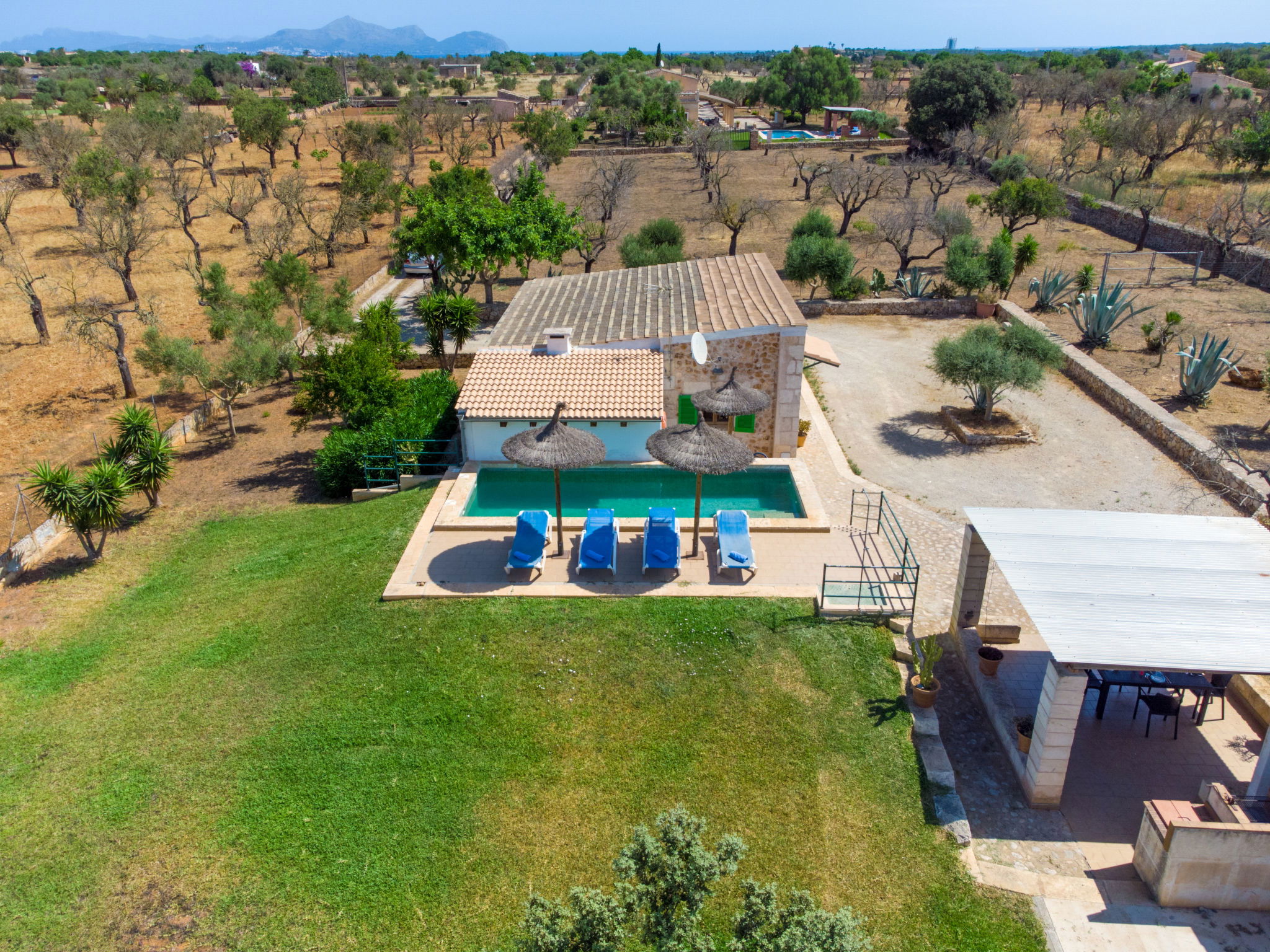 Rustikale, einfache Finca "Son Ulari Petit", umgeben von Bäumen und Feldern. 4 km vom Zentrum von Ca'n Picafort, 8 km vom Zentrum von Santa Margalida, 15 km vom Zentrum von Alcudia, 4 km vom Meer, im Grünen. Zur Alleinbenutzung: naturbelassenes Grundstück 1'500 m2 (eingezäunt) mit Bäumen, Obstgarten, Liegewiese, Aufstellpool eckig (7 x 2 m, saisonale Verfügbarkeit: 01.Jan. - 31.Dez.). Aussendusche, Sitzplatz, Grill. Im Hause: Internetzugang, Wireless LAN, Klimaanlage. Parkplatz auf dem Grundstück. Einkaufsgeschäft 4 km, Bushaltestelle 3 km, Sandstrand "Ca'n Picafort" 4 km. Bitte beachten: Fahrzeug empfohlen. Geeignet für Familien, geeignet für Senioren Babyausstattung auf Anfrage (inkl.). Objekt geeignet für 4 Erwachsene. Der Besitzer akzeptiert keine Jugendgruppen. Be- und Entladen am Ferienhaus möglich. Flugplatz 55 km vom Haus.