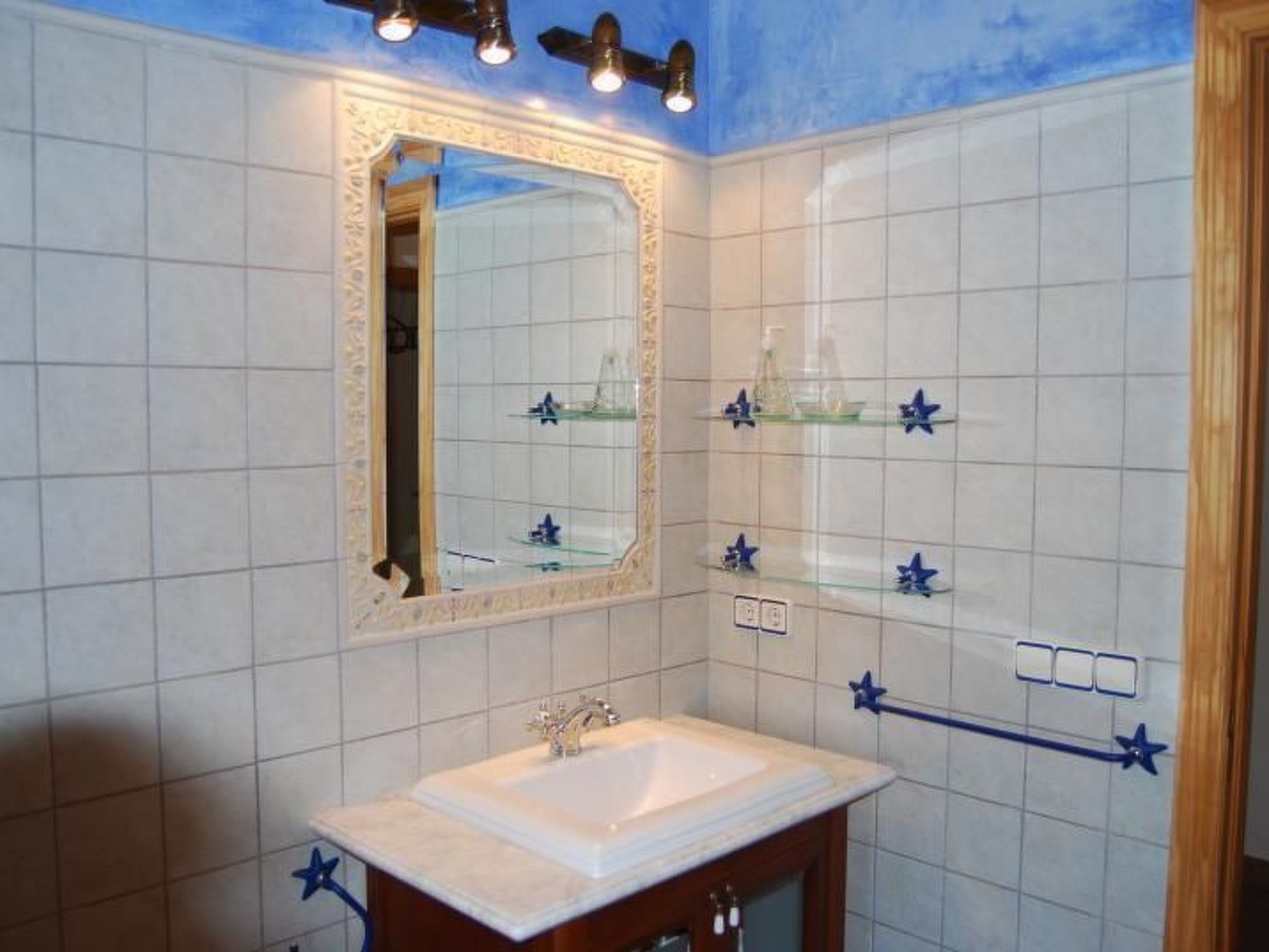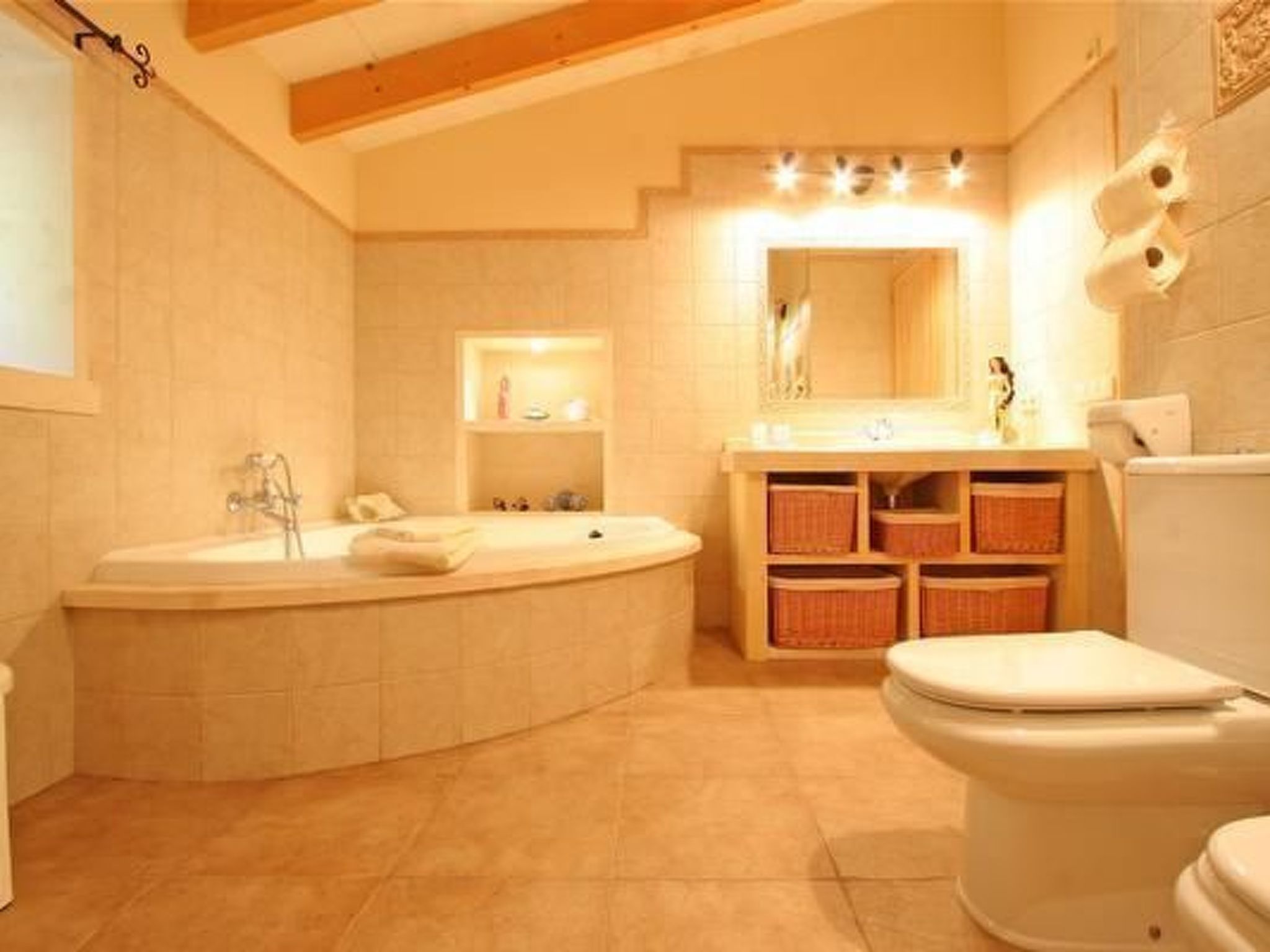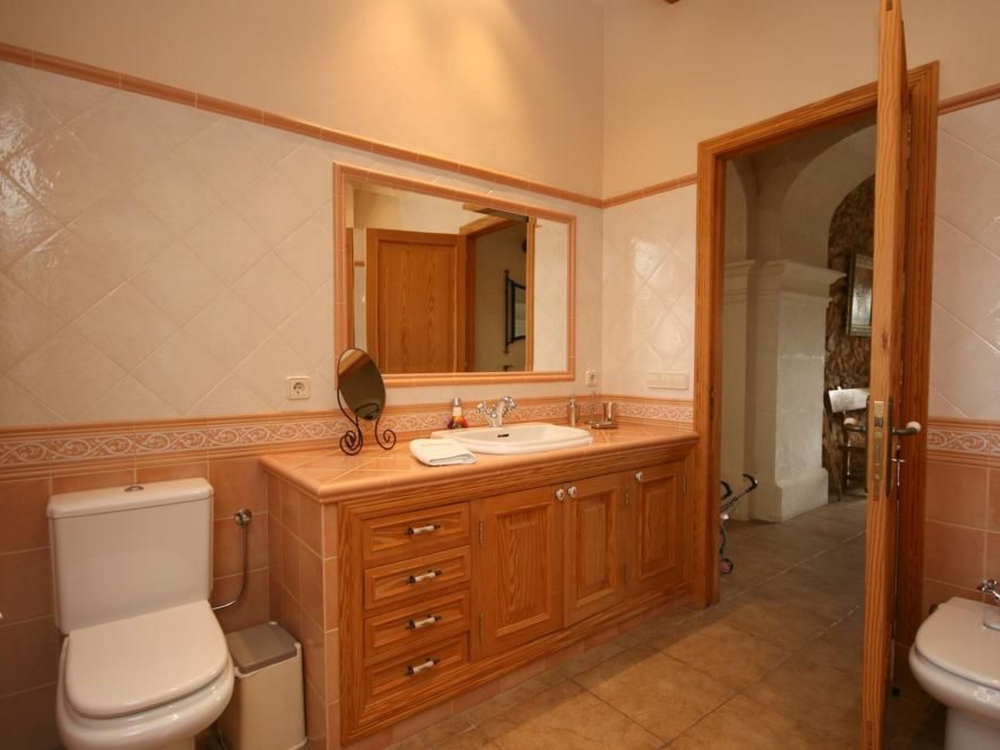 Die erste Etage ist bequem über eine Treppe im Eingangsbereich zu erreichen, ein weiterer Wohnbereich mit Sat-TV. Auf dieser Etage befinden sich auch 4 Doppelschlafzimmer und 2 weitere Bäder. Eines der Doppelschlafzimmer hat Satelliten-TV und eine Terrasse mit herrlichem Blick auf die Landschaft.