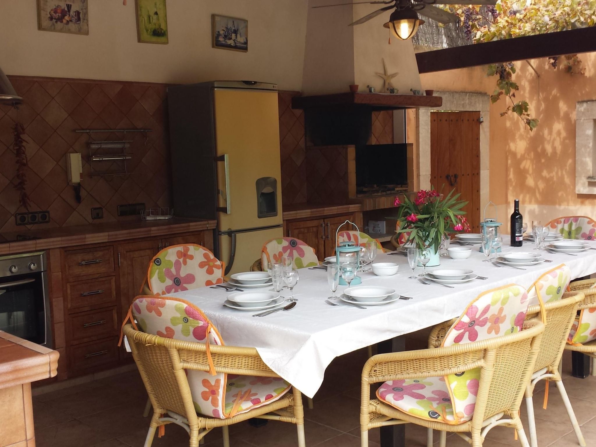 Der Außenbereich der Finca Porrassar verfügt über einen großen Garten mit Rasen, einen privaten Swimmingpool mit einer Größe von 5,50 mx 11 m, Terrassen, Liegestühlen und Sonnenschirmen. Neben dem Pool ist mit einer geräumigen überdachten Terrasse mit einer Outdoor-Küche mit Grill und alle anderen Annehmlichkeiten wie Kühlschrank / Gefrierschrank, Geschirrspüler, Elektroherd, mit einem Arbeitsbereich, Sat-TV, DVD und Stereoanlage kombiniert. Die Finca Es Porrassar liegt in der Nähe von Cas Concos, einem ruhigen Dorf im Südwesten Mallorcas mit 450 Einwohnern, wo es gelungen ist, die typisch mallorquinische Atmosphäre zu bewahren, aber gleichzeitig einen modernen Service zu bieten, mit seinen berühmten Restaurants und Geschäften. Die schönsten Strände im Süden der Insel wie Si Trenc, Ses Covetes oder S'Amarador Mondragó sind nur 7 km entfernt. Für Golfliebhaber gibt es Golfclubs wie Vall d'Or oder Son Antem, die nur 15 Minuten mit dem Auto entfernt sind. Die Hauptstadt Palma de Mallorca und der Flughafen befinden sich in einer Entfernung von ca. 50 km.