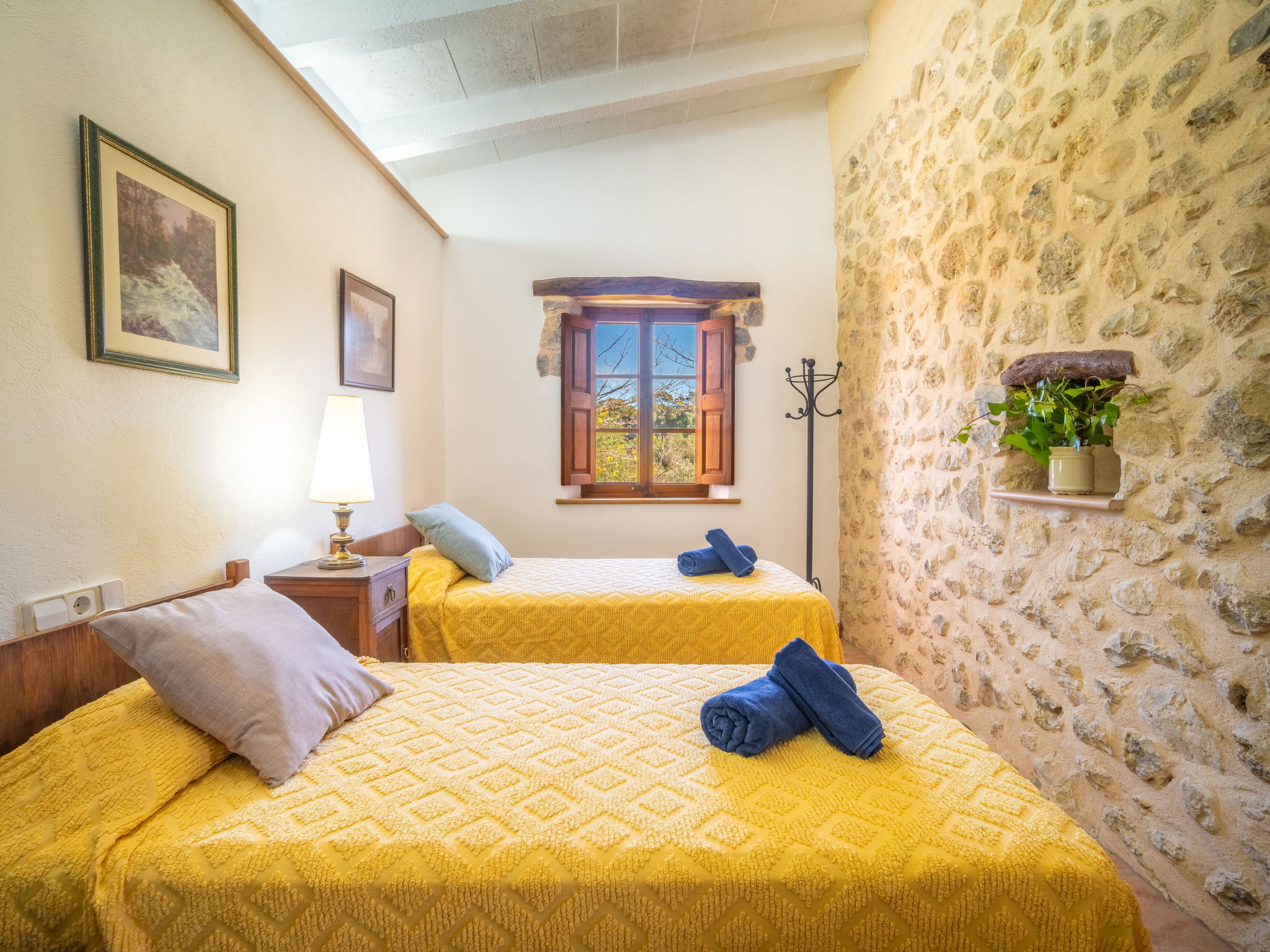 "Son Estaras", 3-Zimmer-Landhaus 100 m2, im ebenerdigen Untergeschoss. Objekt geeignet für 4 Erwachsene. Geräumig und hell, zweckmässig und komfortabel eingerichtet: grosses Wohn-/Esszimmer mit offenem Kamin, Digital-TV, Holzofen und Ventilator. Ausgang zum Gartensitzplatz, zum Schwimmbad. 1 grosses Doppelzimmer mit 2 Betten " 2.5 km, Bahnstation "Inca" 4 km, Sandstrand "Playa de Alcúdia" 26 km. Sporthafen 25 km, Golfplatz (18 Loch) 21 km, Wanderwege ab Haus 3 km, Radweg 500 m. Nahe gelegene Sehenswürdigkeiten: Ciudad de Inca 3 km, Pueblos,Campanet,Caimari,Moscari,Mancor. Palma City 31 km, Mallorca Fashion Oulet & Cinemas 24 km, Playa de Formentor 35 km, Ermita de Lluc 15 km. Wandergebiete: Serra de Tramuntana, Puig de Santa Magdalena, Inca. Bitte beachten: Fahrzeug empfohlen. Objekt geeignet für 4 Erwachsene. Der Besitzer akzeptiert keine Jugendgruppen. Tiere in der Umgebung. Flugplatz 42.4 km vom Haus.