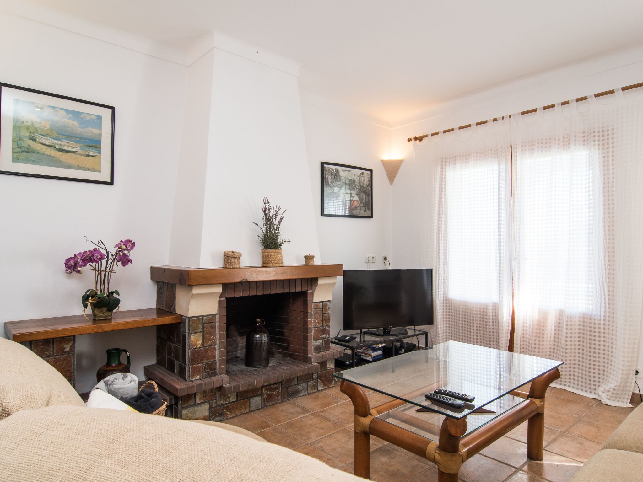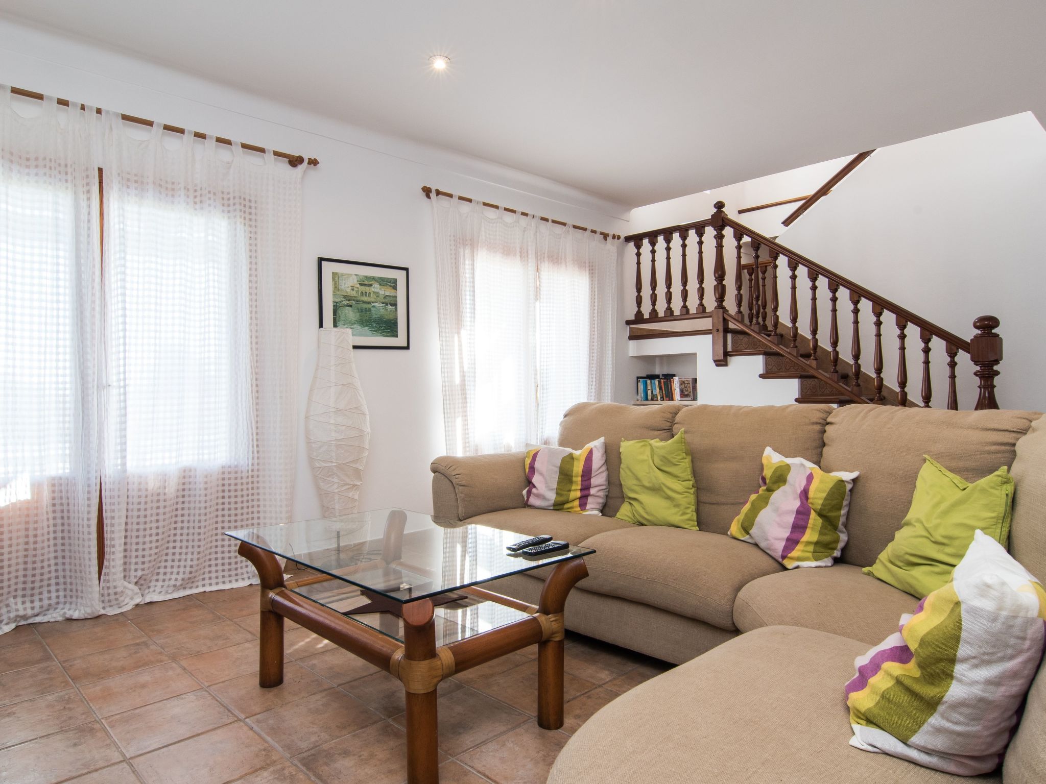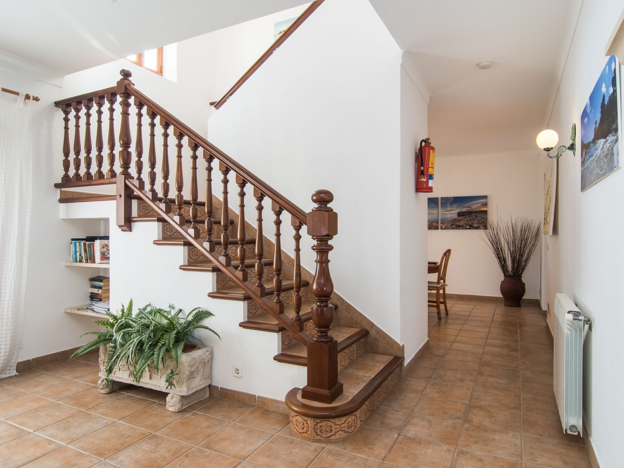 Das Haus hat eine Wohnfläche von ca. 170 m², die sich auf zwei Etage verteilen, und kann bis zu 6 Personen problemlos unterbringen. Im Erdgeschoss gibt es die Diele, die Küche, welche komplett ausgestattet ist (Herd, Kühlschrank, Geschirrspüler, Teekanne, Toaster, Mikrowelle,...), ein kleines Bad mit WC, Dusche und einer Waschmaschine. Desweiteren befindet sich hier noch das Esszimmer und der Wohnbereich mit TV, dvd, Bücher, Couchgarnitur, Kamin,...In der ersten Etage befinden sich die 3 Schlafzimmer, zwei sind mit je 2 Einzelbetten (0,90m) ausgestattet; das dritte besitzt ein Doppelbett mit 1,50m Breite und ein direktes Badezimmer (Badewanne, Bidet, WC,...). In allen Schlafzimmern gibt es Klimaanlage. In der ersten Etage gibt es auch noch ein weiteres Badezimmer mit Badewanne, WC und Bidet. Alle Zimmer haben Blick nach außen.