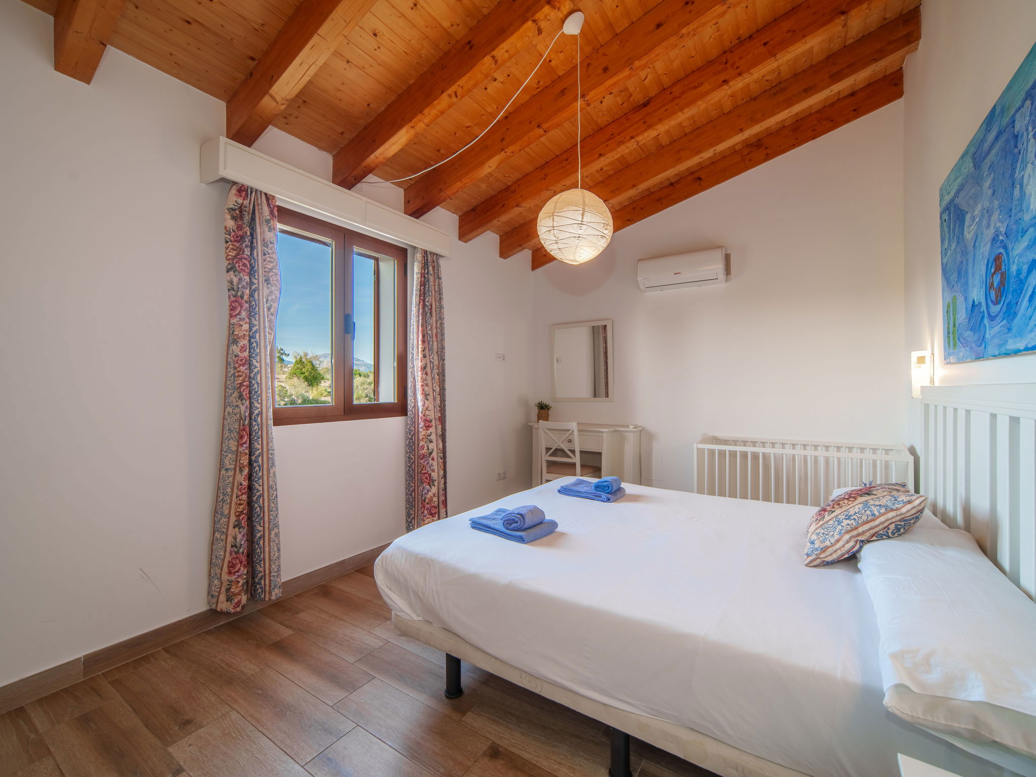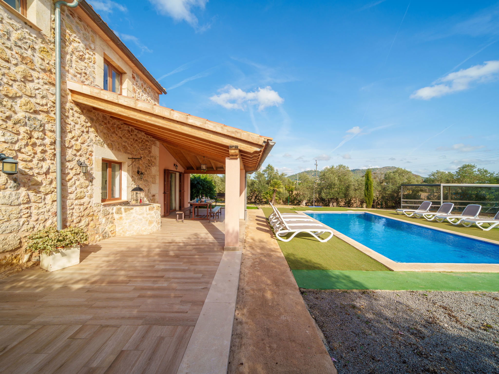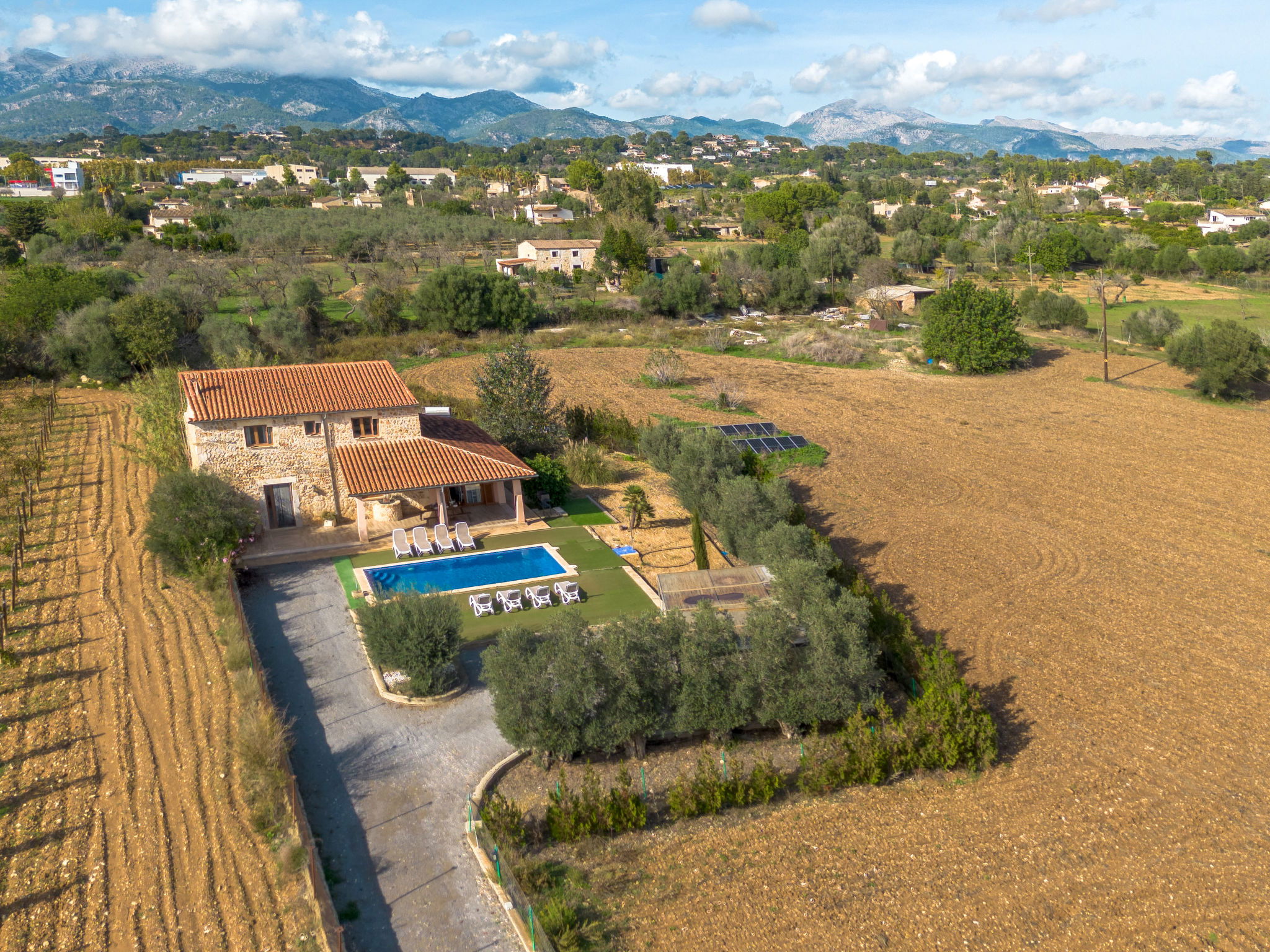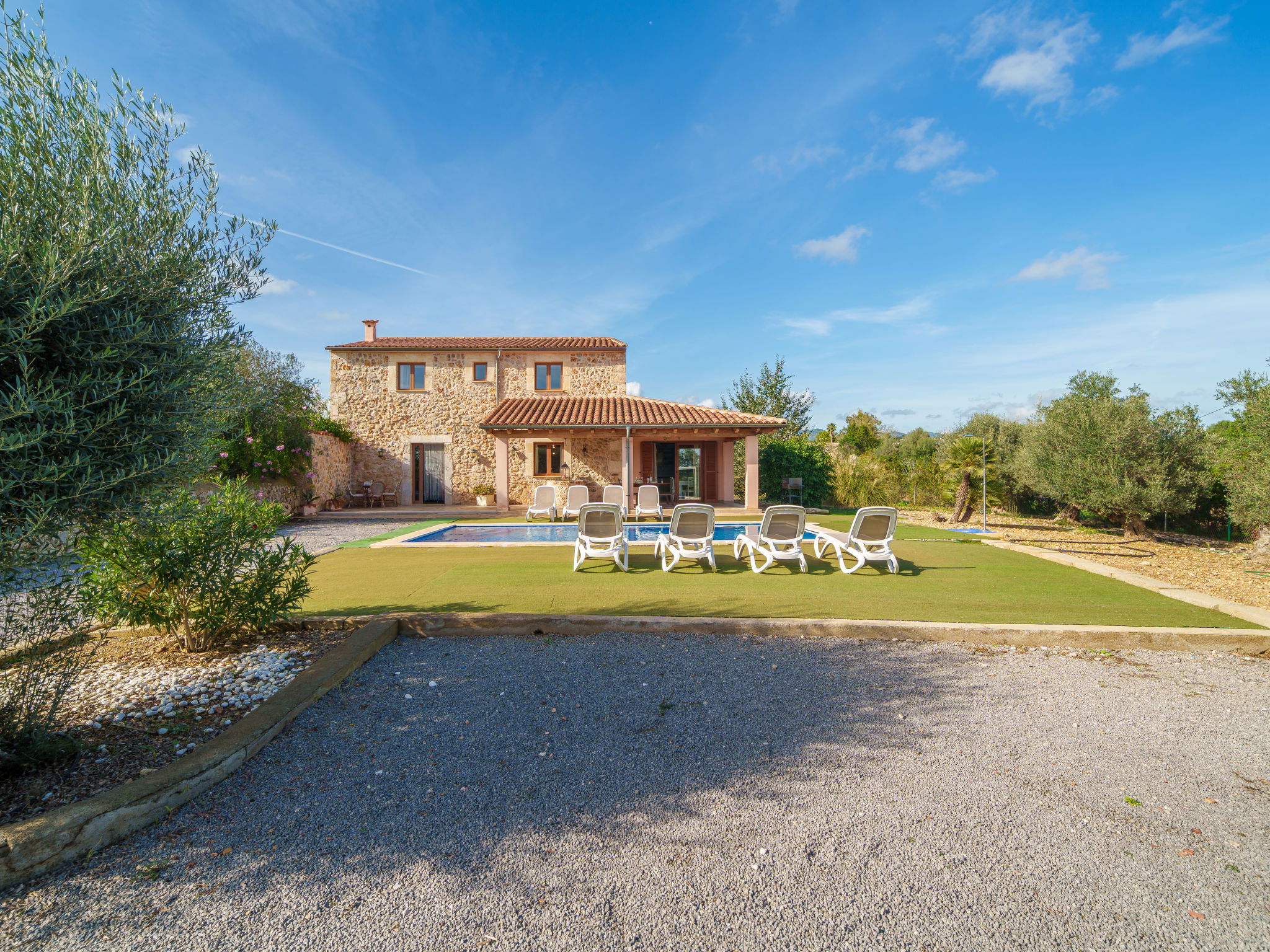 2 km von Inca: Sehr grosse, schöne, komfortable Finca "Can Blancos", auf 2 Stockwerken, renoviert. Ausserhalb des Ortes, sonnige Lage, 2 km vom Waldrand, 25 km vom Meer, im Grünen. Zur Alleinbenutzung: naturbelassenes Grundstück (eingezäunt), grosser, schöner Garten mit Pflanzen und Bäumen, Schwimmbad eckig (7 x 4 m, saisonale Verfügbarkeit: 01.Jan. - 31.Dez.). Aussendusche, Tischtennis, Sitzplatz, Laube, Pergola, Gartenmöbel, Grill. Im Hause: Internetzugang, Wireless LAN, Einstellraum für Fahrräder, Klimaanlage, Waschmaschine. Parkplatz (überdacht) beim Haus auf dem Grundstück. Einkaufsgeschäft 2.5 km, Supermarkt 1.5 km, Einkaufszentrum 15 km, Restaurant 2 km, Bar 1.5 km, Bäckerei 1.5 km, Zentrum zu Fuss in 20 Minuten erreichbar, Bushaltestelle 1.8 km, Bahnstation 2.7 km, Sandstrand 25 km, Felsstrand 28 km. Golfplatz (18 Loch) 29 km, Tennis 2.5 km. Nahe gelegene Sehenswürdigkeiten: Puig de Santa Magdalena, Museo del Calzado, Monasterio de Lluc, saclasta.com. Bitte beachten: geeignet für Familien, geeignet für Senioren. Objekt geeignet für 8 Erwachsene. Der Besitzer akzeptiert keine Jugendgruppen. Be- und Entladen am Ferienhaus möglich. Tiere in der Umgebung.