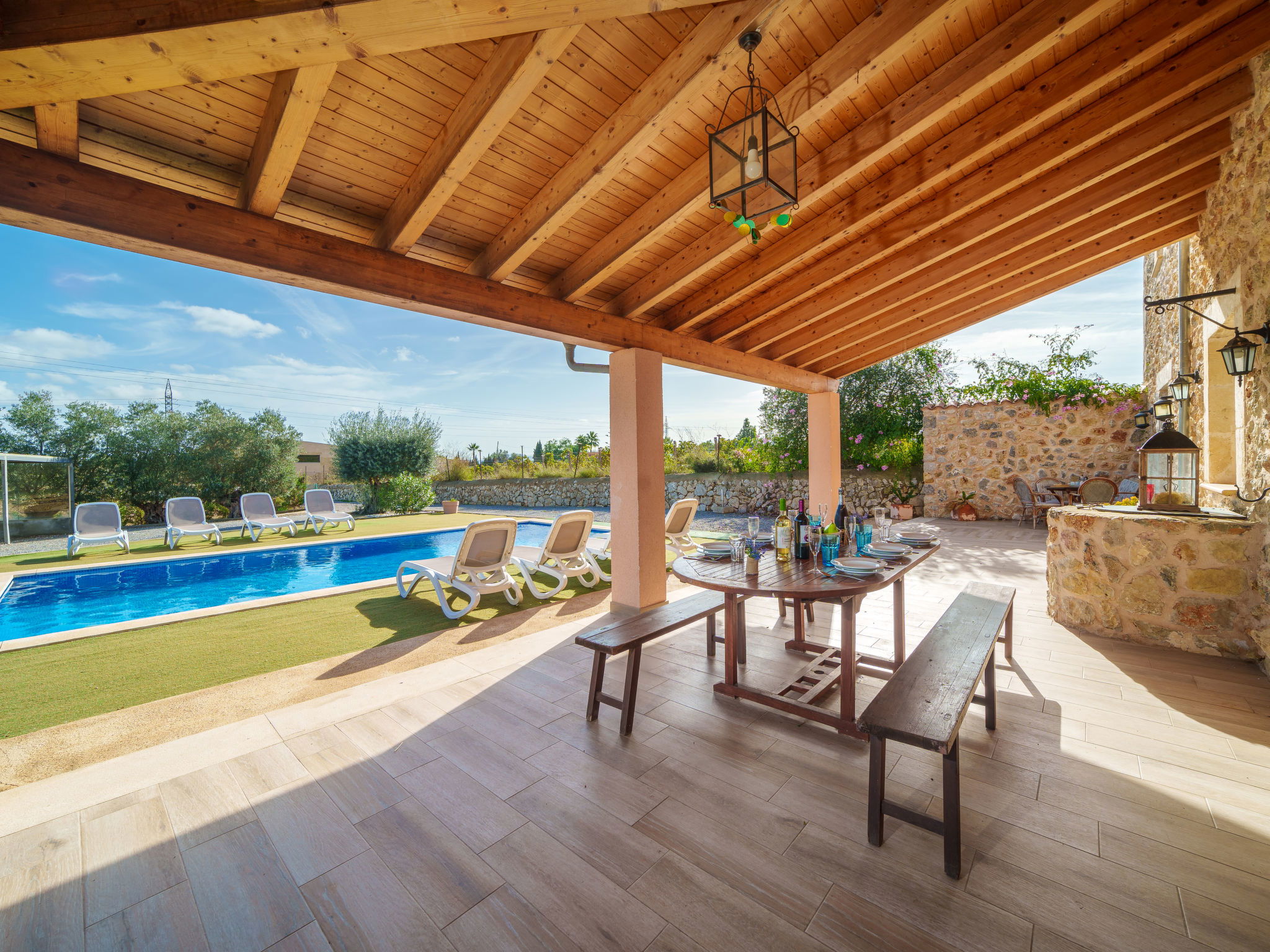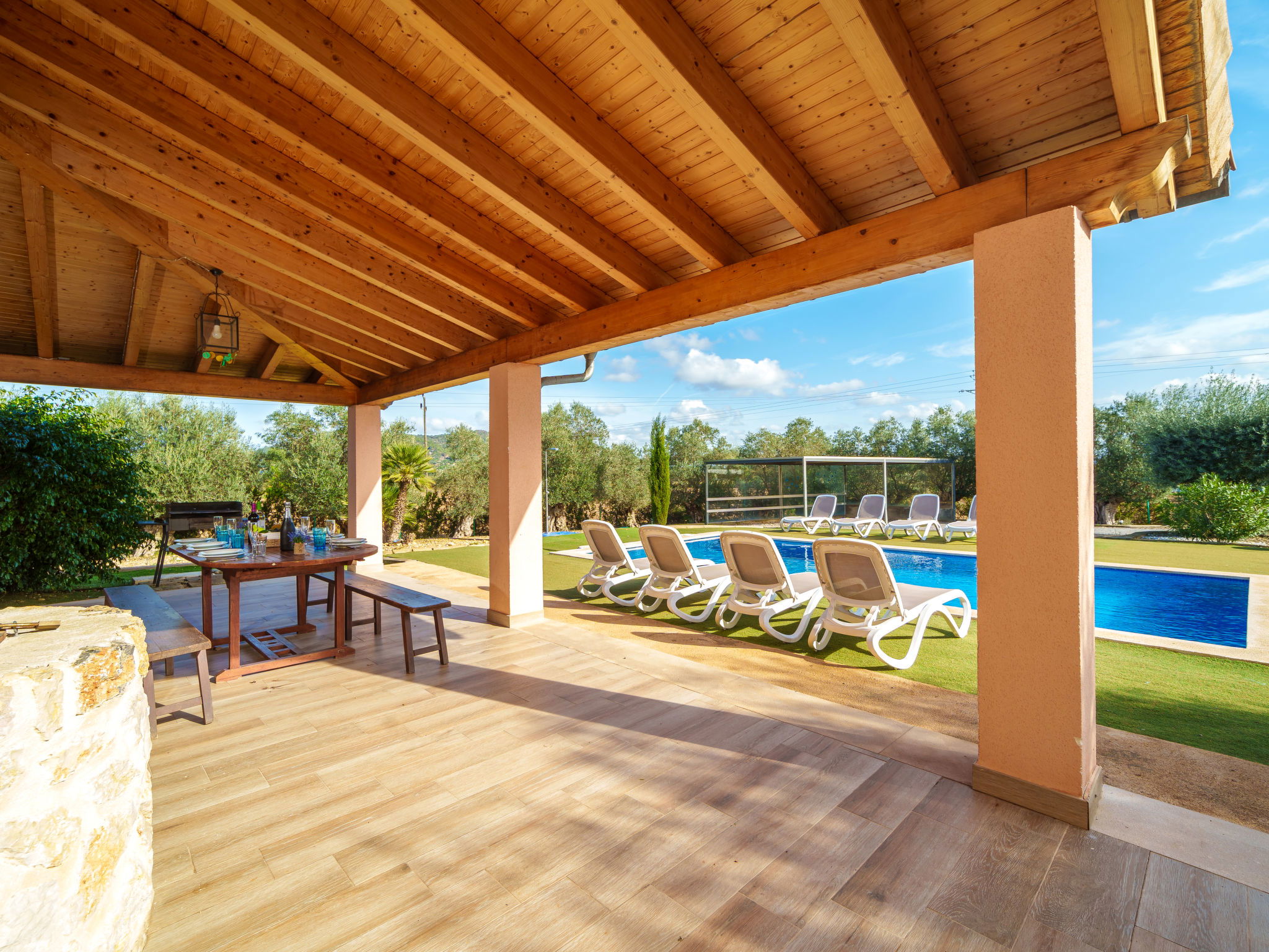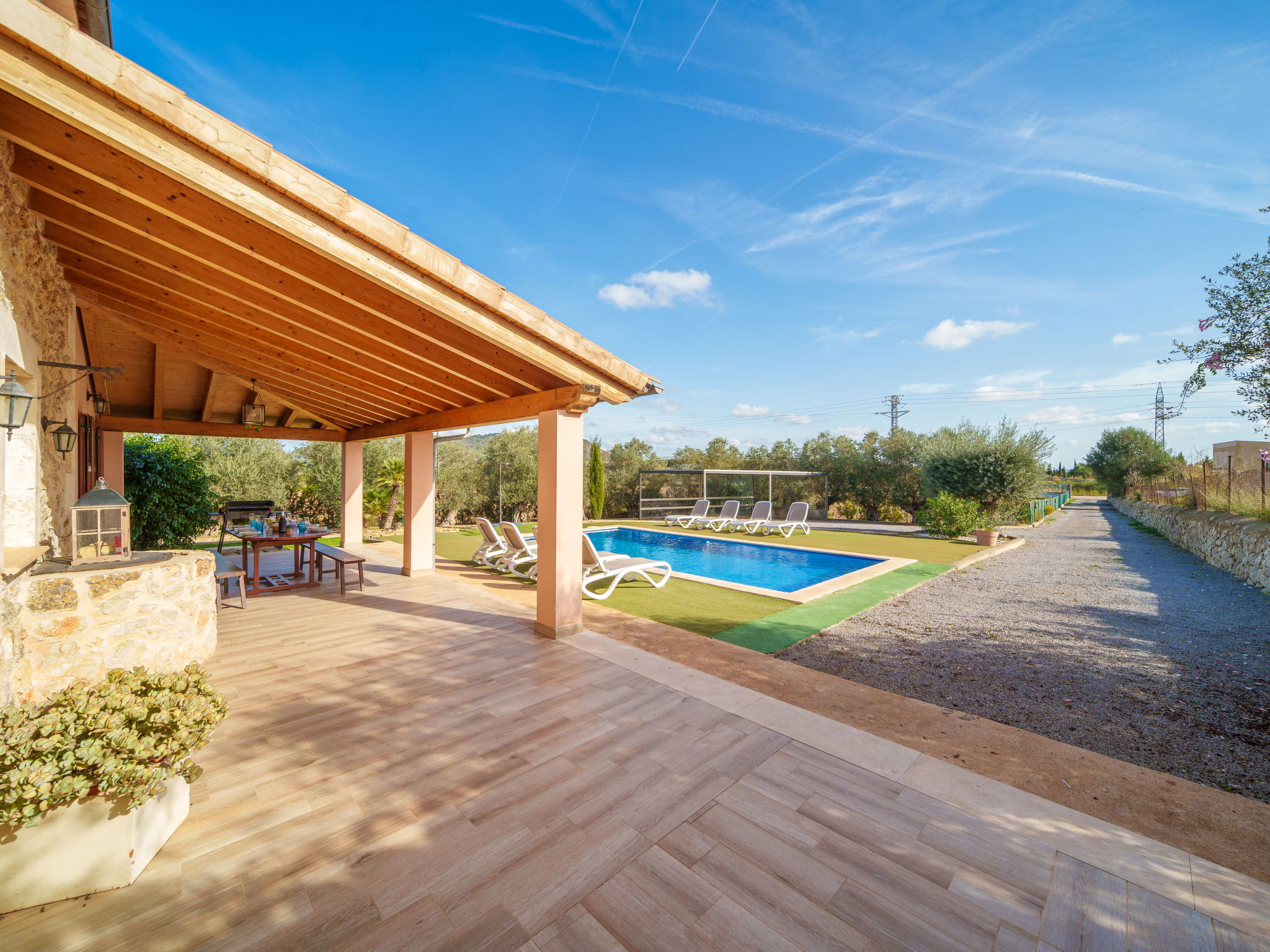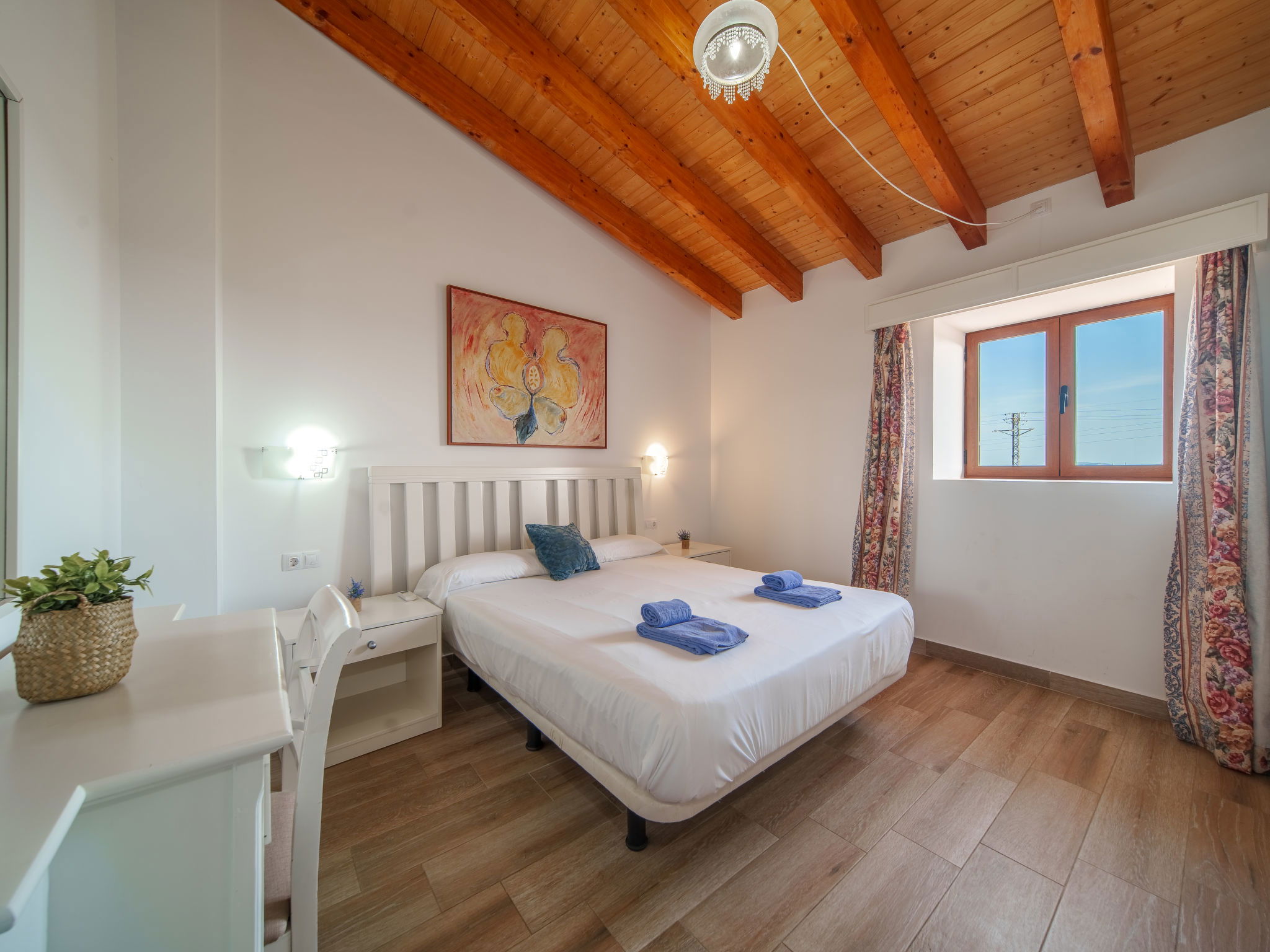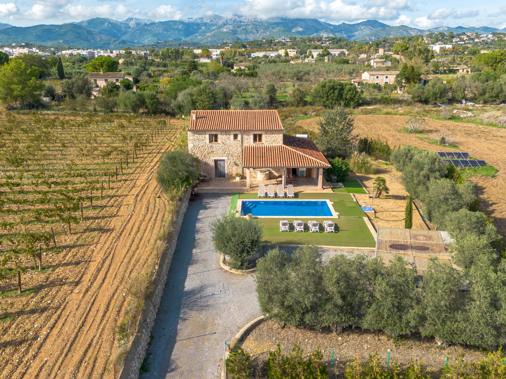 2 km von Inca: Sehr grosse, schöne, komfortable Finca "Can Blancos", auf 2 Stockwerken, renoviert. Ausserhalb des Ortes, sonnige Lage, 2 km vom Waldrand, 25 km vom Meer, im Grünen. Zur Alleinbenutzung: naturbelassenes Grundstück (eingezäunt), grosser, schöner Garten mit Pflanzen und Bäumen, Schwimmbad eckig (7 x 4 m, saisonale Verfügbarkeit: 01.Jan. - 31.Dez.). Aussendusche, Tischtennis, Sitzplatz, Laube, Pergola, Gartenmöbel, Grill. Im Hause: Internetzugang, Wireless LAN, Einstellraum für Fahrräder, Klimaanlage, Waschmaschine. Parkplatz (überdacht) beim Haus auf dem Grundstück. Einkaufsgeschäft 2.5 km, Supermarkt 1.5 km, Einkaufszentrum 15 km, Restaurant 2 km, Bar 1.5 km, Bäckerei 1.5 km, Zentrum zu Fuss in 20 Minuten erreichbar, Bushaltestelle 1.8 km, Bahnstation 2.7 km, Sandstrand 25 km, Felsstrand 28 km. Golfplatz (18 Loch) 29 km, Tennis 2.5 km. Nahe gelegene Sehenswürdigkeiten: Puig de Santa Magdalena, Museo del Calzado, Monasterio de Lluc, saclasta.com. Bitte beachten: geeignet für Familien, geeignet für Senioren. Objekt geeignet für 8 Erwachsene. Der Besitzer akzeptiert keine Jugendgruppen. Be- und Entladen am Ferienhaus möglich. Tiere in der Umgebung.