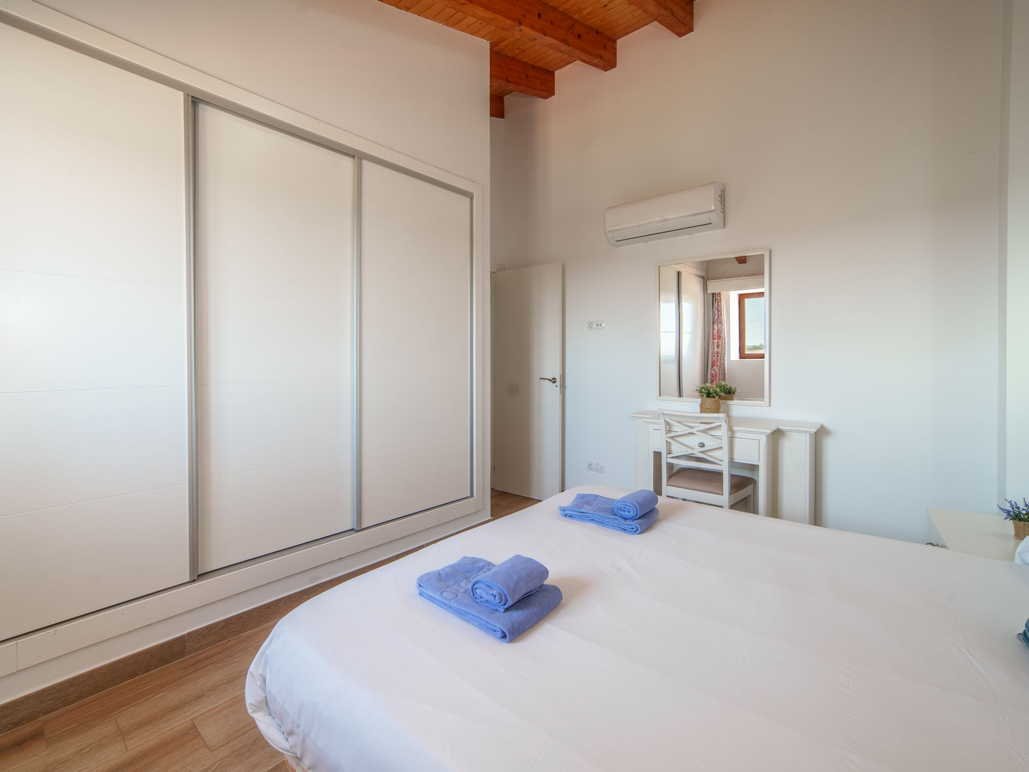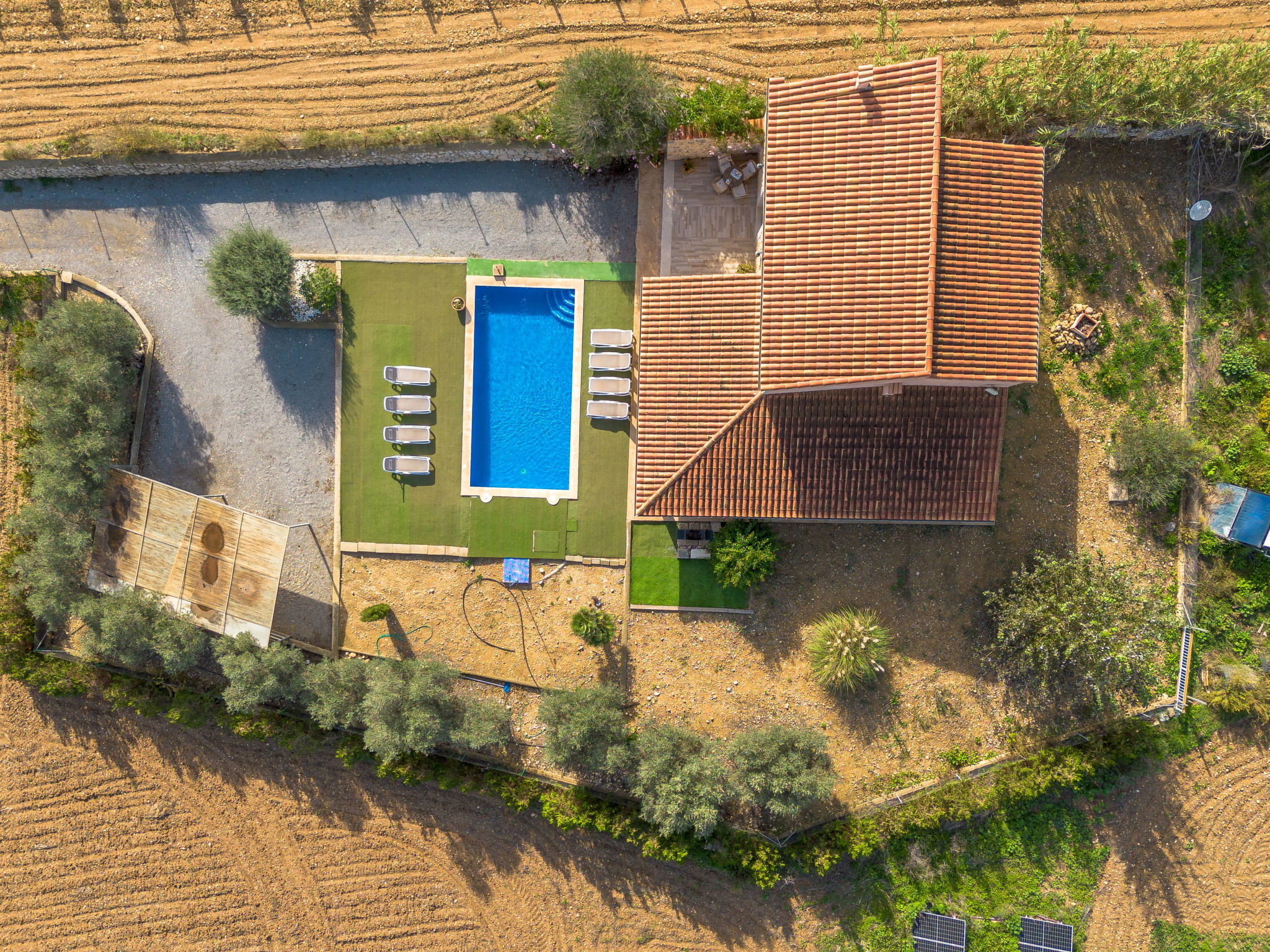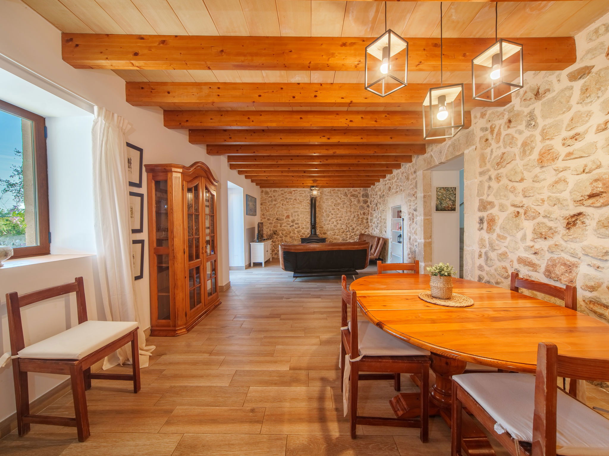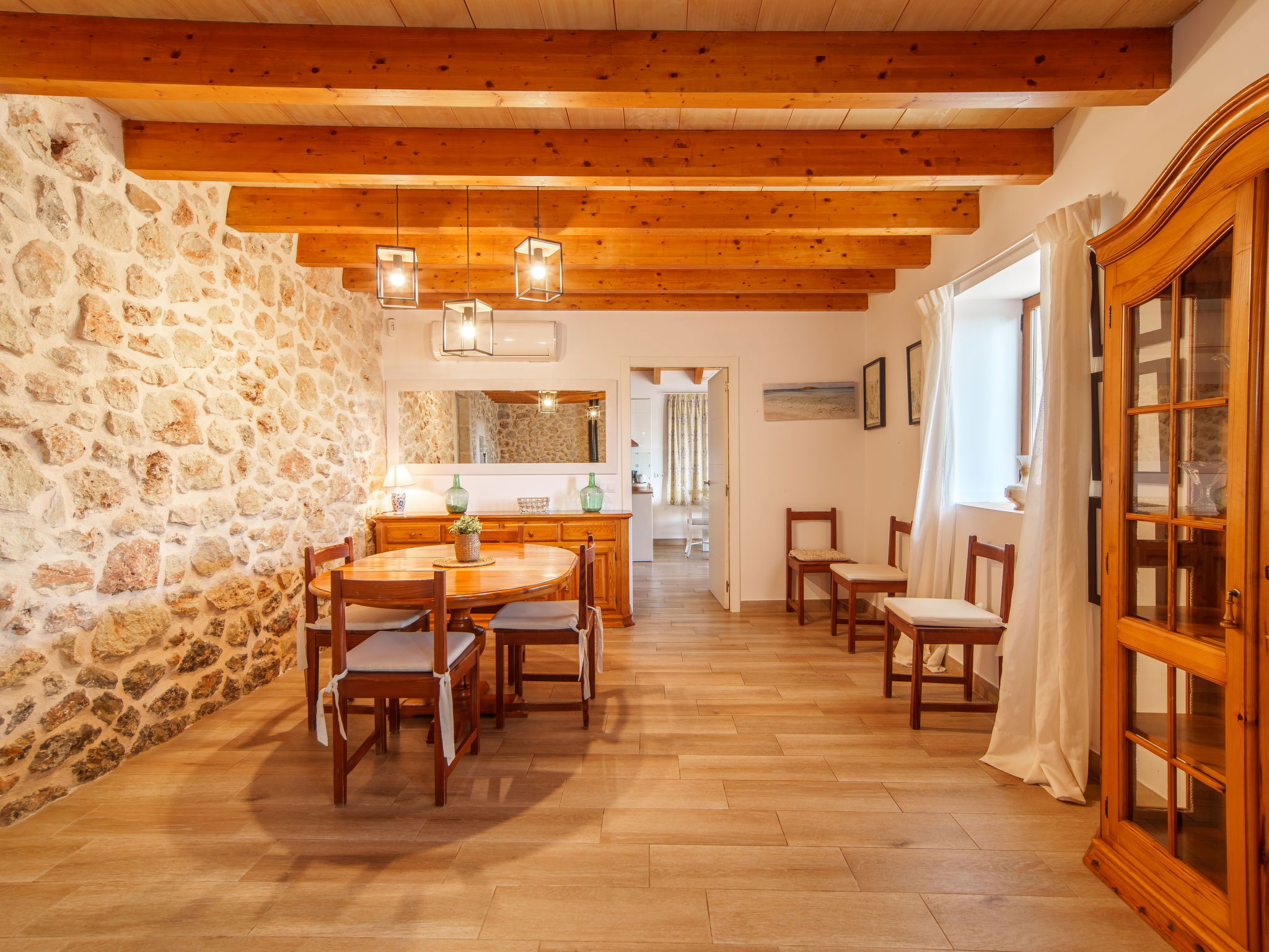2 km von Inca: Sehr grosse, schöne, komfortable Finca "Can Blancos", auf 2 Stockwerken, renoviert. Ausserhalb des Ortes, sonnige Lage, 2 km vom Waldrand, 25 km vom Meer, im Grünen. Zur Alleinbenutzung: naturbelassenes Grundstück (eingezäunt), grosser, schöner Garten mit Pflanzen und Bäumen, Schwimmbad eckig (7 x 4 m, saisonale Verfügbarkeit: 01.Jan. - 31.Dez.). Aussendusche, Tischtennis, Sitzplatz, Laube, Pergola, Gartenmöbel, Grill. Im Hause: Internetzugang, Wireless LAN, Einstellraum für Fahrräder, Klimaanlage, Waschmaschine. Parkplatz (überdacht) beim Haus auf dem Grundstück. Einkaufsgeschäft 2.5 km, Supermarkt 1.5 km, Einkaufszentrum 15 km, Restaurant 2 km, Bar 1.5 km, Bäckerei 1.5 km, Zentrum zu Fuss in 20 Minuten erreichbar, Bushaltestelle 1.8 km, Bahnstation 2.7 km, Sandstrand 25 km, Felsstrand 28 km. Golfplatz (18 Loch) 29 km, Tennis 2.5 km. Nahe gelegene Sehenswürdigkeiten: Puig de Santa Magdalena, Museo del Calzado, Monasterio de Lluc, saclasta.com. Bitte beachten: geeignet für Familien, geeignet für Senioren. Objekt geeignet für 8 Erwachsene. Der Besitzer akzeptiert keine Jugendgruppen. Be- und Entladen am Ferienhaus möglich. Tiere in der Umgebung.