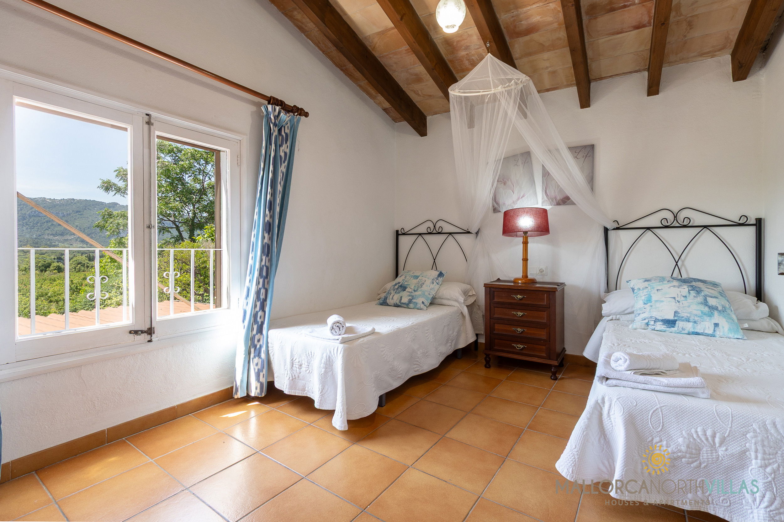 Alle Zimmer bieten spektakuläre Ausblicke auf die Serra de Tramuntana, die mallorquinische Landschaft und den ikonischen Puig de Maria und schaffen so ein perfektes Umfeld zum Entspannen, Telearbeiten oder Ausruhen nach einer Fahrradtour.