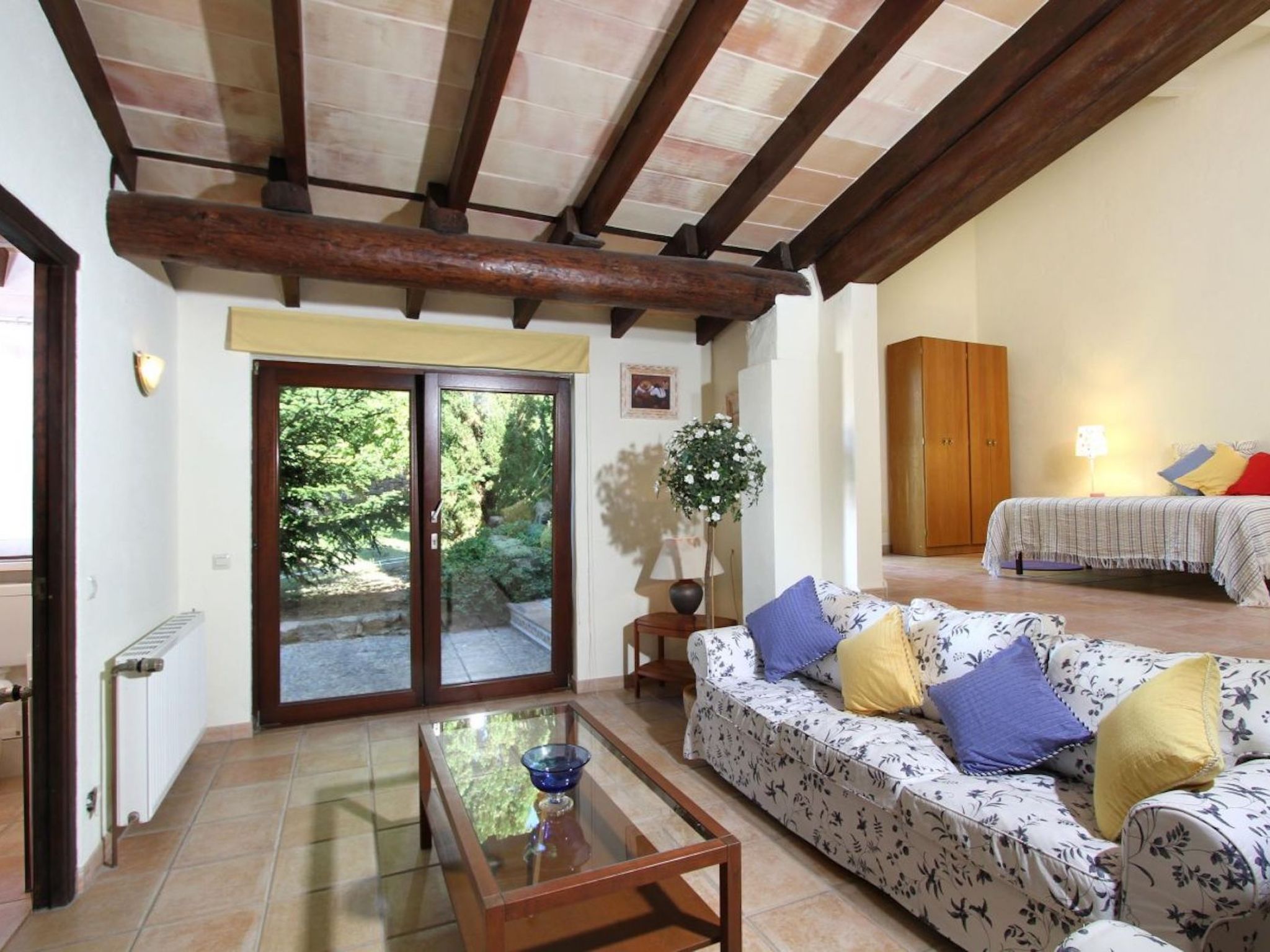 Der Orographie des Hügels folgend, auf dem can Llop liegt, ist das Haupthaus etwas höher gelegen als das Nebengebäude. Wenn Sie das Haus betreten, finden Sie ein geräumiges Wohn- und Esszimmer mit einem herrlichen Blick auf die Landschaft. Die Wände sind mit Gemälden dekoriert, die vom Eigentümer des Hauses, einem professionellen Maler, handgemalt wurden (bitte beachten Sie, dass die Wände jetzt weiß sind und die Landschaftsmotive fehlen, die auf einigen Fotos zu sehen sind). Die Küche ist sehr modern und verfügt über einen Elektroherd, eine Mikrowelle, einen Backofen, eine Spülmaschine, einen Kühlschrank mit Gefrierfach und eine Waschmaschine. Es gibt auch zwei Schlafzimmer (ein Doppel- und ein Zweibettzimmer), die sich ein herrliches Badezimmer mit Badewanne und Dusche teilen.