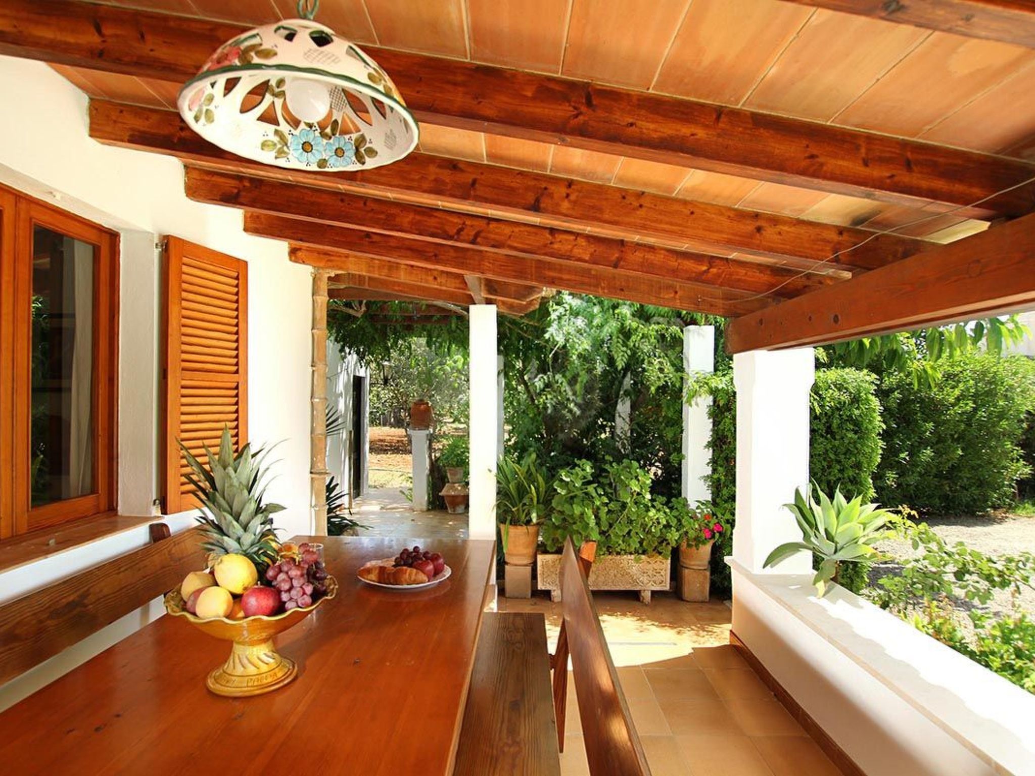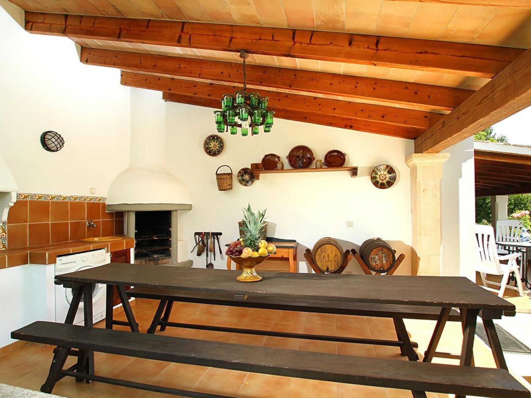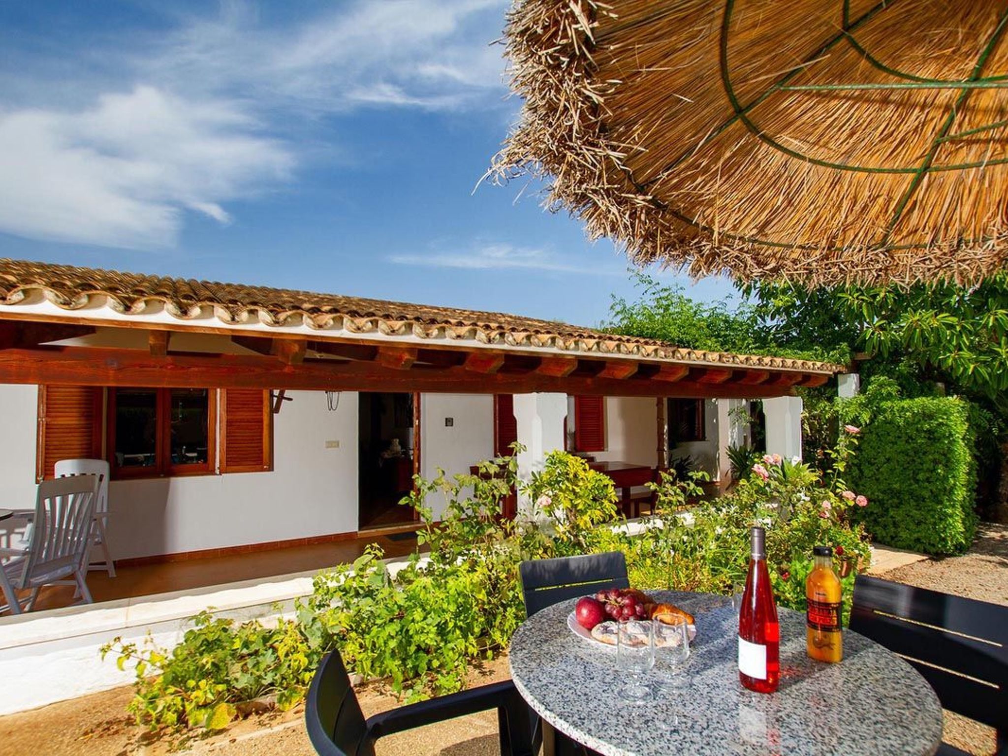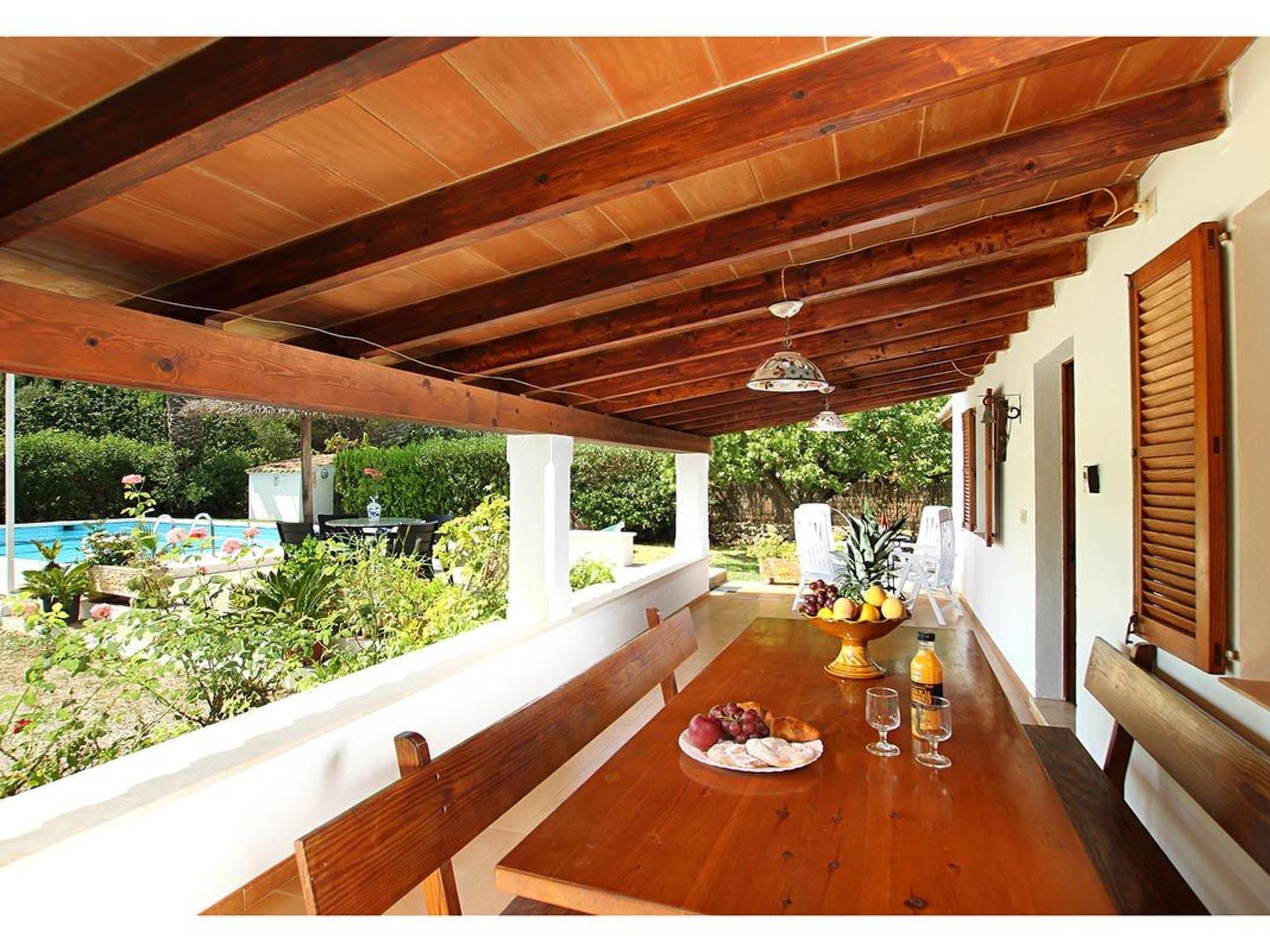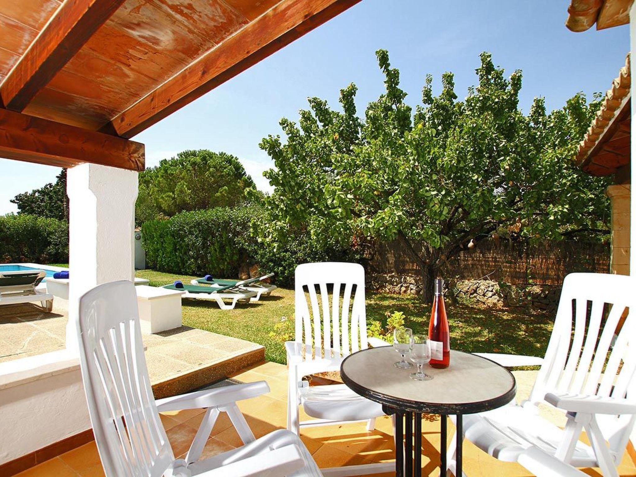 Charmante Villa ideal für Paare oder kleine Familien, die einen erholsamen Urlaub wollen. Die Villa hat viele authentische, traditionelle Merkmale und bietet einen Blick auf den Hügel Puig de Maria. Im Außenbereich ist der private Swimmingpool von einem Garten mit Rasen umgeben, der viel Platz zum Sonnenbaden bietet. Mediterrane Sträucher und Palmen verschönern diesen Teil der Villa.