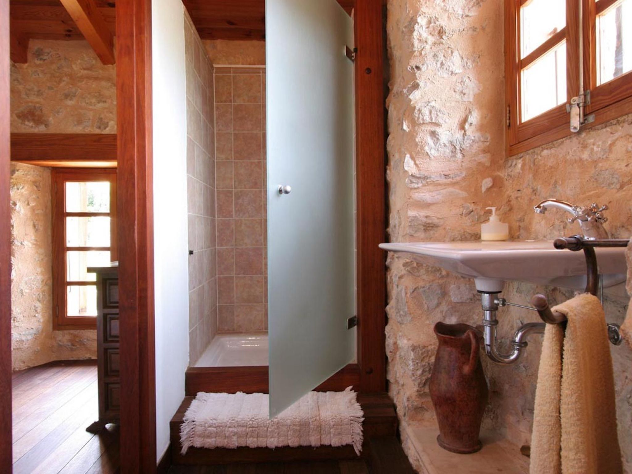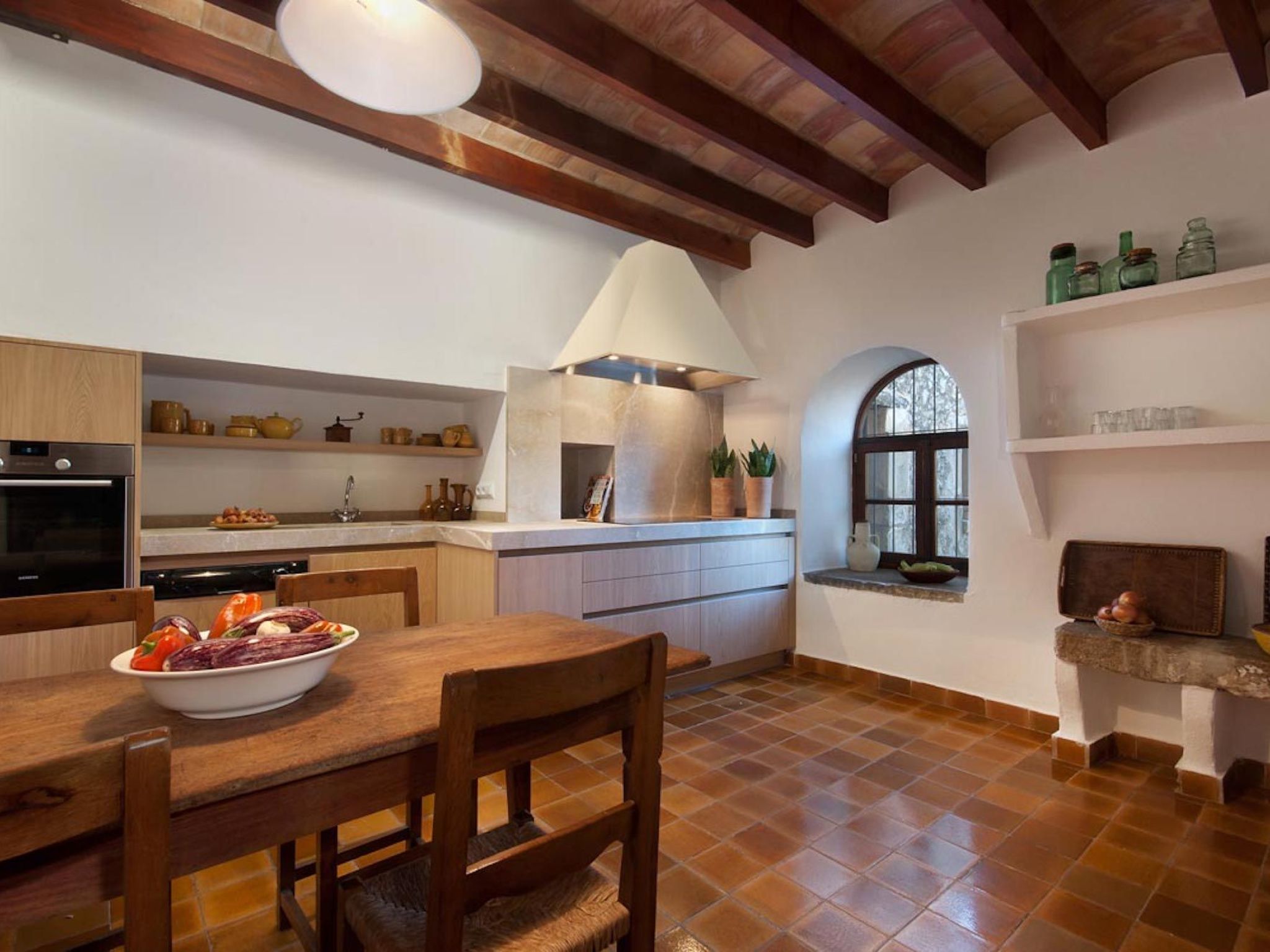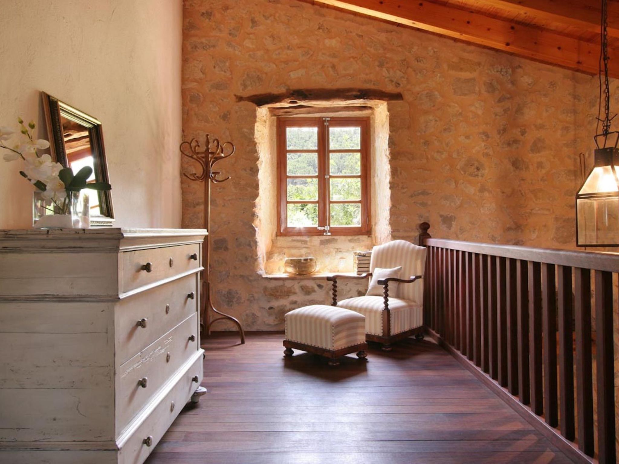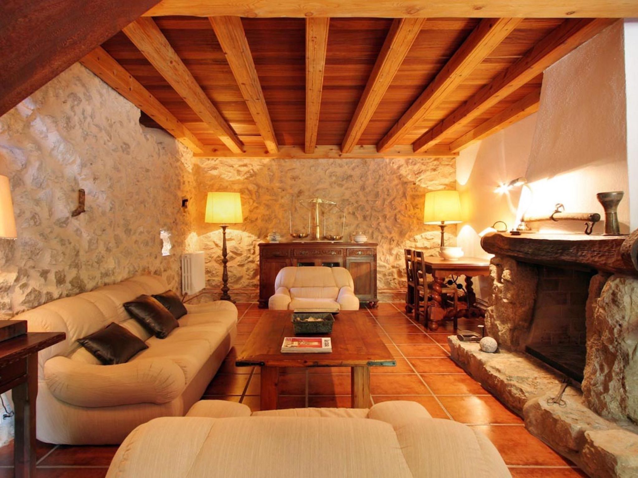 Das zweistöckige Haus ist in einem rustikalen Stil eingerichtet und dekoriert, sowie andere traditionelle Elemente wie freiliegende Steinwände, Holzbalken, Terrakotta-Böden und so weiter. Durch alte Holztüren gelangt man in das Innere des Hauses, das uns mit einem geräumigen Esszimmer empfängt. Ein paar Stufen führen vom Esszimmer zu einem kleinen Wohnzimmer, das mit WIFI-Internetanschluss, TV und DVD ausgestattet ist. Hinter dem Wohnzimmer befindet sich die Küche, die mit Elektroherd, Gasherd, Kühl-/Gefrierschrank, Mikrowelle und Geschirrspüler ausgestattet ist. Die Waschmaschine befindet sich in einer kleinen Waschküche direkt hinter dem Haus. Ein separates Wohnzimmer mit Steinwänden, einem Kamin und einem Duschbad vervollständigen das Erdgeschoss des Hauses. Eine Holztreppe führt zum Hauptschlafzimmer, das mit einem Doppelbett und einem eigenen Bad ausgestattet ist. Dieses Zimmer hat Holzböden und einen schönen Blick auf die Berge. Eine zweite Treppe führt zu den restlichen Schlafzimmern (zwei Doppel- und ein Zweibettzimmer), die sich ein komplettes Badezimmer mit Badewanne und Dusche teilen. Der Swimmingpool ist über eine Treppe leicht zu erreichen und von Terrassen mit Gartenmöbeln umgeben.