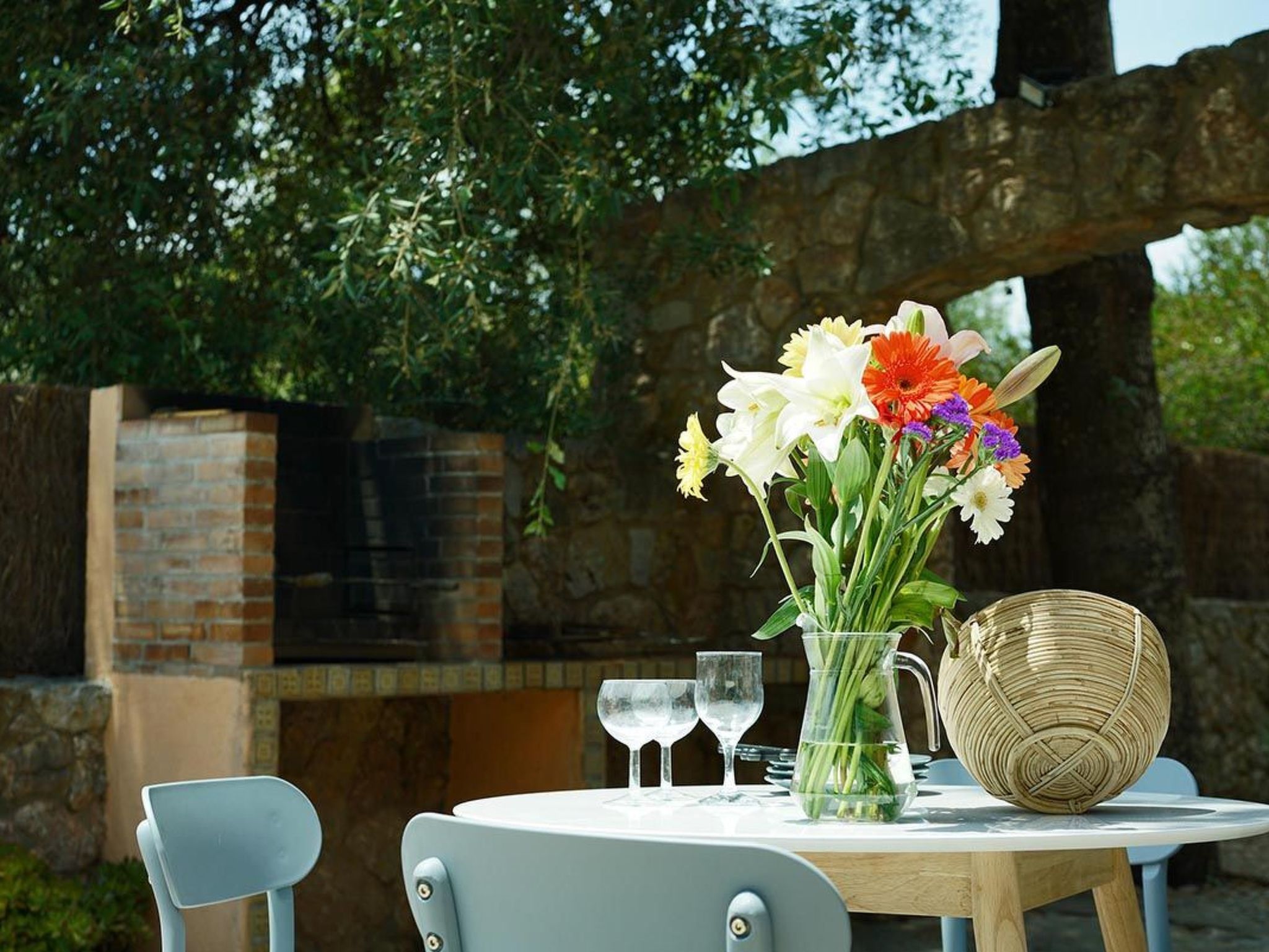 Schließlich gibt es im vorderen Teil des Hauses eine kleine Plattform mit einem Tisch und 4 Stühlen für diejenigen, die lieber im Schatten der Steineichen sitzen.