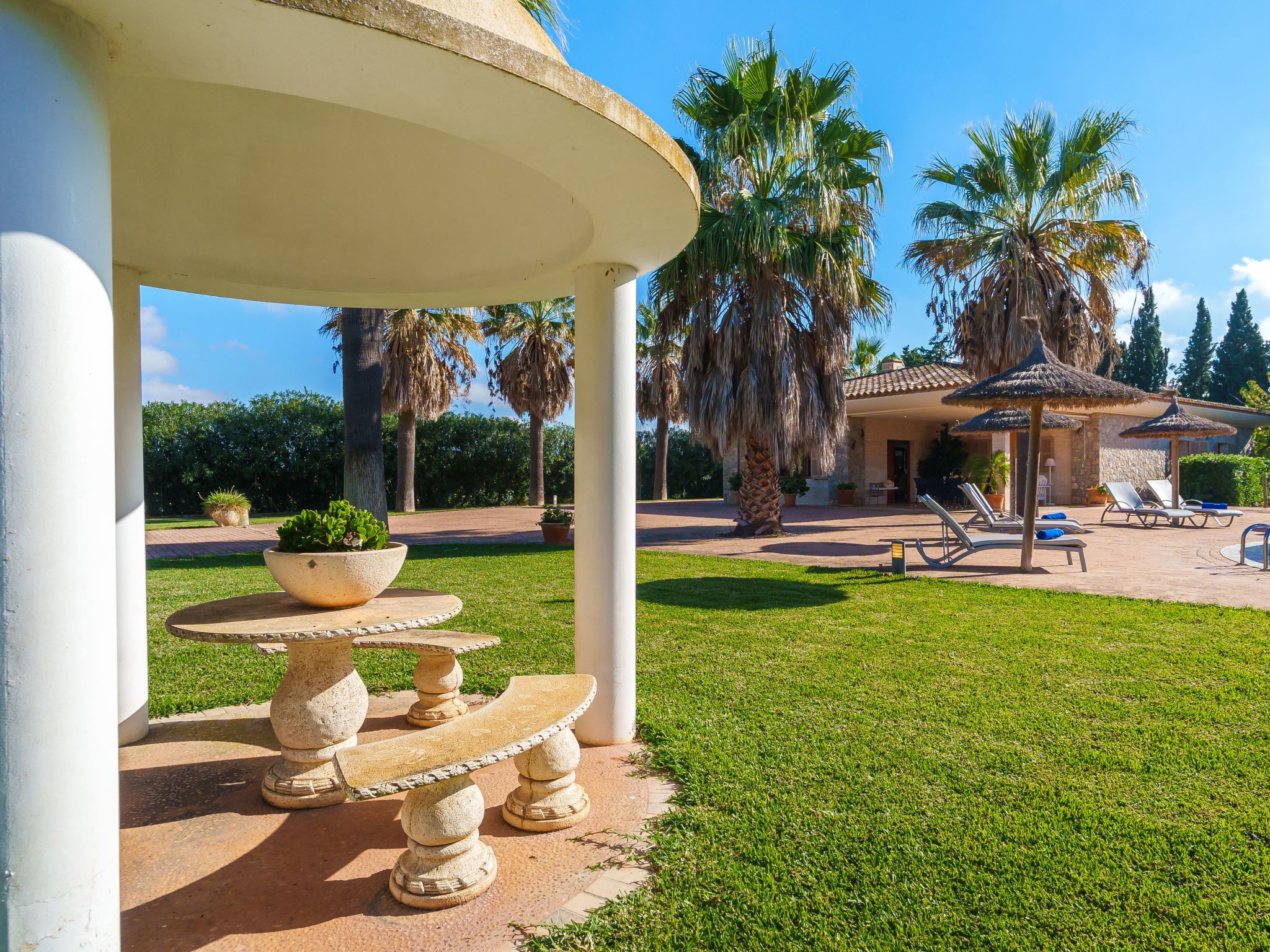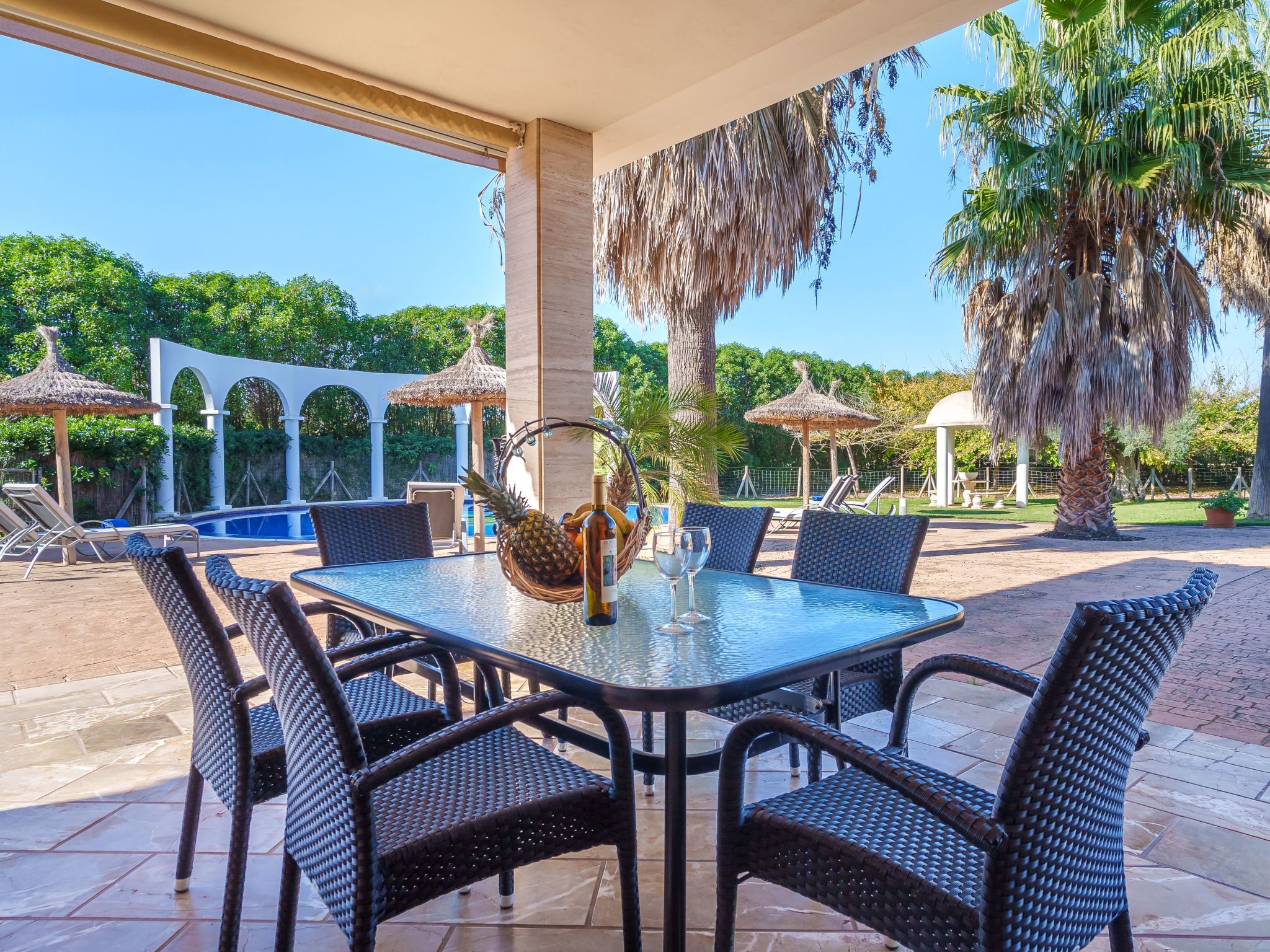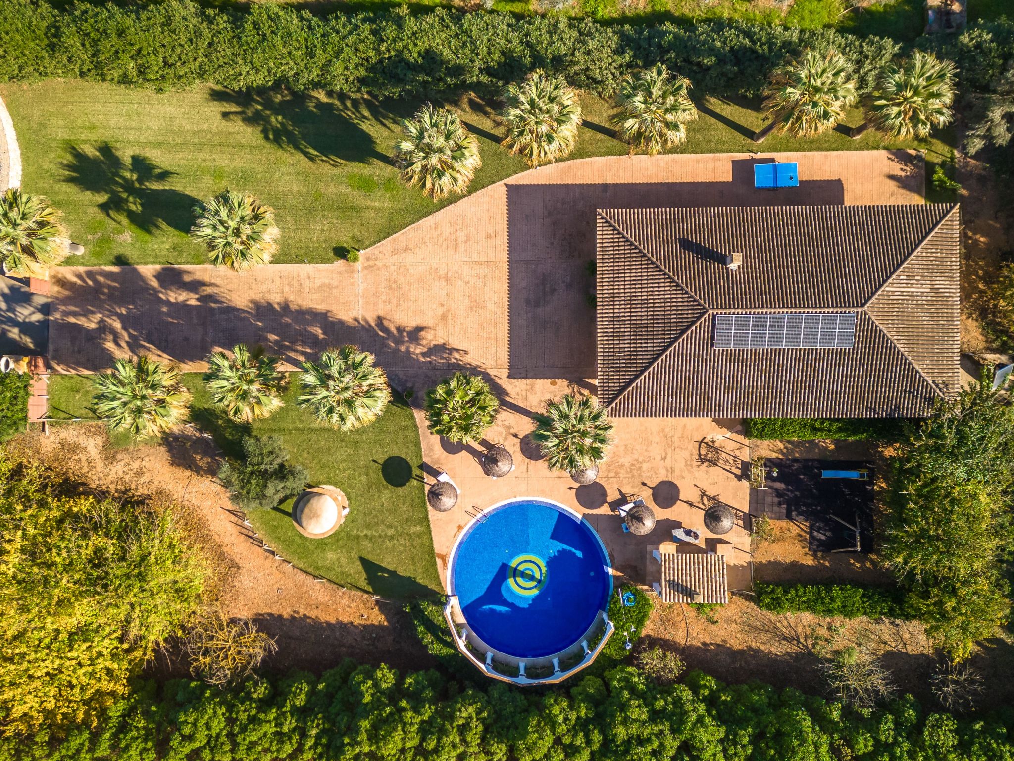 Im Außenbereich befinden sich der Swimming Pool mit 11 Meter durchmesser und 0,90m – 1,50m Tiefe mit Treppeneinstieg, ein wundervoll mit vielen Palmen angelegter Garten, offene und überdachte Terrassen mit Sitzmöglichkeiten, ein gemauerter Grill und ein Spielplatz für die Kleinen unter uns und zudem noch eine Tischtennisplatte. Parkplätze sind auf dem Grundstück vorhanden.