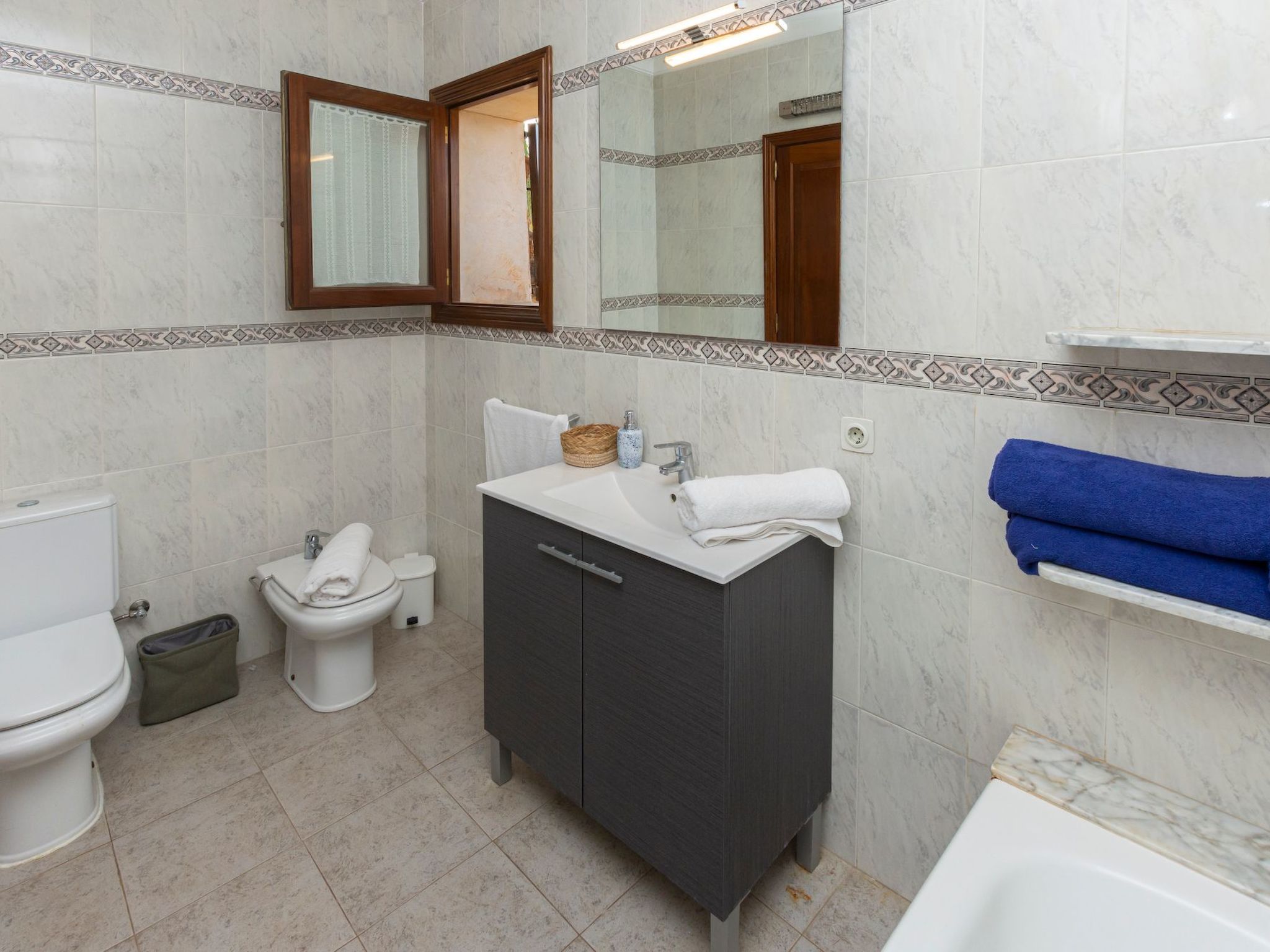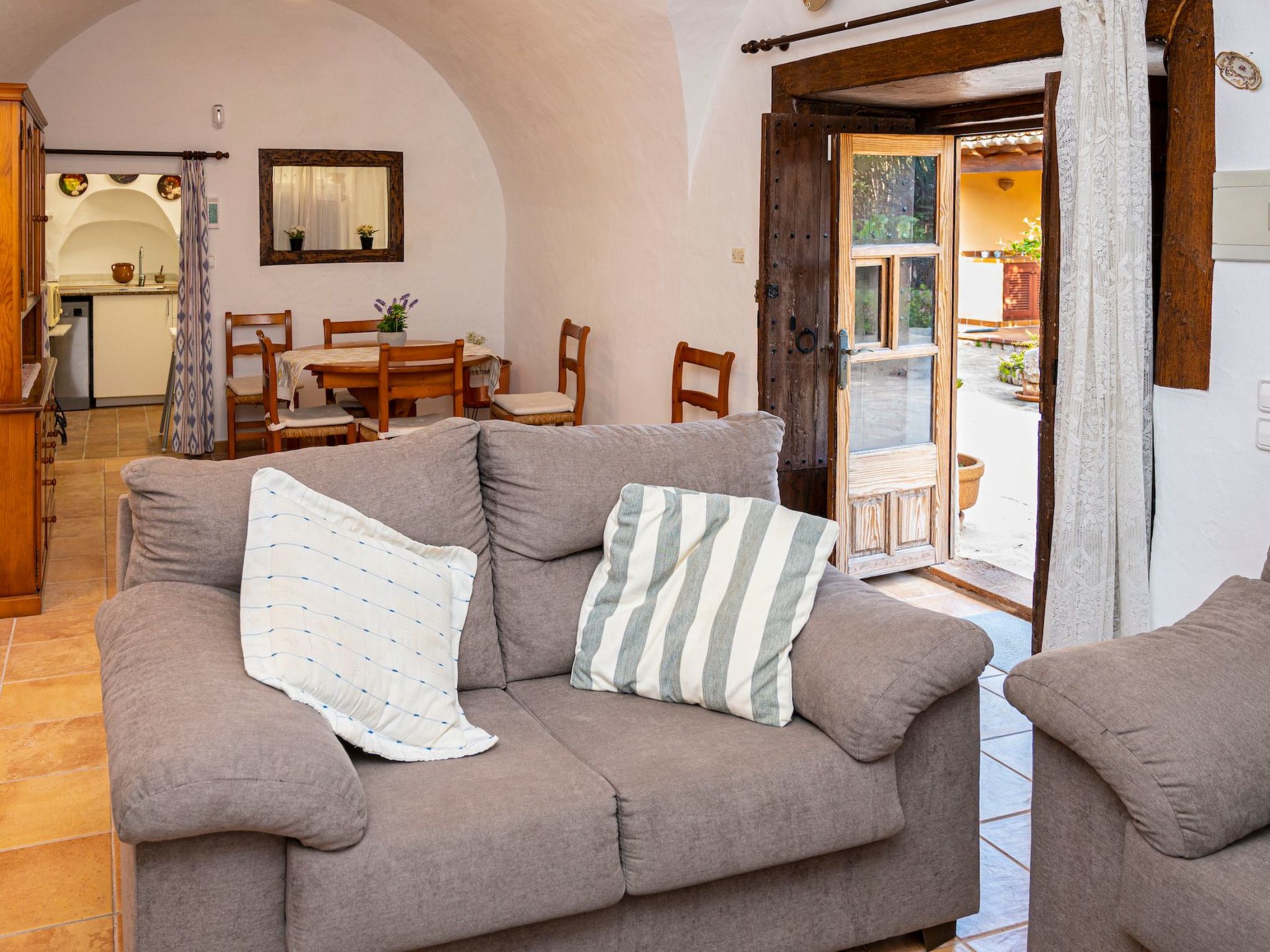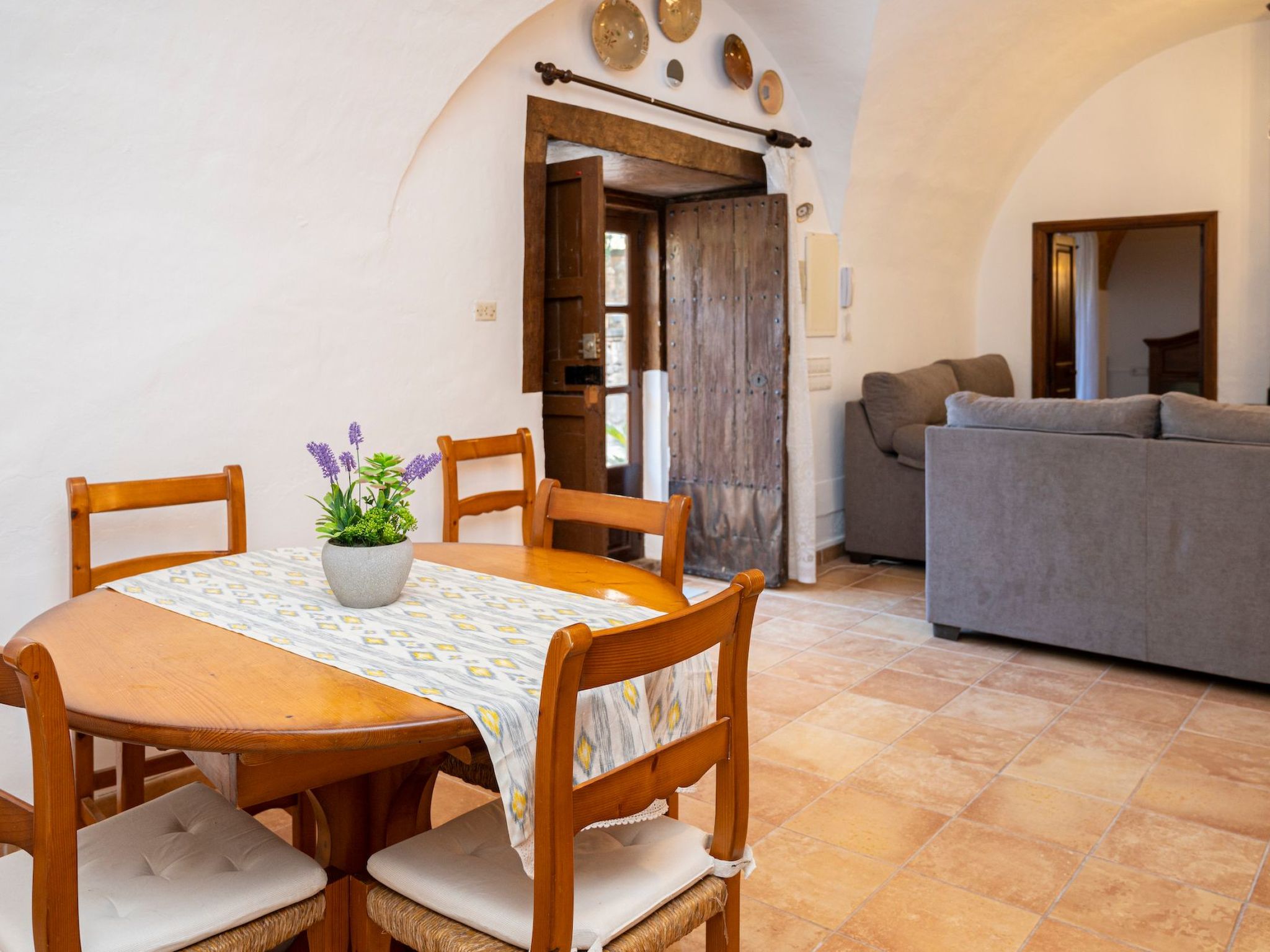 Im Inneren bietet "Moli de Ca n'Orell" geräumige und komfortable Zimmer, um einen angenehmen Aufenthalt zu gewährleisten. Es gibt drei schöne Doppelzimmer, die sich perfekt für Familien oder Gruppen von Freunden eignen. Die Küche ist komplett ausgestattet, um all Ihre kulinarischen Bedürfnisse zu befriedigen, ergänzt durch ein gemütliches Wohn-Esszimmer mit Kamin und Flachbild-Satellitenfernseher, ideal zum Entspannen nach einem Tag voller Entdeckungen. Und mit zwei kompletten Badezimmern, Bettwäsche und Handtüchern ist der Komfort voll gewährleistet.
