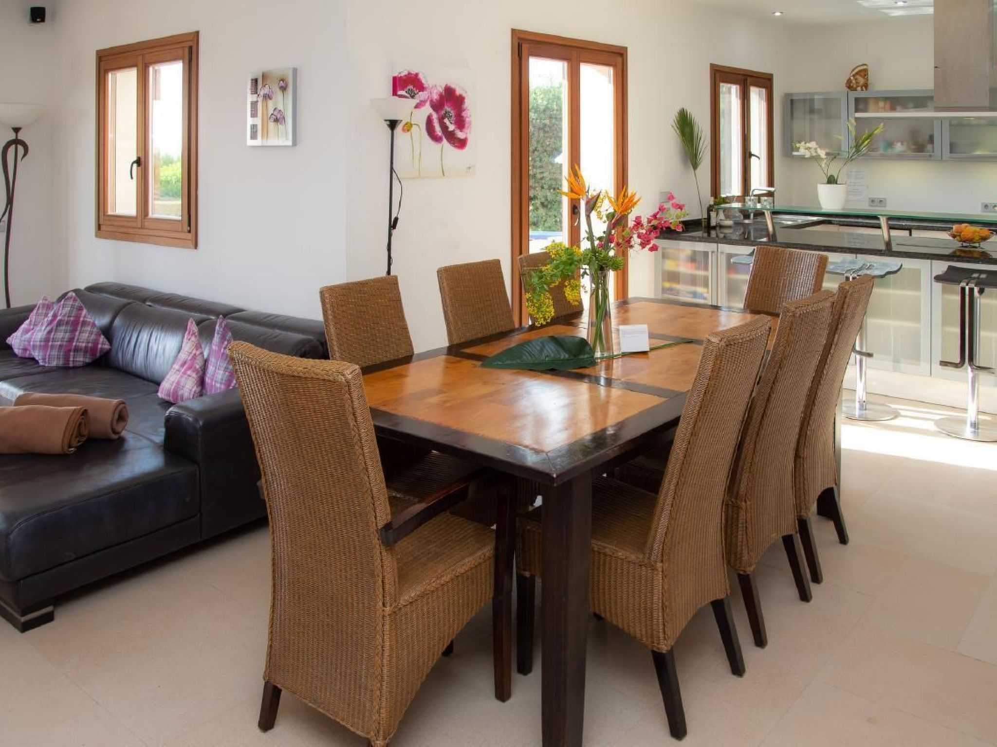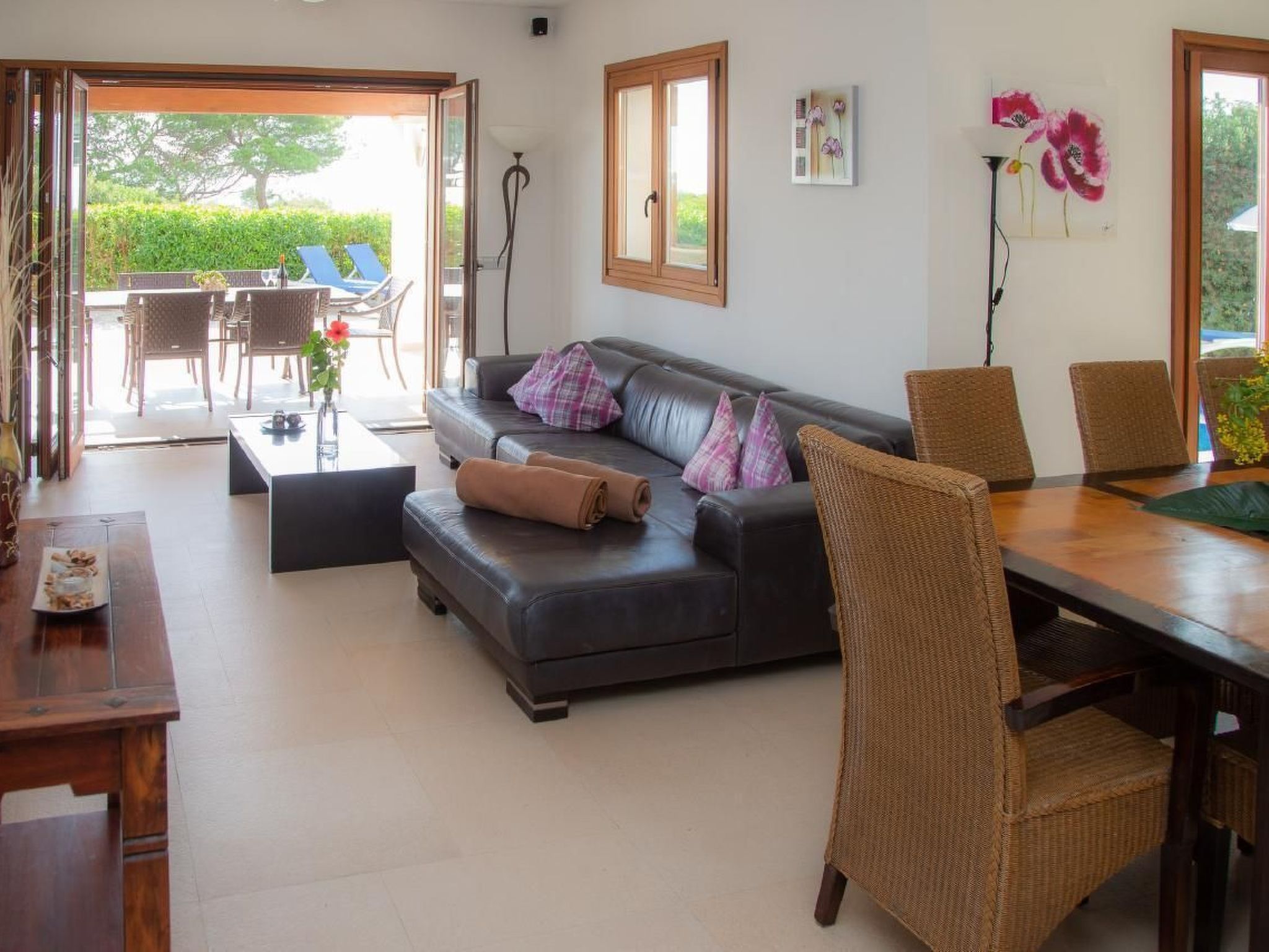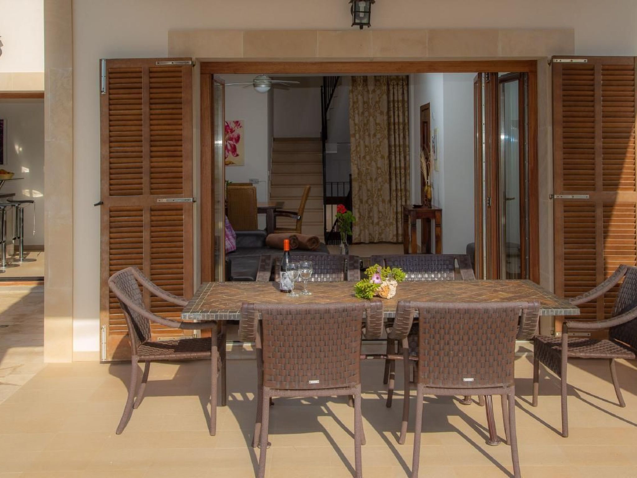 Im Inneren der Villa werden Sie mit einer modernen und geräumigen Anordnung begrüßt. Das Wohnzimmer, das Esszimmer und die Küche fließen in einem offenen, großzügigen Raum zusammen, der mit zeitgemäßer Technik - einschließlich schnellstem Glasfaser Internet - und hochwertiger Küchenausstattung mit Induktionsherd, zwei Kühlschränken mit Gefriereinheit und vielem mehr ausgestattet ist. Jedes der Schlafzimmer verfügt über ein angrenzendes eigenes Badezimmer mit Annehmlichkeiten, die von großer Dusche bis hin zur Badewanne reichen, was für persönlichen Komfort und Privatsphäre sorgt.