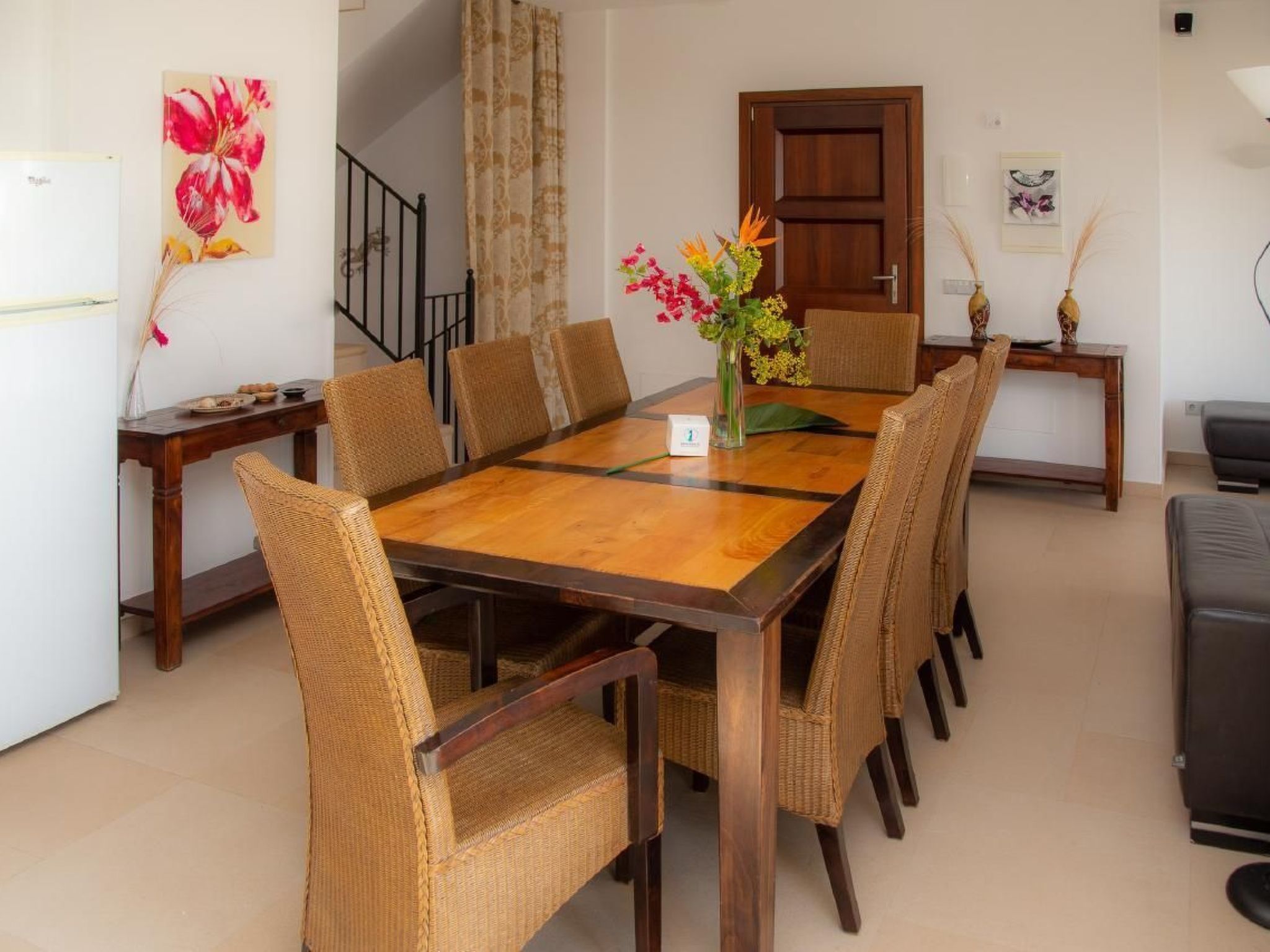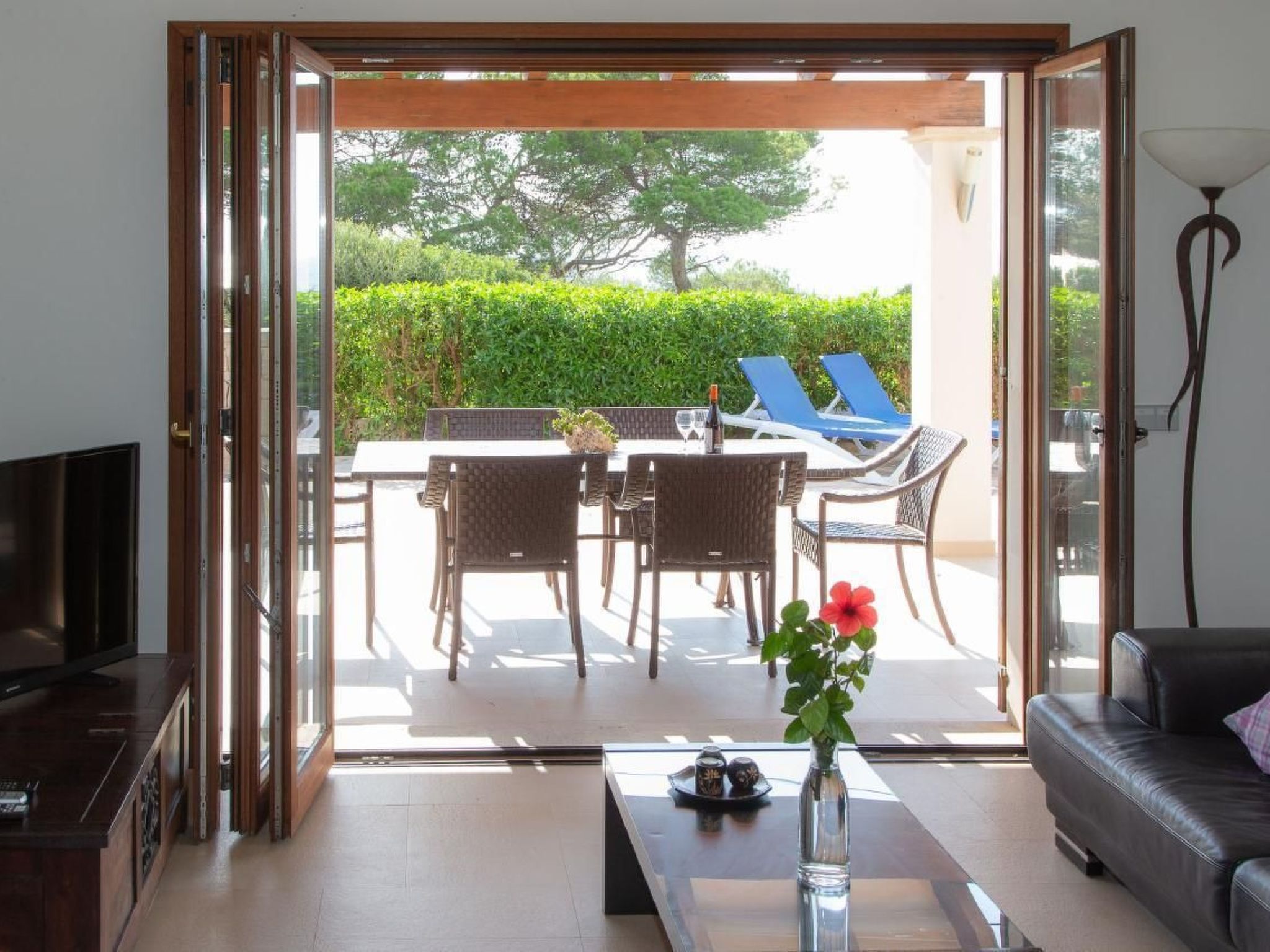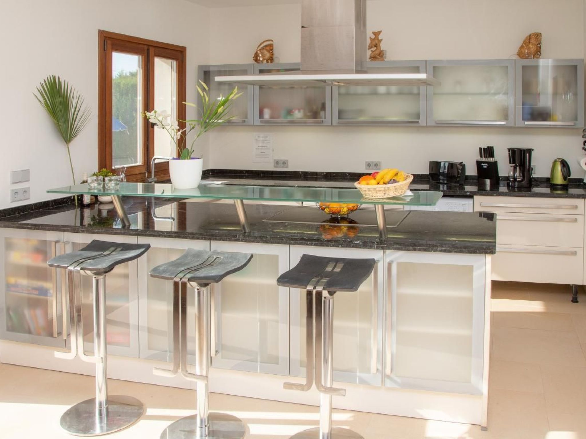 Im Inneren der Villa werden Sie mit einer modernen und geräumigen Anordnung begrüßt. Das Wohnzimmer, das Esszimmer und die Küche fließen in einem offenen, großzügigen Raum zusammen, der mit zeitgemäßer Technik - einschließlich schnellstem Glasfaser Internet - und hochwertiger Küchenausstattung mit Induktionsherd, zwei Kühlschränken mit Gefriereinheit und vielem mehr ausgestattet ist. Jedes der Schlafzimmer verfügt über ein angrenzendes eigenes Badezimmer mit Annehmlichkeiten, die von großer Dusche bis hin zur Badewanne reichen, was für persönlichen Komfort und Privatsphäre sorgt.