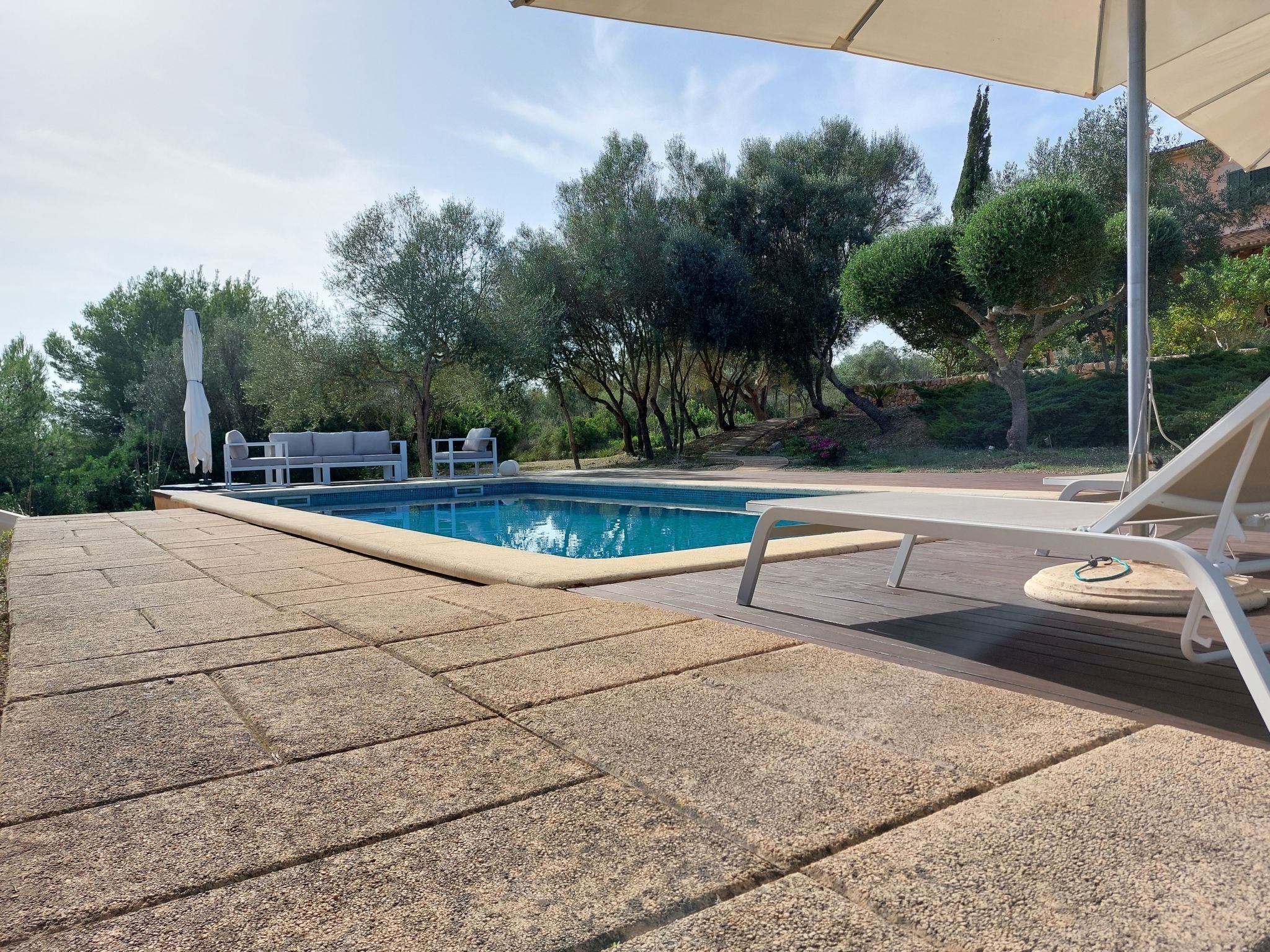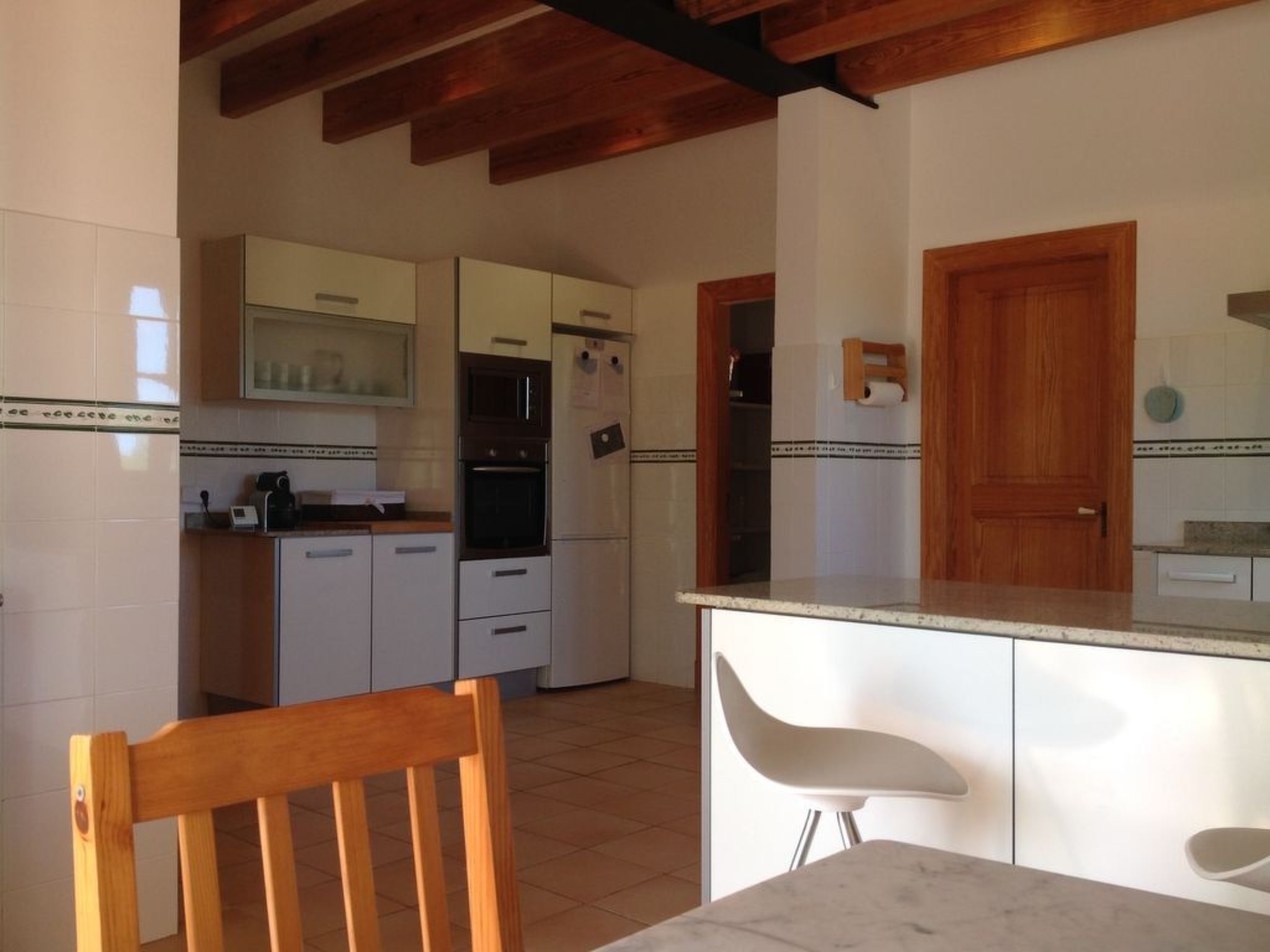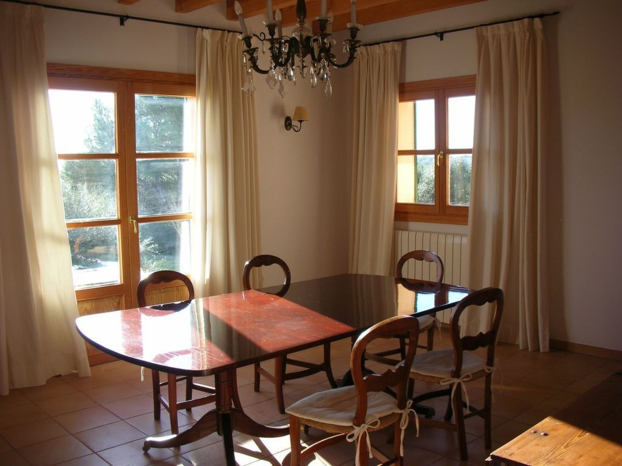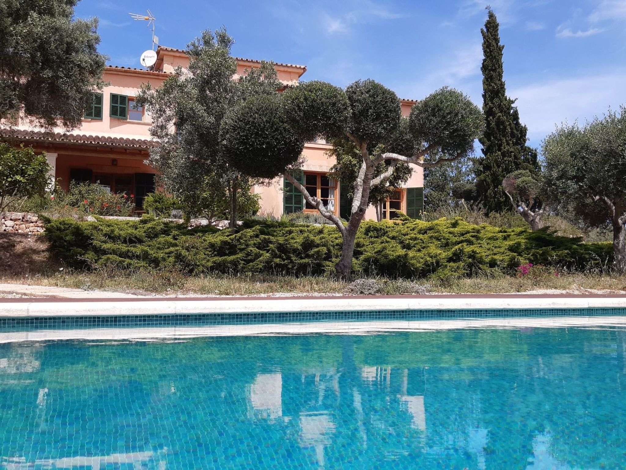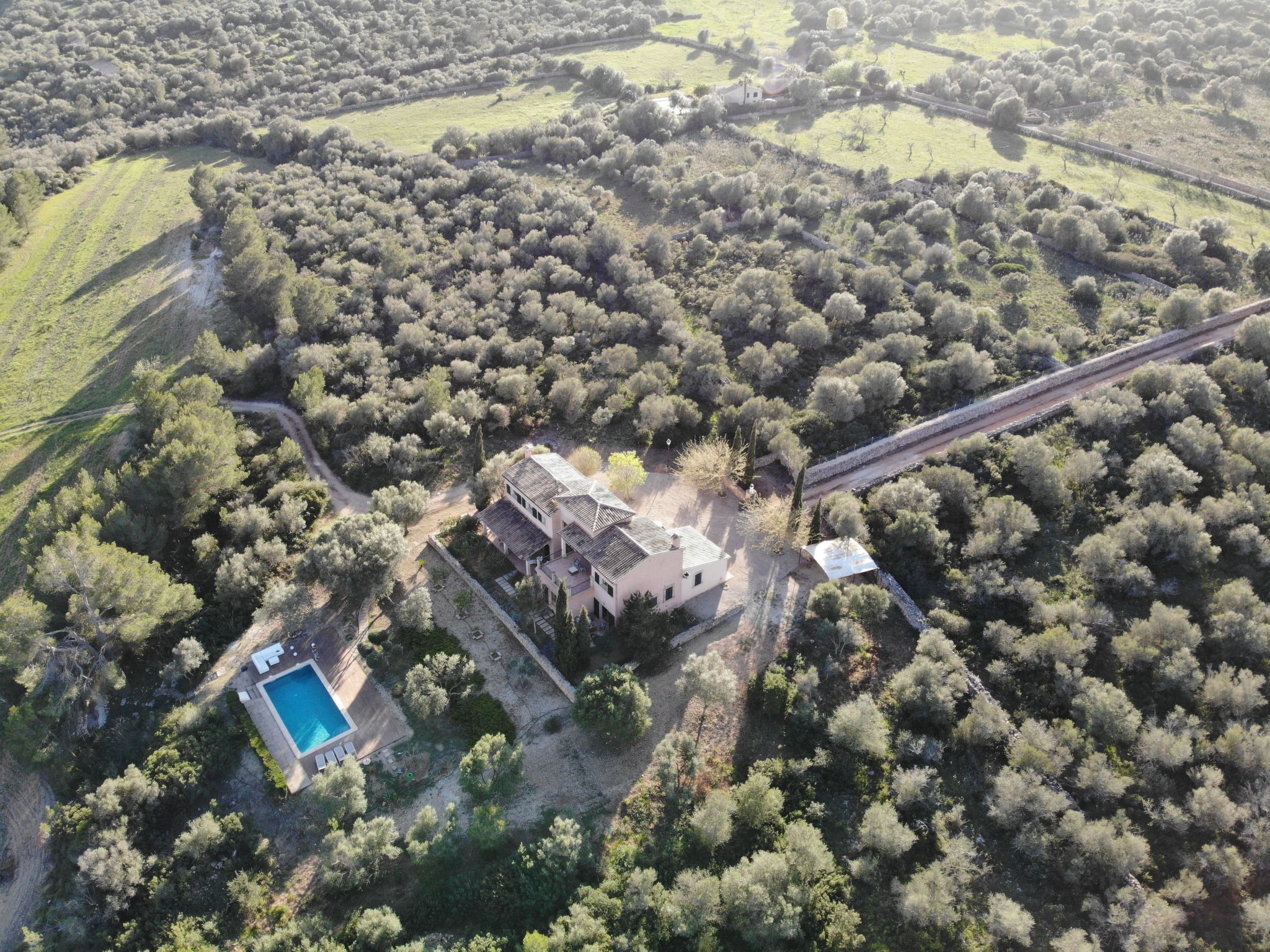 Die Verteilung ist: im Erdgeschoss ist die Halle, Esszimmer, Küche, WC, Wohnzimmer, Speisekammer und Waschküche; im Obergeschoss, alle Schlafzimmer haben ein eigenes Bad für alle und Schränke mit Bettwäsche und towells. Außerhalb hat 210.000 Quadratmetern und mehr Land mit privatem Zugang zu freien Feld zum Wandern, enogh verloren zu gehen. Die Finca hat auch zwei Garagen für 2 Autos, Schwimmbad (9,5*4,5 m), Solarium mit 2 (3/3 Meter) Sonnenschirmen und 7 Liegestühlen, Dusche, 2 Terrassen mit Stühlen, Veranda mit Tisch und Stühlen, Grill und Garten.