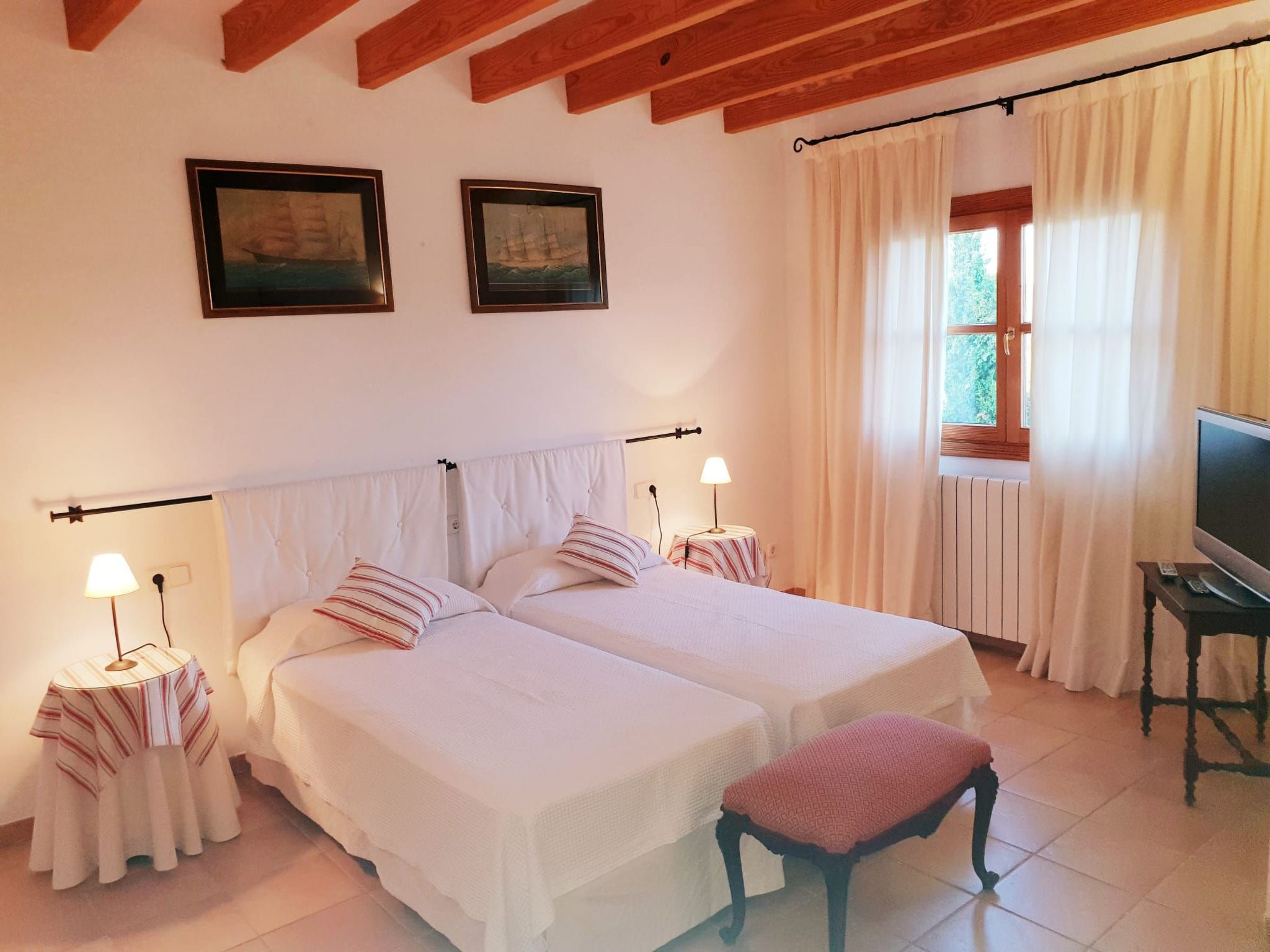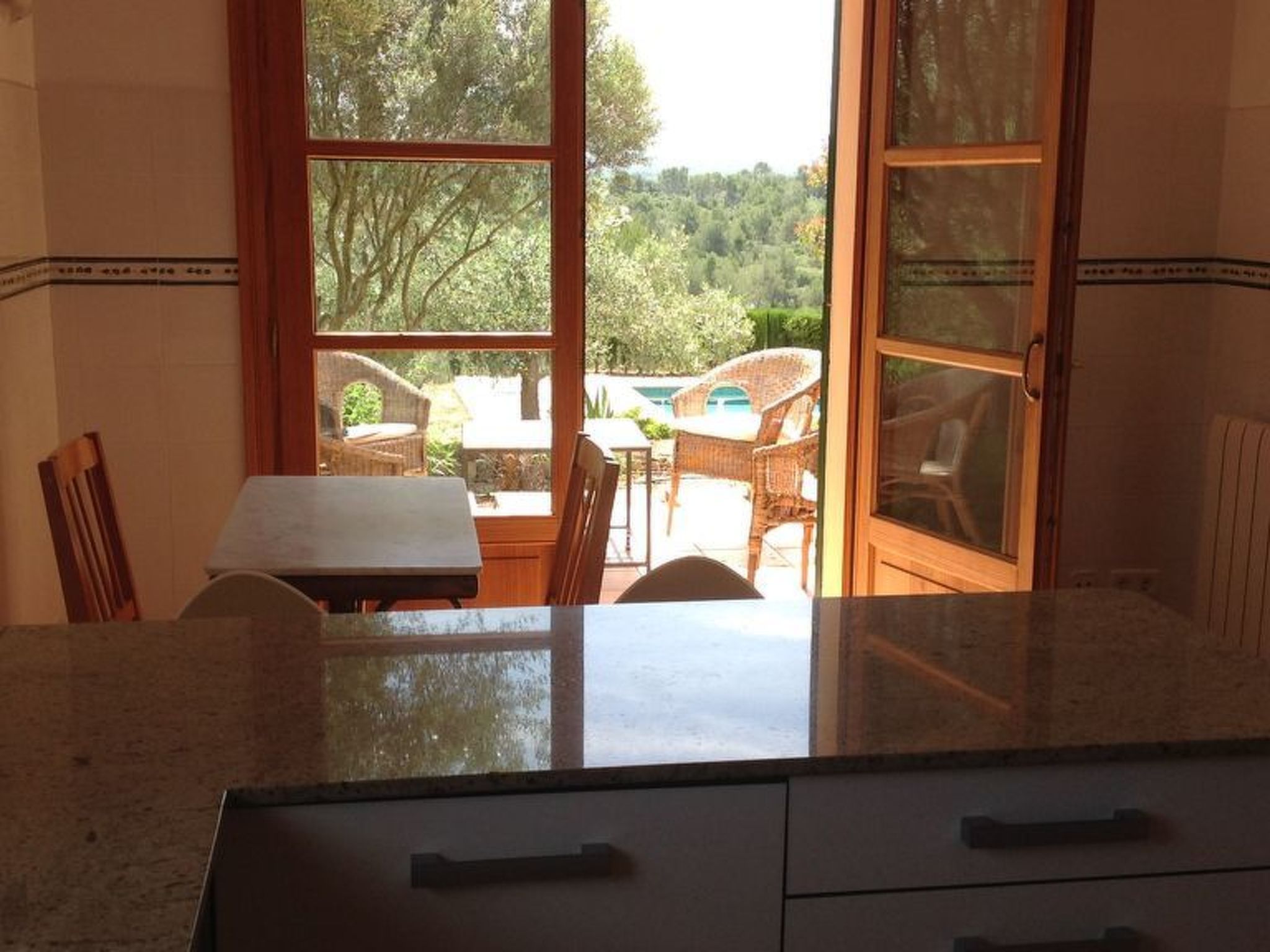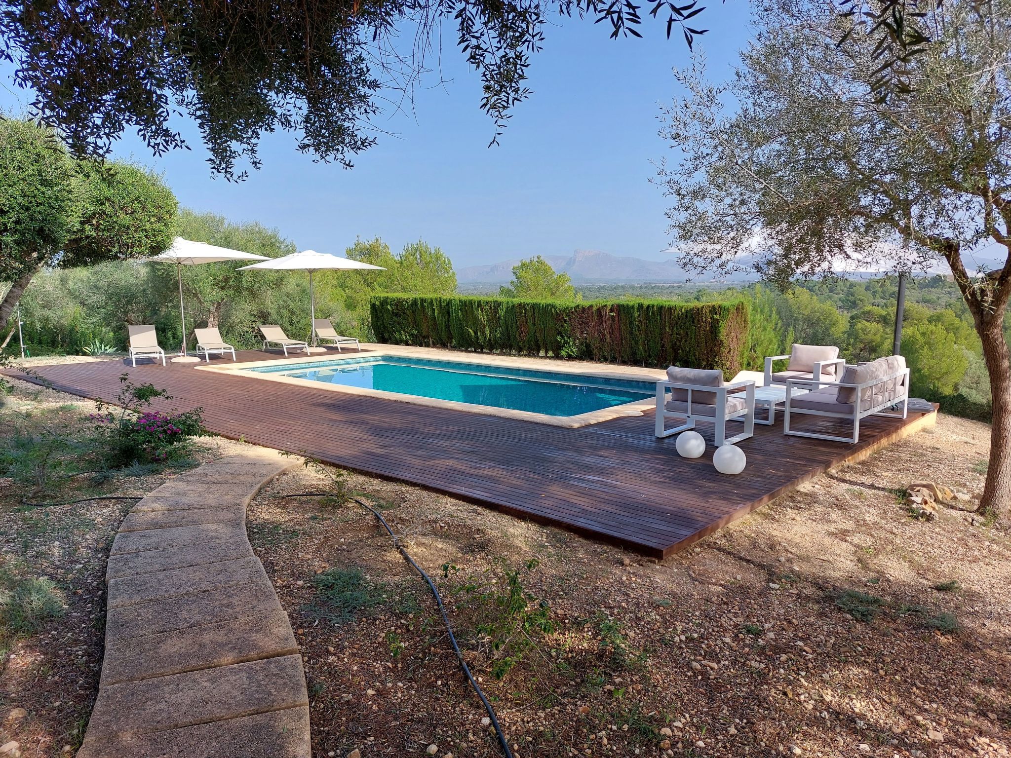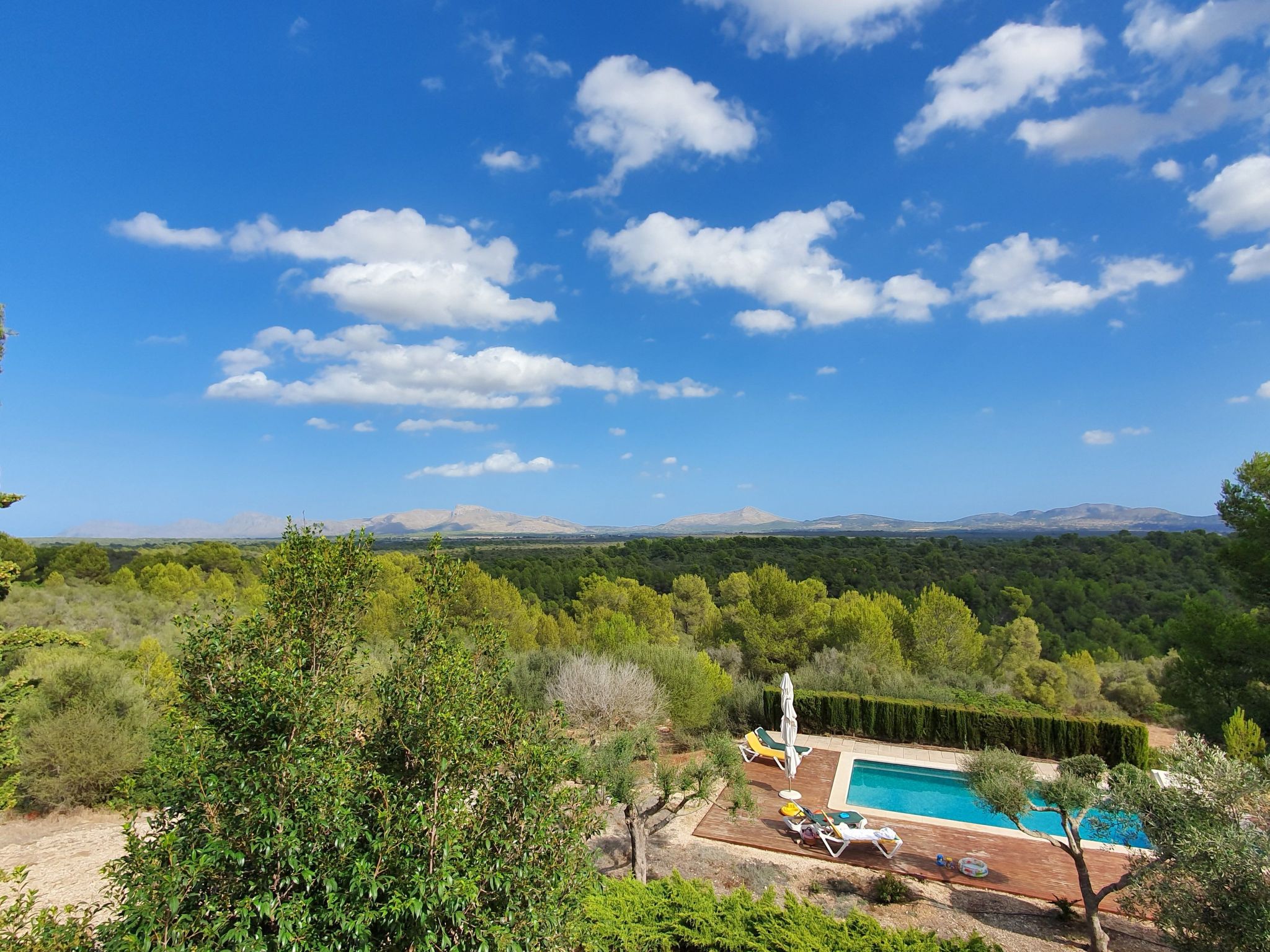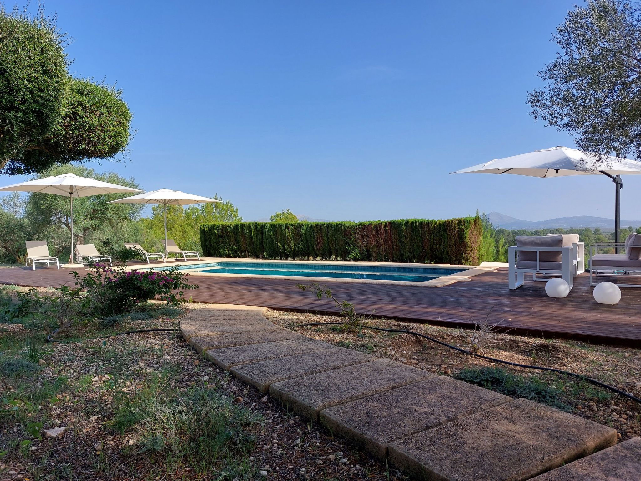 Die Verteilung ist: im Erdgeschoss ist die Halle, Esszimmer, Küche, WC, Wohnzimmer, Speisekammer und Waschküche; im Obergeschoss, alle Schlafzimmer haben ein eigenes Bad für alle und Schränke mit Bettwäsche und towells. Außerhalb hat 210.000 Quadratmetern und mehr Land mit privatem Zugang zu freien Feld zum Wandern, enogh verloren zu gehen. Die Finca hat auch zwei Garagen für 2 Autos, Schwimmbad (9,5*4,5 m), Solarium mit 2 (3/3 Meter) Sonnenschirmen und 7 Liegestühlen, Dusche, 2 Terrassen mit Stühlen, Veranda mit Tisch und Stühlen, Grill und Garten.