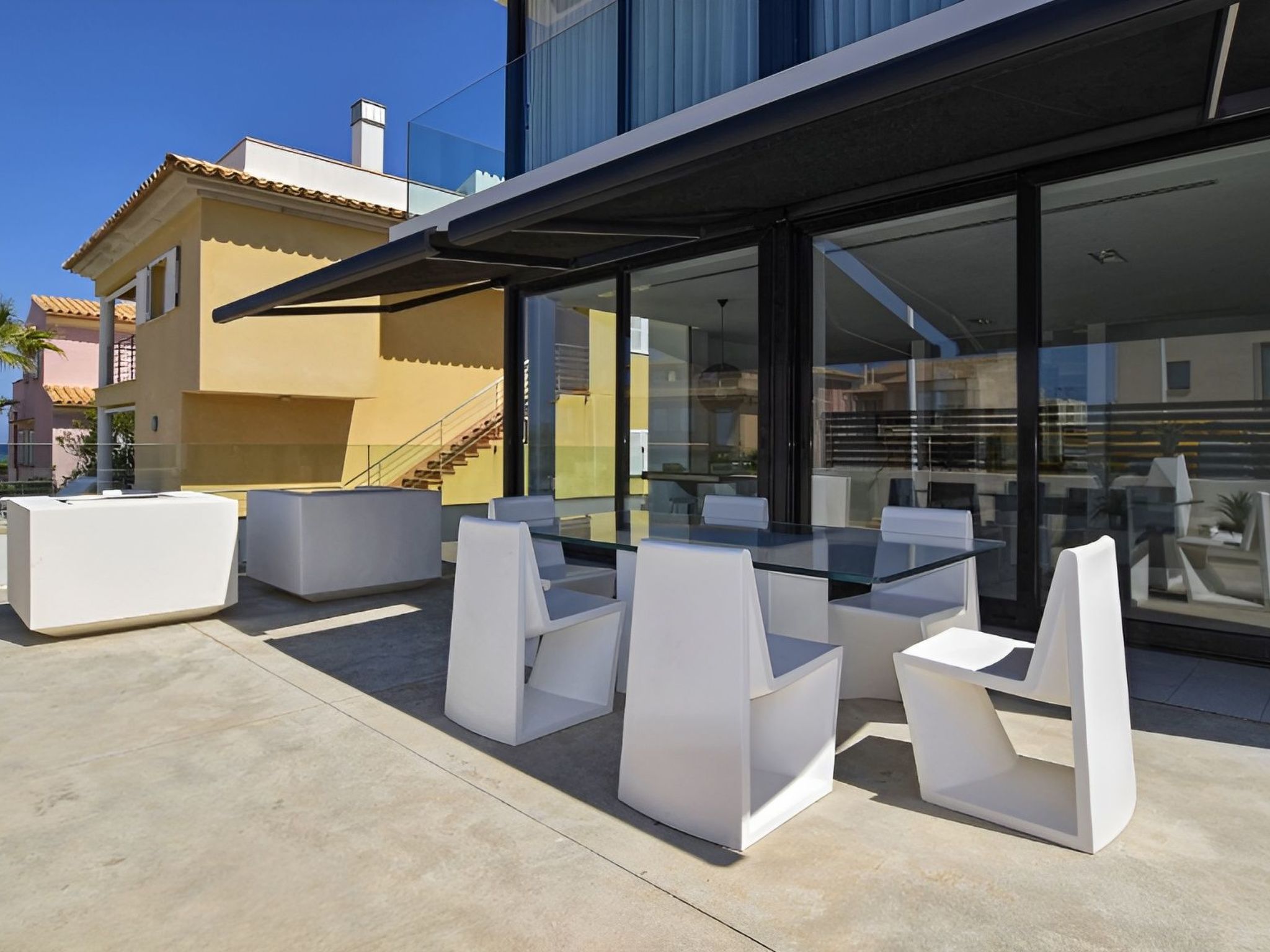 Die Villa liegt vor dem kleinen Yachthafen von “Son Serra de Marina” und der lange Sandstrand mit Restaurants und Beachclub ist von hieraus in etwa 800 Metern zu erreichen