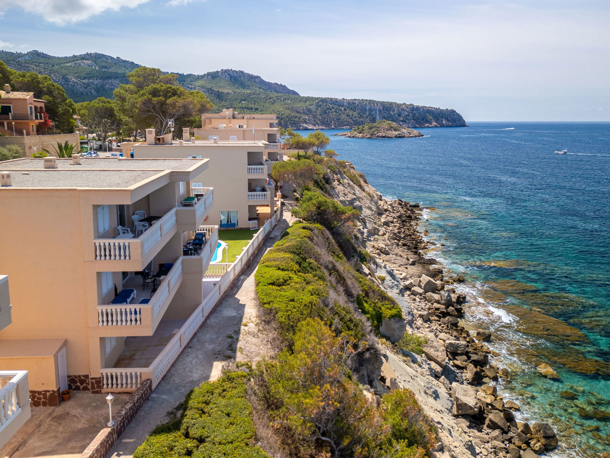 Ferienanlage "Apartamentos Amores (TEL200)", auf 3 Stockwerken. 5 Häuser im Ferienresort. 1 km vom Zentrum von San Telmo, am Ortsrand, 11 km vom Zentrum von Andratx, 37 km vom Zentrum von Palma, direkt am Meer. Zur Mitbenutzung: Schwimmbad (70 m2, 90 - 150 cm tief, saisonale Verfügbarkeit: 01.Jan. - 31.Dez.). Kinderbecken, Aussendusche. In der Anlage: Wireless LAN. Öffentliche Parkplätze auf der Strasse. Einkaufsgeschäft 1 km, Restaurant 450 m, Sandstrand "San Telmo" 1.1 km, Felsstrand 300 m. Wandergebiete: "Sa Trapa" 250 m. Bitte beachten: Fahrzeug empfohlen.