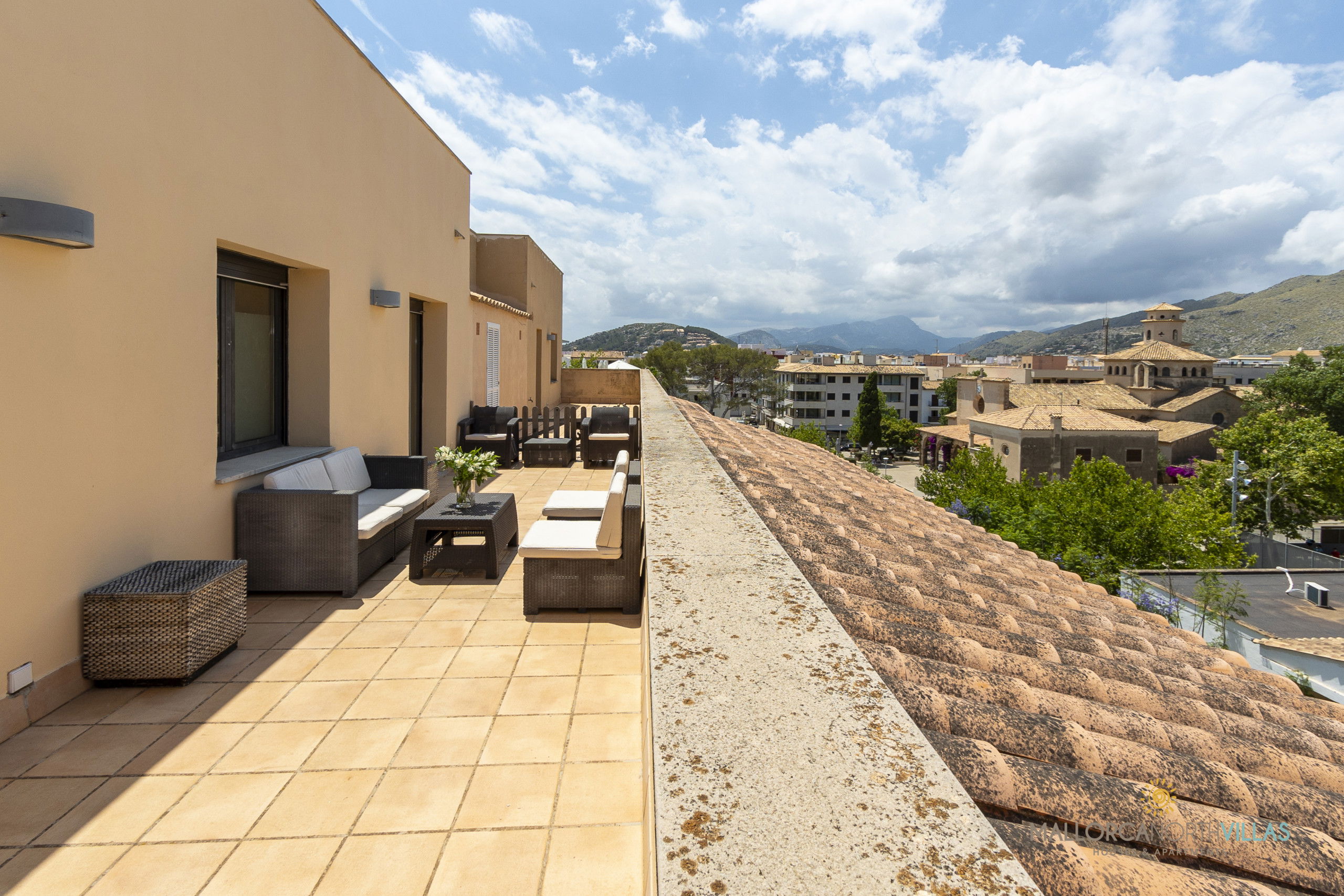 Willkommen an Ihrem nächsten Traumurlaubsziel! Dieses spektakuläre Penthouse im Herzen von Puerto de Pollensa bietet ein unvergleichliches Erlebnis mit Blick auf die majestätischen Berge und teilweisem Blick auf das Mittelmeer. Nur wenige Schritte vom charmanten Stadtplatz entfernt haben Sie einfachen Zugang zum Strand, zu Restaurants und Geschäften.